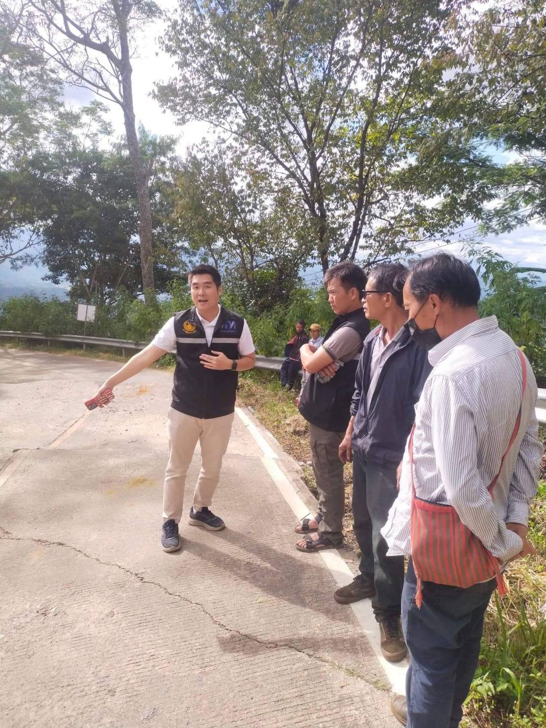 ต่อมาโดยการประสานงานของ นายวิกรม เตชะธีราวัฒน์ เลขานุการคณะกรรมการพัฒนาการเมือง พร้อมด้วย นายทวีศักดิ์ อภิเดชกุล ผู้ใหญ่บ้าน และนายศรชัย โฆษิตรัตนากร รองประธาน อบต.วาวี ได้ลงพื้นที่ตรวจสอบถนนดังกล่าว พบรอยร้าว และการดันผิวถนน ทำให้เกิดความต่างระดับของพื้นผิว เป็นปัญหาของการสัญจรอย่างหนัก โดยเฉพาะรถเก๋งซึ่งใต้ท้องรถต่ำ ทำให้เกิดความเสียหาย และได้ประสานงานแขวงทางหลวงชนบท เชียงราย เข้าไปกำเนินการซ่อมแซมอย่างเร่งด่วน เนื่องจากเข้าสู่ฤดูกาลท่องเที่ยว ซึ่งมีนักท่องเที่ยวมุ่งสู่ดอยช้างเป็นส่วนใหญ่ เป็นการสร้างความมั่นใจและปลอดภัยแก่นักท่องเที่ยว โดยเบื้องต้นทางหลวงชนบท เชียงราย ได้ทำการซ่อมแซมปรับผิวถนนให้อยู่ในระดับเรียบเสมอกันแล้ว ขณะเดียวกันได้รับแจ้งเพิ่มเติมจากทางหลวงชนบท เชียงราย ว่า จุดเกิดเหตุบริเวณดังกล่าวเกิดรอยร้าวบ่อยครั้ง เนื่องจากเป็นตำแหน่งรอยเลื่อนของแผ่นดิน ประกอบกับเกิดแผ่นดินไหวบ่อยครั้ง จึงเกิดรอยร้าวและการดันผิวถนนขึ้น โดยอนาคตได้มีการวางแผนที่จะปรับปรุงให้ดีขึ้น เพื่อป้องกันการเกิดเหตุซ้ำ