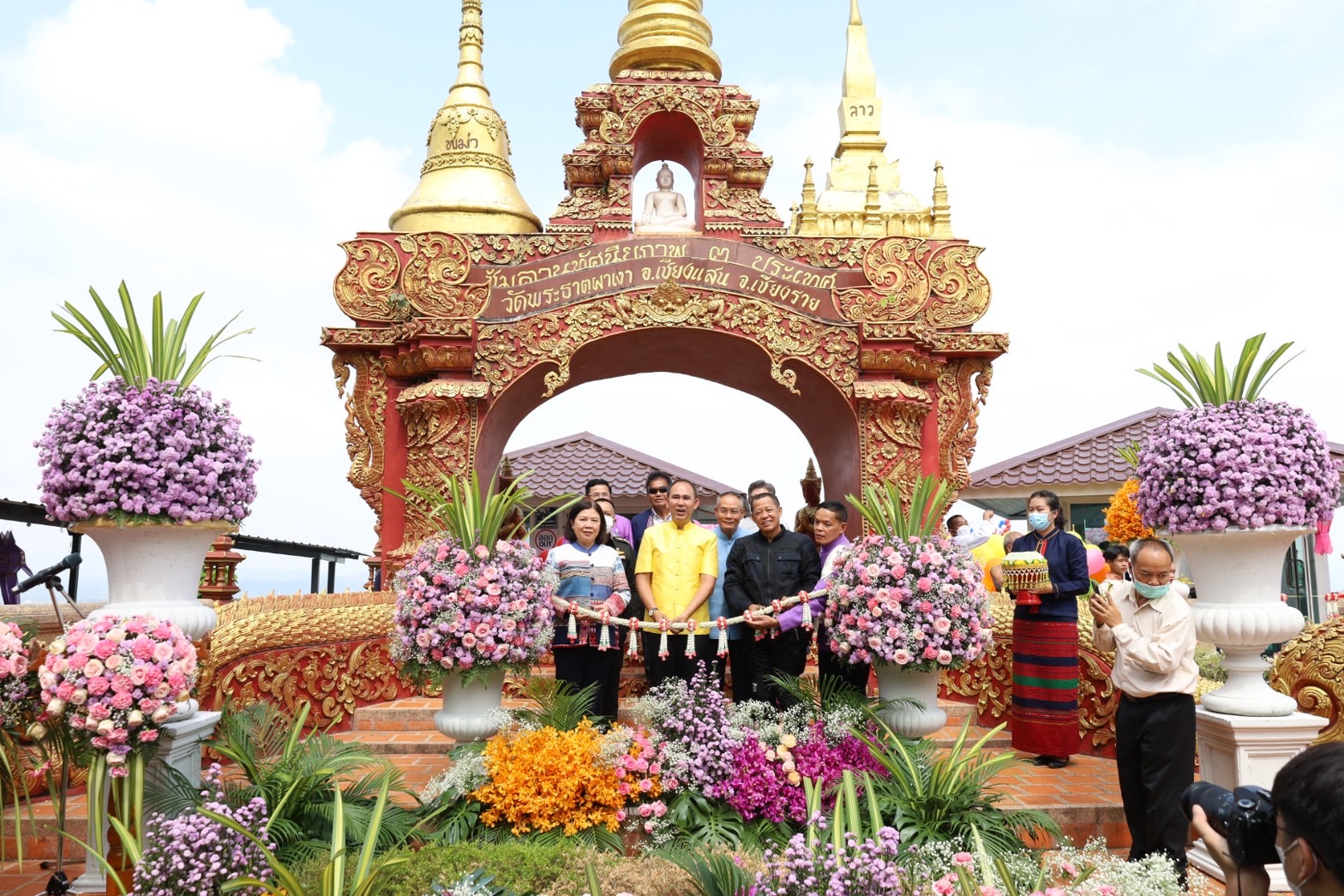 วันนี้ (27 ต.ค.) ที่วัดพระธาตุผาเงา ต.เวียง อ.เชียงแสน จ.เชียงราย พระเดชพระคุณพรหมโมลี กรรมการมหาเถรสมาคม เจ้าคณะภาค 5 รักษาการแทนเจ้าคณะใหญ่หนเหนือ วัดปากน้ำภาษีเจริญ กรุงเทพฯ ประธานสงฆ์ และนายเขมพล อุ้ยตยะกุล เลขานุการรัฐมนตรีว่าการกระทรวงการท่องเที่ยวและกีฬา เป็นประธานฝ่ายฆราวาสในพิธีเปิดสกายวอล์คผาเงา สามแผ่นดิน โดยมีนางสุภาพรรณ หมั่นเจริญ รองผู้ว่าราชการจังหวัดเชียงราย และท่านศาสตร์เมธี ดร.เฉลิมชัย โฆษิตพิพัฒน์ ศิลปินแห่งชาติ พร้อมด้วยหัวหน้าส่วนราชการ พ่อค้า ประชาชนเข้าร่วมอย่างคับคั่ง