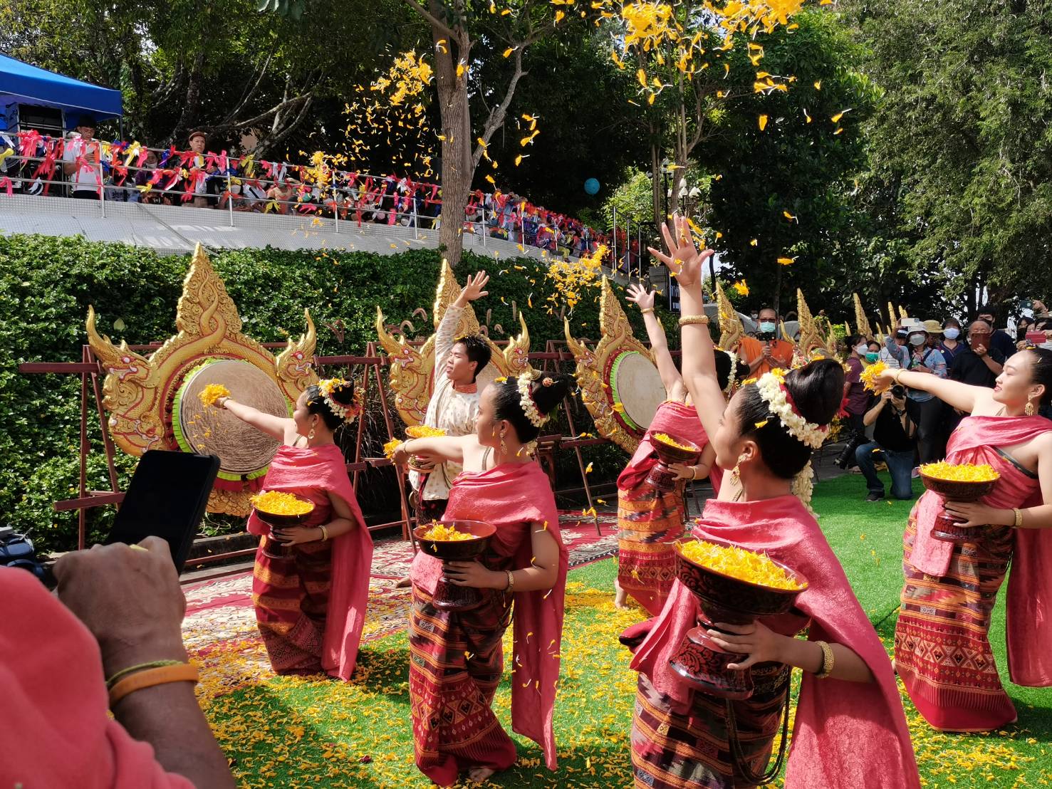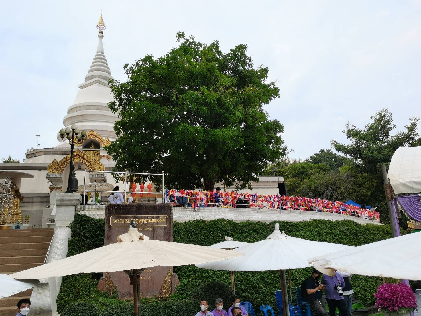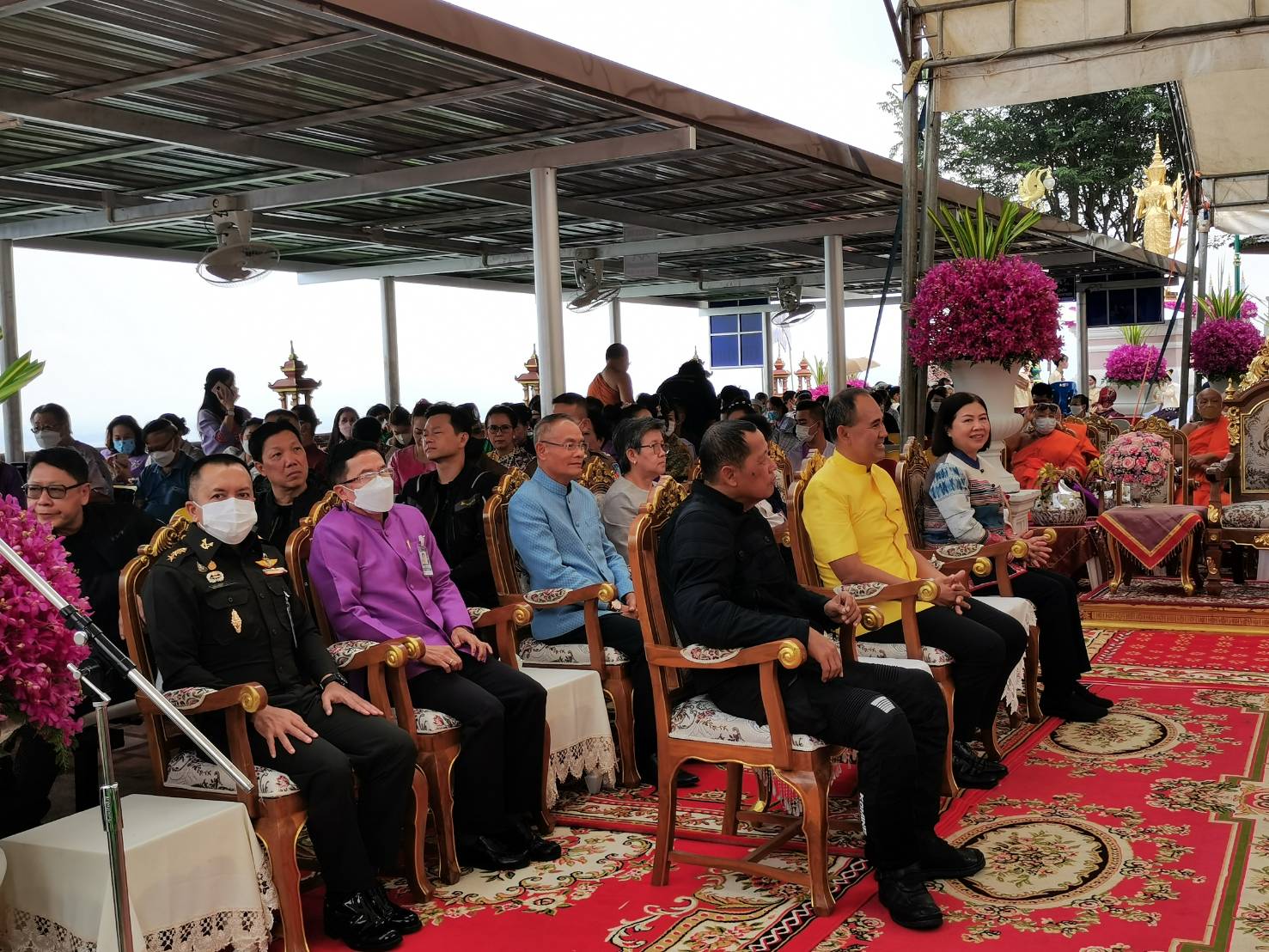 ตลอดจน ดร.เฉลิมชัย โฆษิตพิพัฒน์ ศิลปินแห่งชาติ นายวิสูตร บัวชุม ผู้อำนวยการการท่องเที่ยวแห่งประเทศไทยสำนักงานเชียงราย พร้อมด้วยหัวหน้า ส่วนราชการ พ่อค้าประชาชนเข้าร่วมงานอย่างคับคั่ง สำหรับสกายวอล์คผาเงาสามแผ่นดิน วัดพระธาตุผาเงาบ้านสบคำ หมู่ที่ 5 ตำบลเวียง อำเภอเชียงแสน จังหวัดเชียงรายได้ร่วมกันดำเนินการก่อสร้างทางเดินพื้นกระจกใสหรือสกายวอล์คบนดอยคำหรือดอยจันใกล้กับพระบรมธาตุพุทธนิมิตรเจดีย์และพระสยามภูมิพิทักษ์เดชเทวาธิราชตั้งแต่ต้นปี 2564