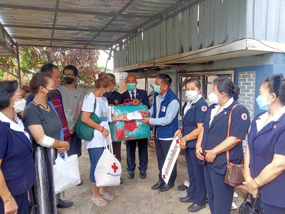 เพื่อเป็นการช่วยเหลือบรรเทาความเดือดร้อนเบื้องต้น และเป็นขวัญกำลังใจแก่ครอบครัวผู้ประสบอัคคีภัย เหล่ากาชาดจังหวัดเชียงราย ได้มอบเครื่องอุปโภค-บริโภค ผ้าห่ม และเงินสด จำนวน 10,000 บาท