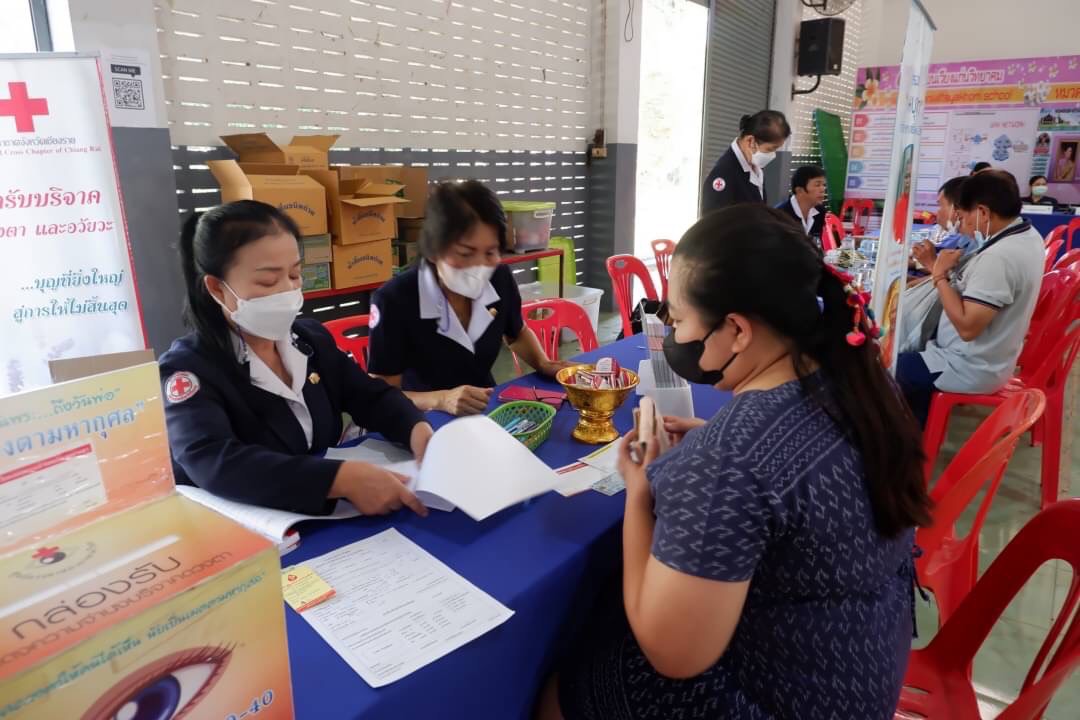 วันที่ 28 ตุลาคม 2565 เวลา 09.00 -12.00 น. นางบุษบา บุญญลักษม์ นายกเหล่ากาชาดจังหวัดเชียงราย มอบหมายให้ คณะกรรมการ-สมาชิกเหล่ากาชาด กลุ่มที่ 7 ร่วมกับ สำนักงานสาธารณสุขจังหวัดเชียงราย ธนาคารเลือด โรงพยาบาลเชียงรายประชานุเคราะห์ ปกครองอำเภอเวียงแก่น กิ่งกาชาดอำเภอเวียงแก่น ออกหน่วยรับบริจาคโลหิต ดวงตา และอวัยวะเคลื่อนที่ ณ หอประชุมโรงเรียนเวียงแก่นวิทยาคม