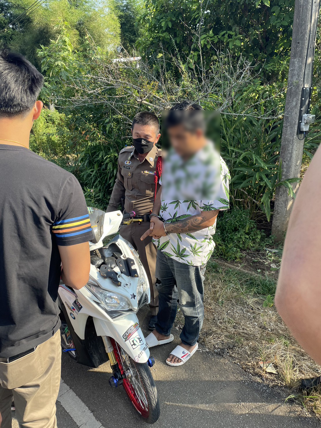 จนกระทั่งพบชายไม่ทราบชื่อขี่รถจักยานยนต์ลักษณะคล้ายกับที่สายลับได้แจ้งไว้ท่าทางมีพิรุจธเจ้าหน้าที่ชุดจับกุมจึงได้ทำการเรียกให้ชายคนดังกล่าวหยุดรถ แต่ชายคนดังกล่าวได้พยายามขับรถหลบหนี เจ้าหน้าที่ชุดจับกุมจึงทำการสกัดไว้ได้