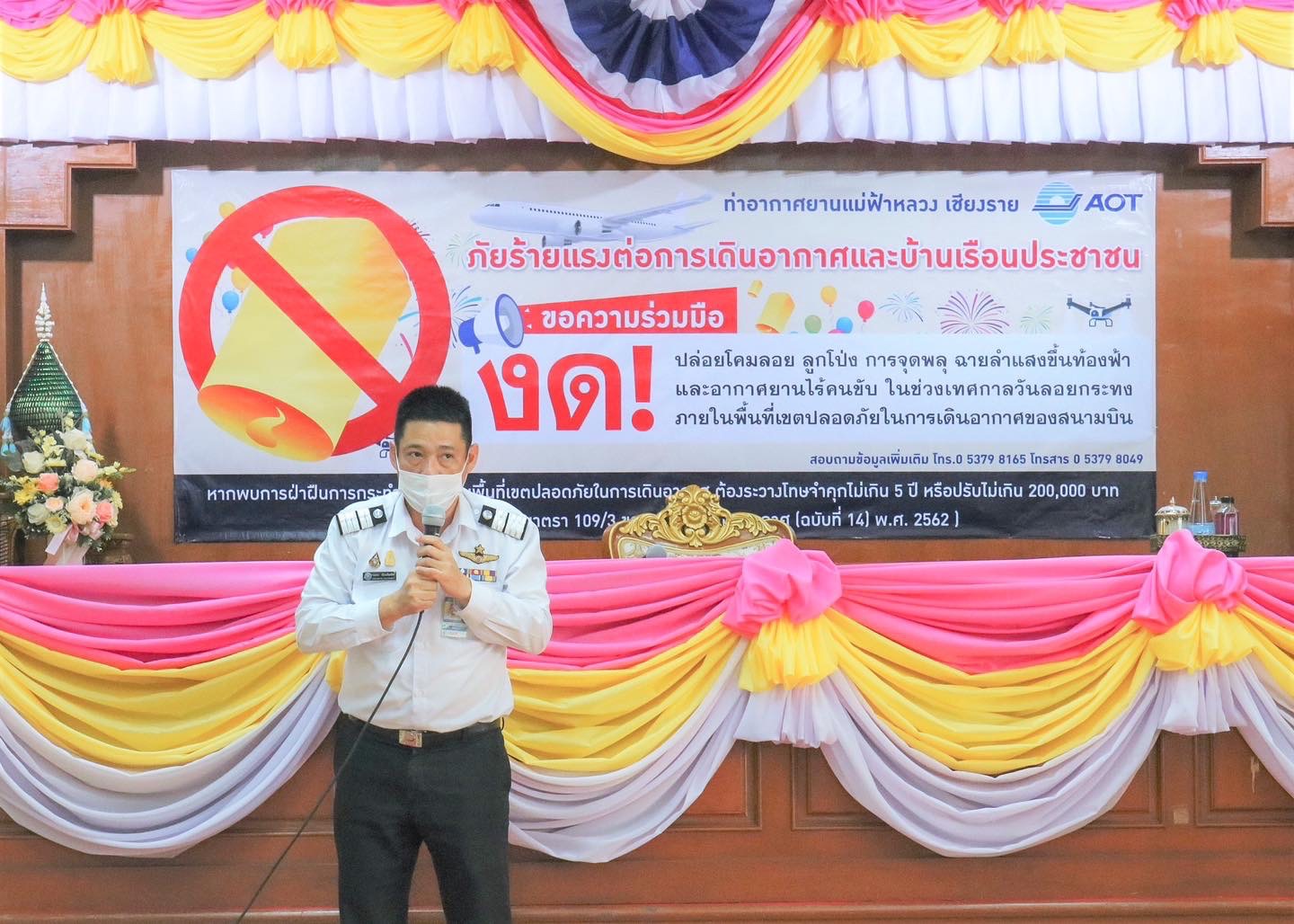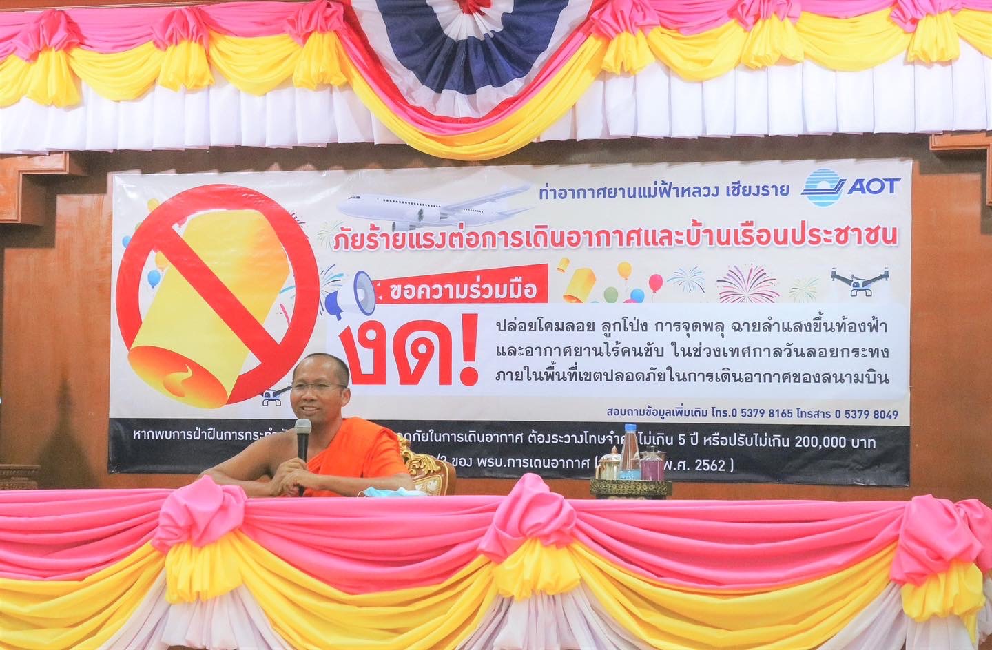 เมื่อวันที่ 2 พ.ย.2565 ที่ท่าอากาศยานแม่ฟ้าหลวง เชียงราย ต.บ้านดู่ อ.เมือง จ.เชียงราย นาวาอากาศตรี ดร.สมชนก เทียมเทียบรัตน์ ผู้อำนวยการท่าอากาศยานแม่ฟ้าหลวง เชียงราย พร้อมผู้บริหารฯ ได้ขอความร่วมมือ “งดการปล่อยโคมลอย” เขตรอบสนามบิน ในช่วงเทศกาลลอยกระทง ปี 2565 โดยเฉพาะช่วงระหว่างวันที่ 7-9 พฤศจิกายน 2565