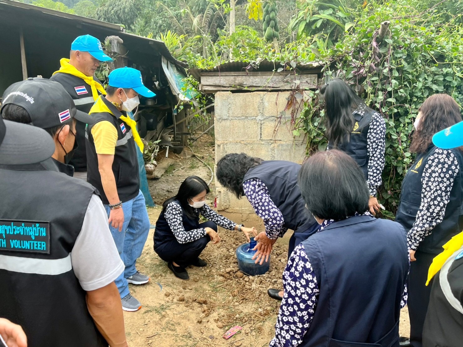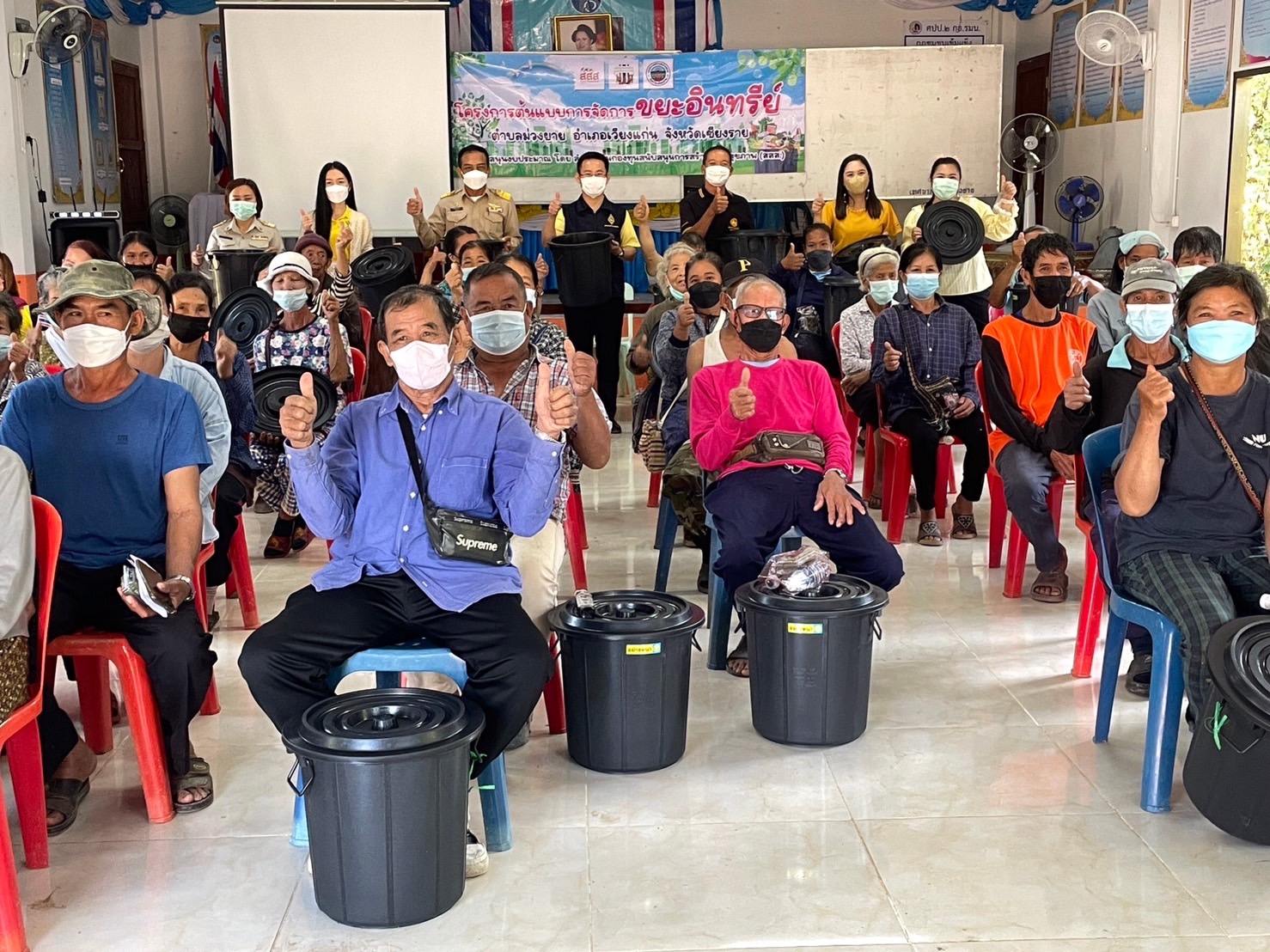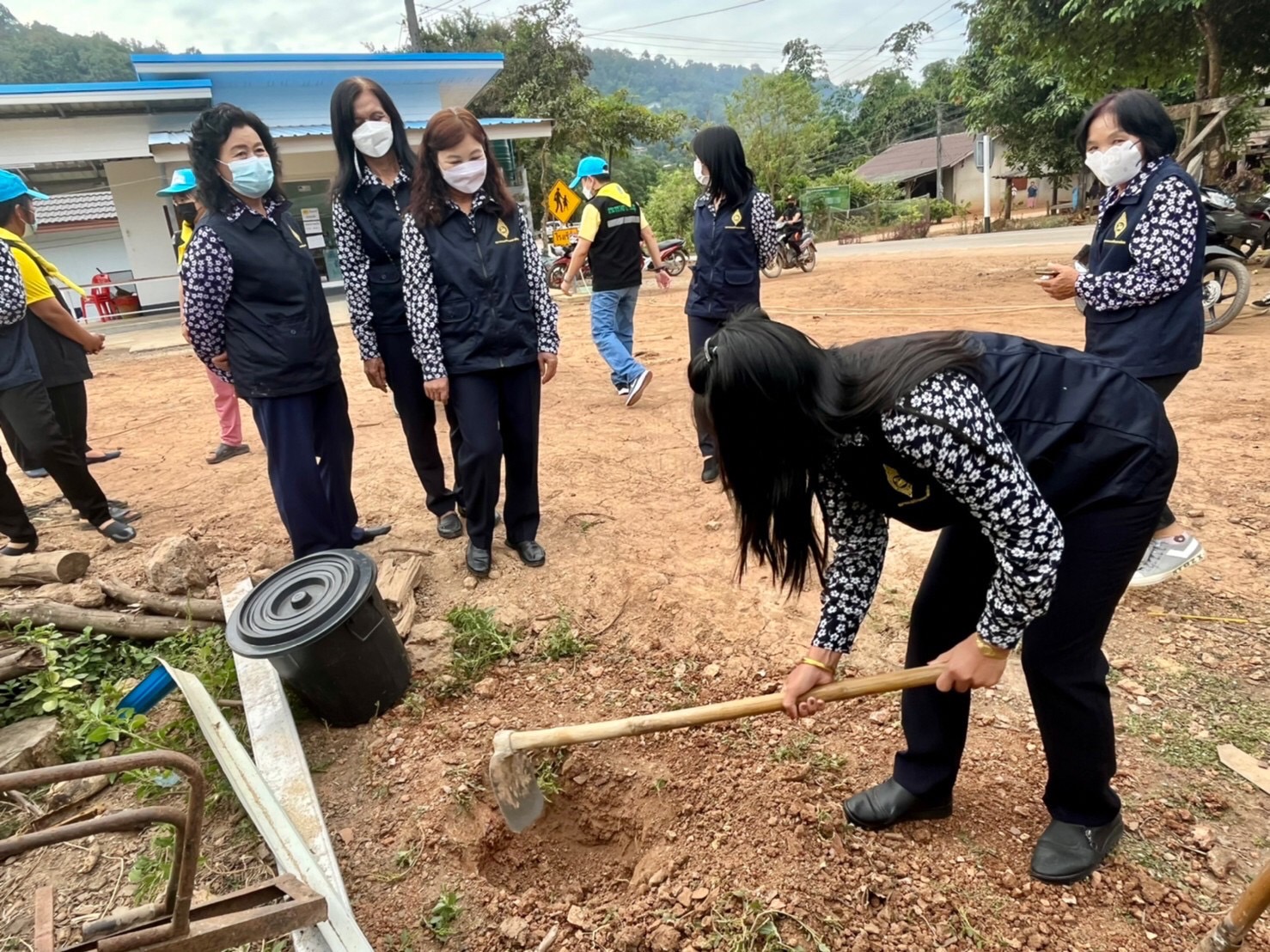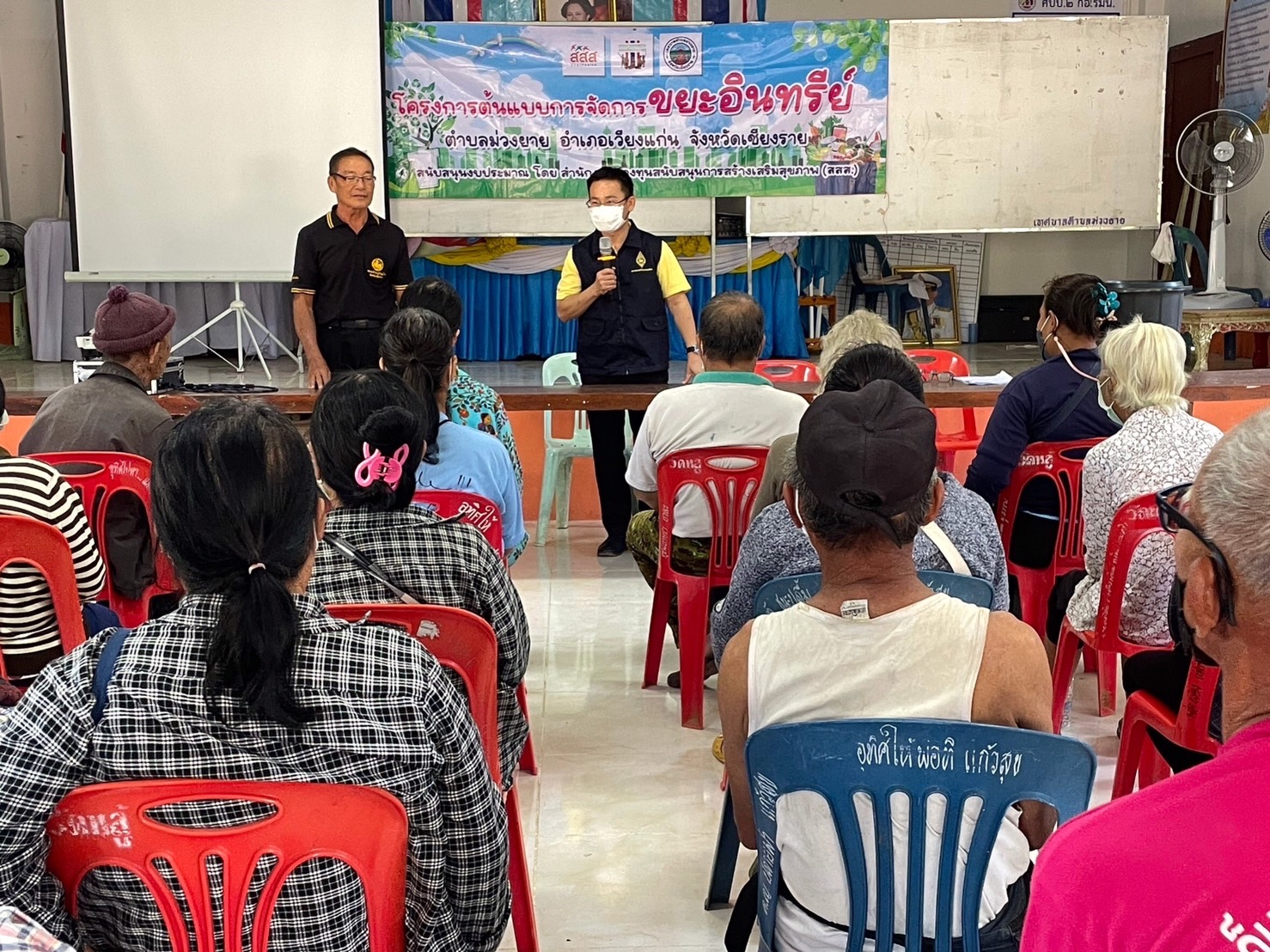 โดยดำเนินการอบรมสาธิตการจัดการขยะอินทรีย์ ประเภทเศษอาหารที่เหลือจากการรับประทาน ให้กำจัดทิ้งใน “ถังขยะเปียก” ซึ่งสามารถลดปริมาณขยะอินทรีย์ได้อย่างดี ทั้งช่วยลดการปล่อยก๊าซเรือนกระจก อันเป็นสาเหตุเกิดภาวะโลกร้อนและสามารถเข้าร่วมโครงการ carbon credit ช่วยเงินเข้ารัฐครัวเรือนละ 2-3 บาท/ปี ซึ่งเป็นภารกิจหนึ่งของแม่บ้านมหาดไทย ด้านสิ่งแวดล้อม การจัดการขยะ : ถังขยะเปียกและวันนี้ ได้มอบถังขยะเปียกลดโลกร้อน ให้กับประชาชนในพื้นที่จำนวน 60 ครัวเรือนและจะขยายผลให้ได้ 100% ในโอกาสต่อไป นอกจากนี้ แม่บ้านมหาดไทยอำเภอเวียงแก่น ยังได้ร่วมกับ รพ. สต. ผาแล ,อสม., ผู้ใหญ่บ้าน ช่วยกันทำถังขยะเปียก ณ บ้านทรายทอง ม.7 ต.ปอ อีกด้วย