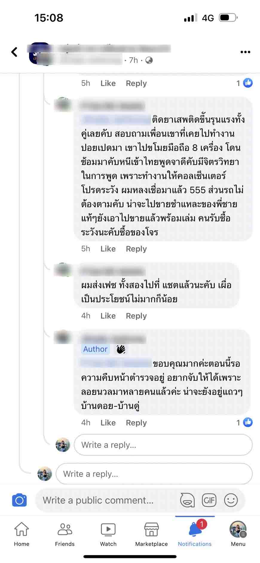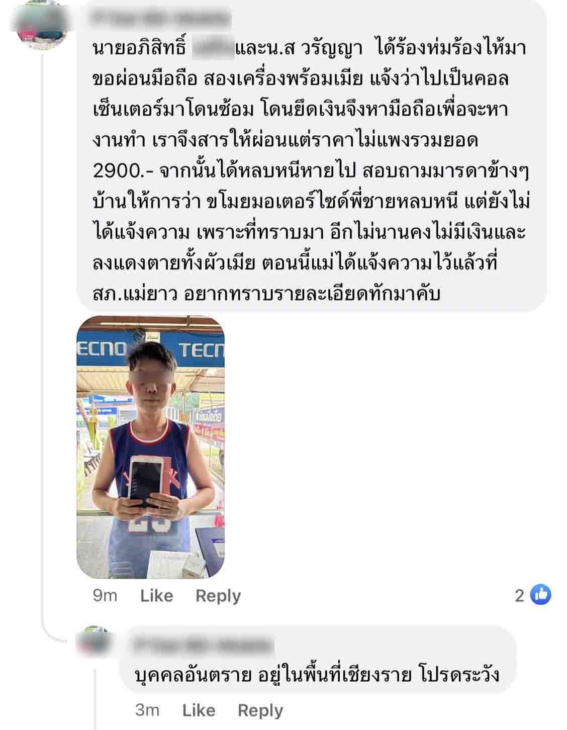 ล่าสุดเจ้าของบ้านนำเรื่องที่พบเจอไปโพสต์ในโซเชียล ก็พบว่ามีคนรู้จักคนร้ายทั้ง 2 คน ได้เข้ามาแสดงความคิดเห็นและให้ข้อมูลเพิ่มเติมว่า ทั้งคู่มีพฤติกรรมเป็นภัยต่อสังคม เคยขโมยทั้ง จ.ย.ย. และมือถือของบริษัทแห่งหนึ่งไป 8 เครื่อง แถมยังวนเวียนก่อเหตุอยู่ในพื้นที่ จ.เชียงราย และทั้ง 2 คน มีประวัติการติดยาเสพติดอีกด้วย