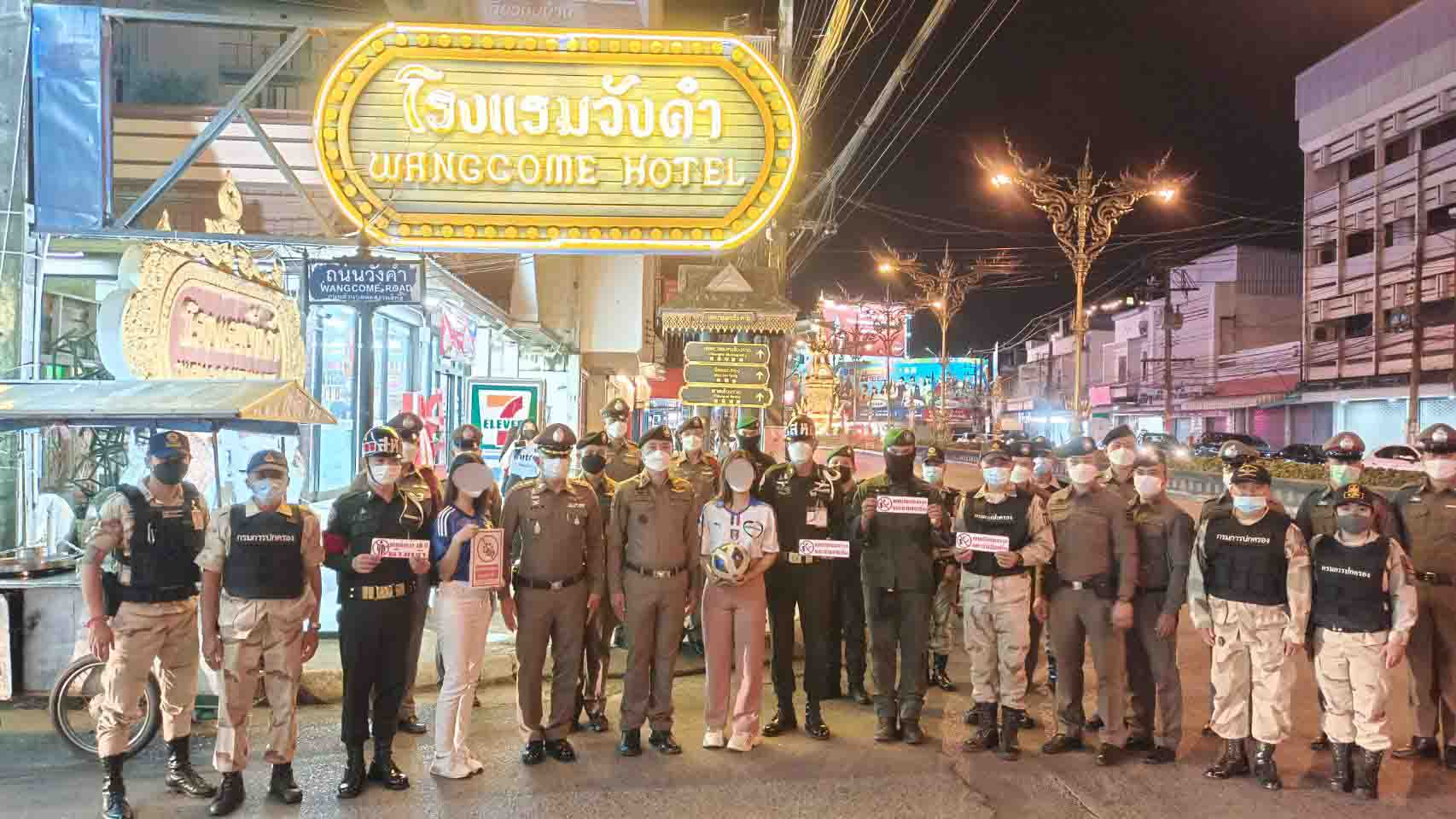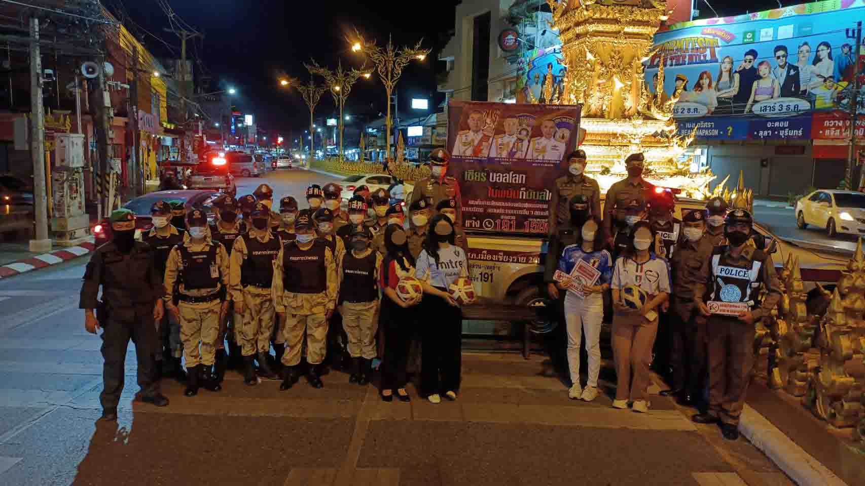 ภายหลังจากที่ในช่วงที่มีการแข่งขันฟุตบอลโลกระยะนี้ พบความเคลื่อนไหวของการเล่นพนันฟุตบอลในพื้นที่ และมีเหตุที่เกี่ยวเนื่อง โดยเฉพาะเหตุจี้ชิงวิ่งราวทรัพย์ และการขโมยลักทรัพย์ของประชาชน เนื่องด้วยเป็นหนี้พนันฟุตบอลเกิดขึ้นในหลายพื้นที่ และล่าสุดตำรวจ สภ.เมือง ก็ได้มีการจับกุมผู้ก่อเหตุวิ่งราวทรัพย์เพื่อไปใช้หนี้พนันได้ 1 ราย จึงต้องทำการเร่งรณรงค์ประชาชนสัมพันธ์ พร้อมกันนี้ทางเจ้าหน้าที่ได้เข้าสุ่มตรวจตามร้านค้าและสถานบันเทิง ที่มีการเปิดเบริการให้ชมฟุตบอล หลายแห่งเพื่อเป็นการป้องปรามแต่ก็ไม่พบการกระทำผิด จึงได้ขอความร่วมมือผู้ประกอบการ ห้ามเปิดรับพนันบอลเป็นอันขาด พร้อมขอให้ช่วยสอดส่องเป็นหูเป็นตาให้เจ้าหน้าที่ หากพบเห็นการเล่นพนันฟุตบอล นอกจากนี้ยังได้แจกแผ่นพับเตือนภัยจากการพนันฟุตบอลตามสโลแกน…ไม่เล่นพนันก็มันส์ได้ แก่นักท่องเที่ยวและผู้ประกอบการ และติดป้ายเขตปลอดการพนันแก่ร้านต่างๆอีกด้วย