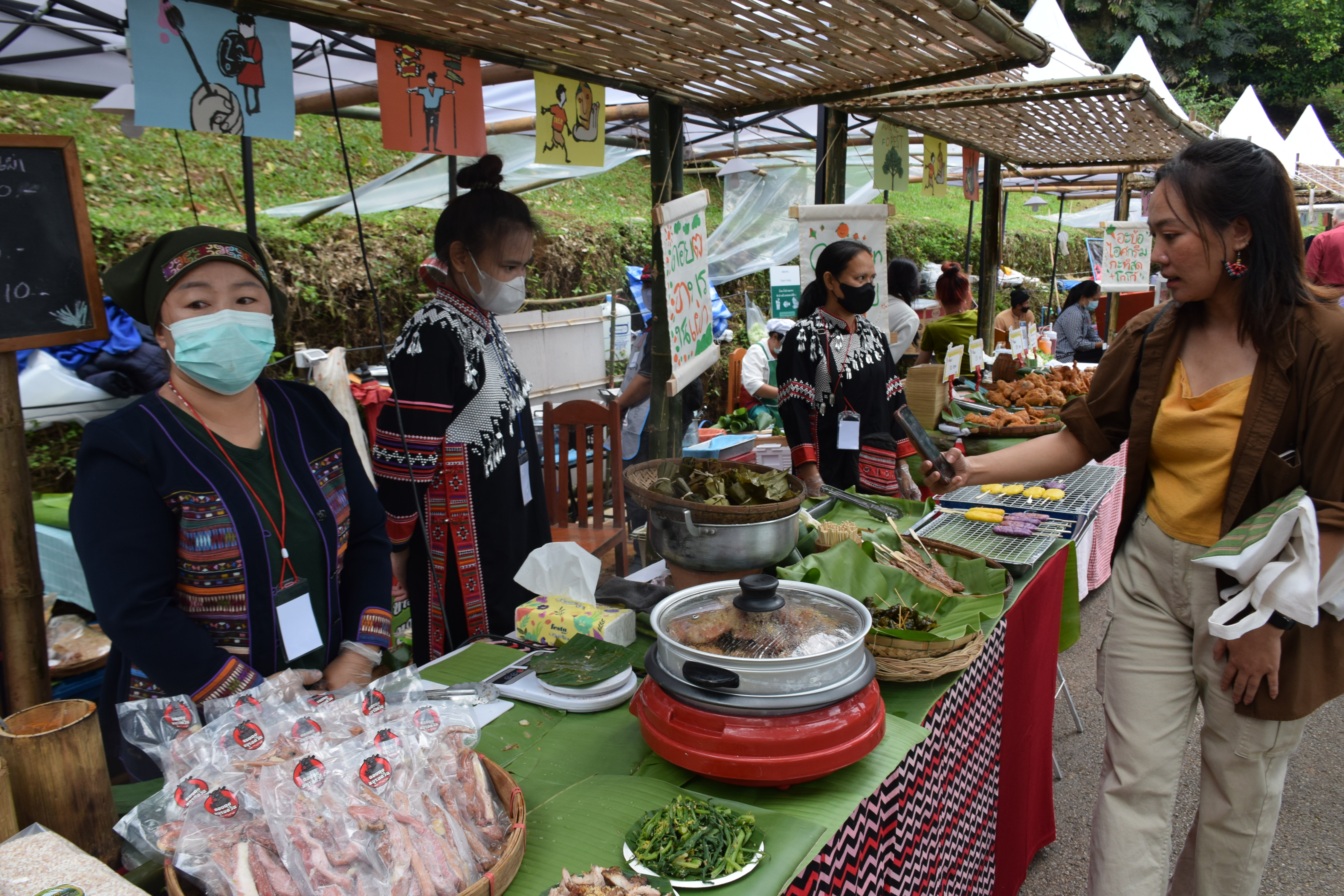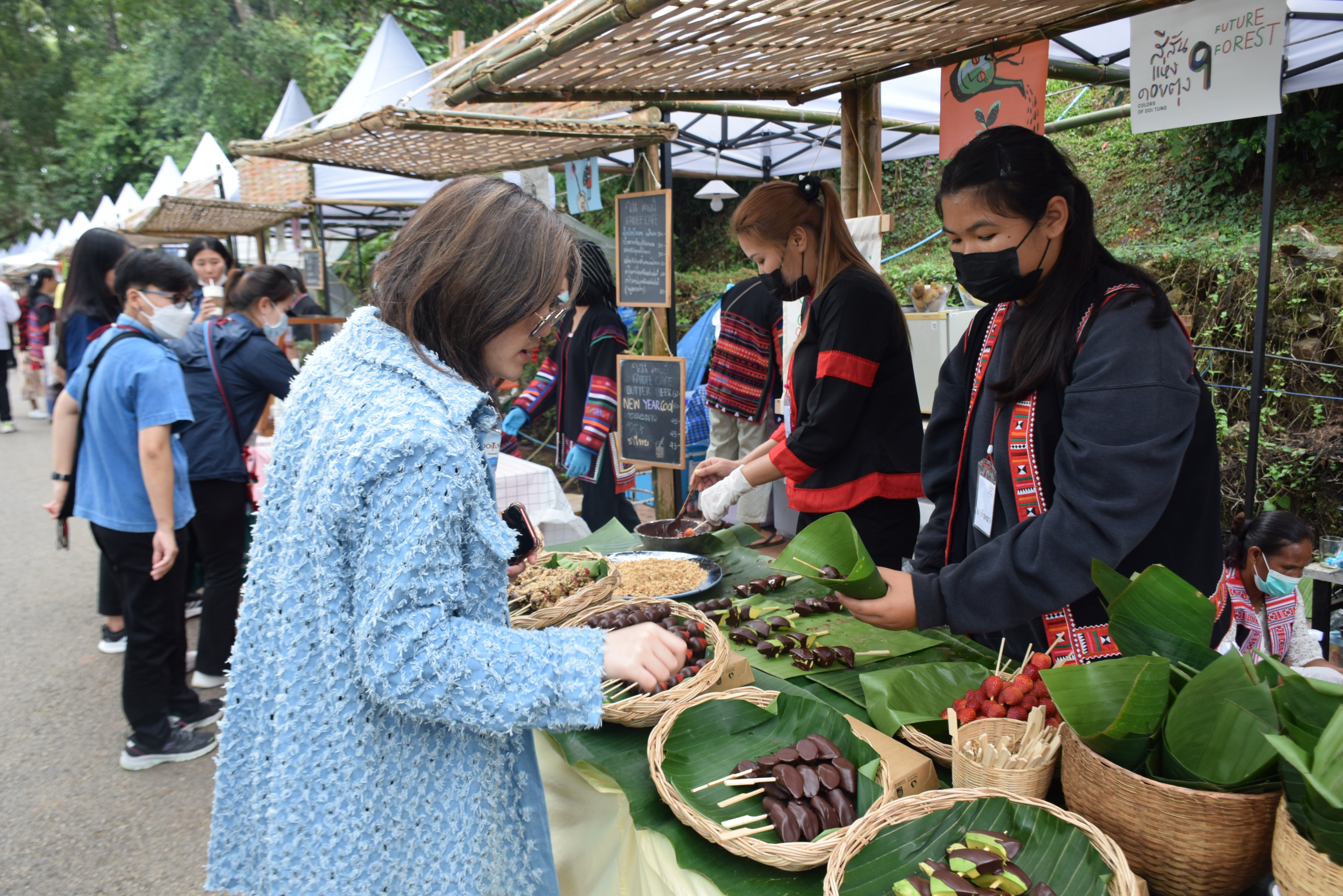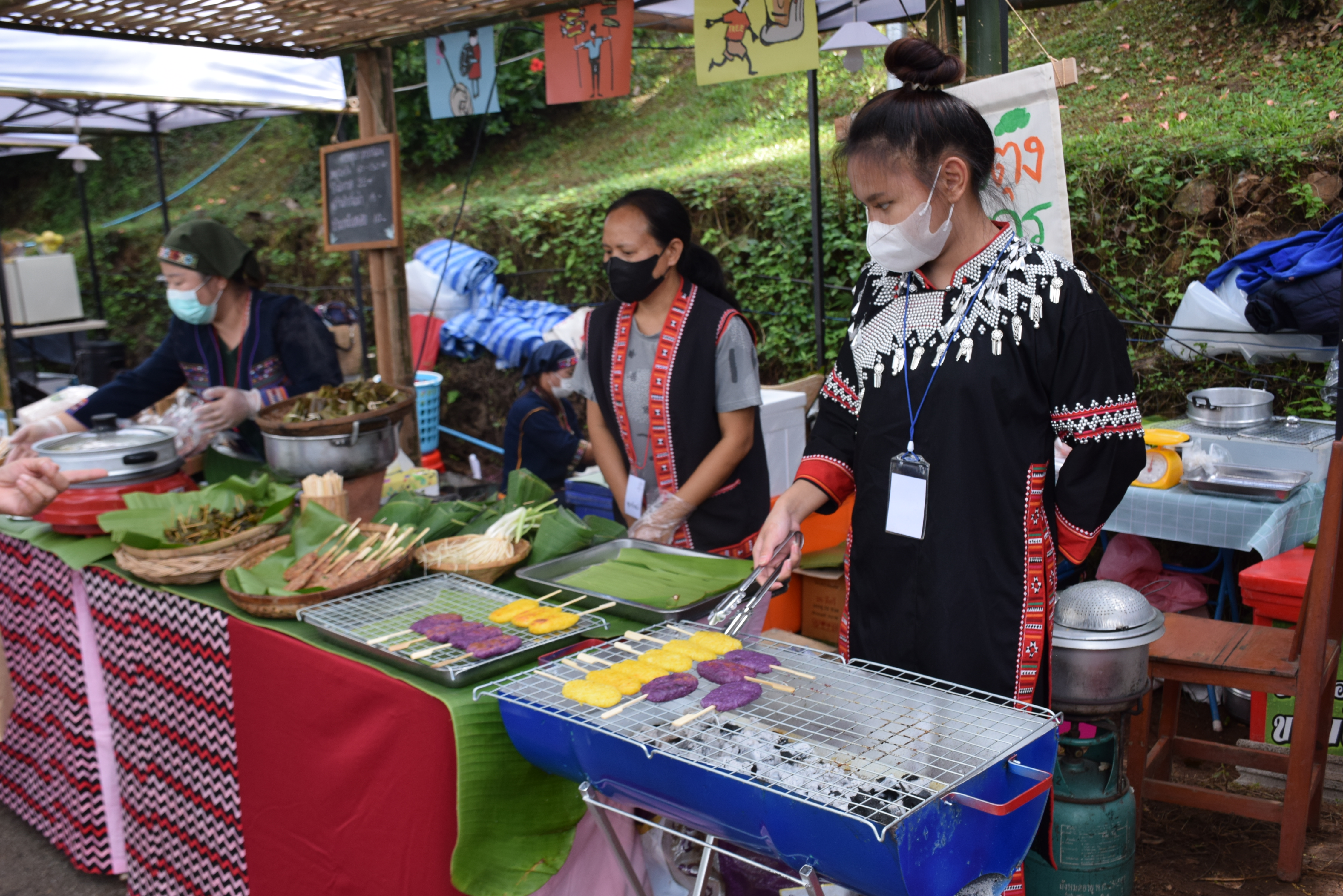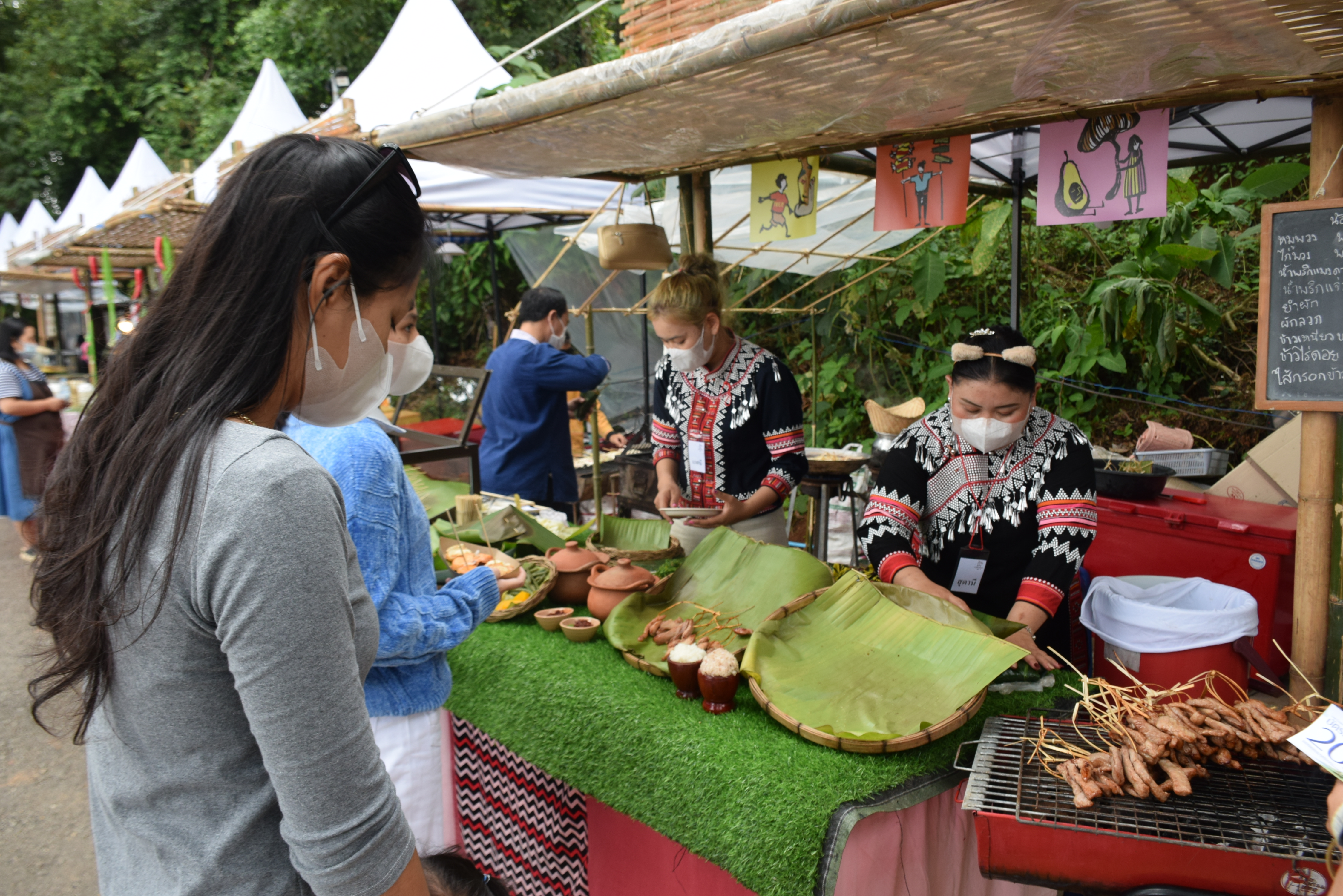 หลังจากถ่ายรูปคู่กับดอกไม้เมืองหนาวนานาพันธุ์ นักท่องเที่ยวสามารถเดินมาทานอาหารของชนเผา ที่จัดเตรียมไว้ตามซุ้มต่างๆ ของชนเผ่า นำอาหารมานั่งทานชมวิวป่าเขา และสวนดอกไม้แม่ฟ้าหลวง อย่างสบายตาสดชื่น รับกลิ่นไออากาศที่หนาวเย็น ตลอดทั้งวัน ซึ่งเทศกาลดอยตุงจะมีไปตั้งแต่วันที่ 2 ธ.ค. ไปจนถึง 29 ม.ค. 65 เปิดตั้งแต่เวลา 08.00 น. ถึง 18.00 น.