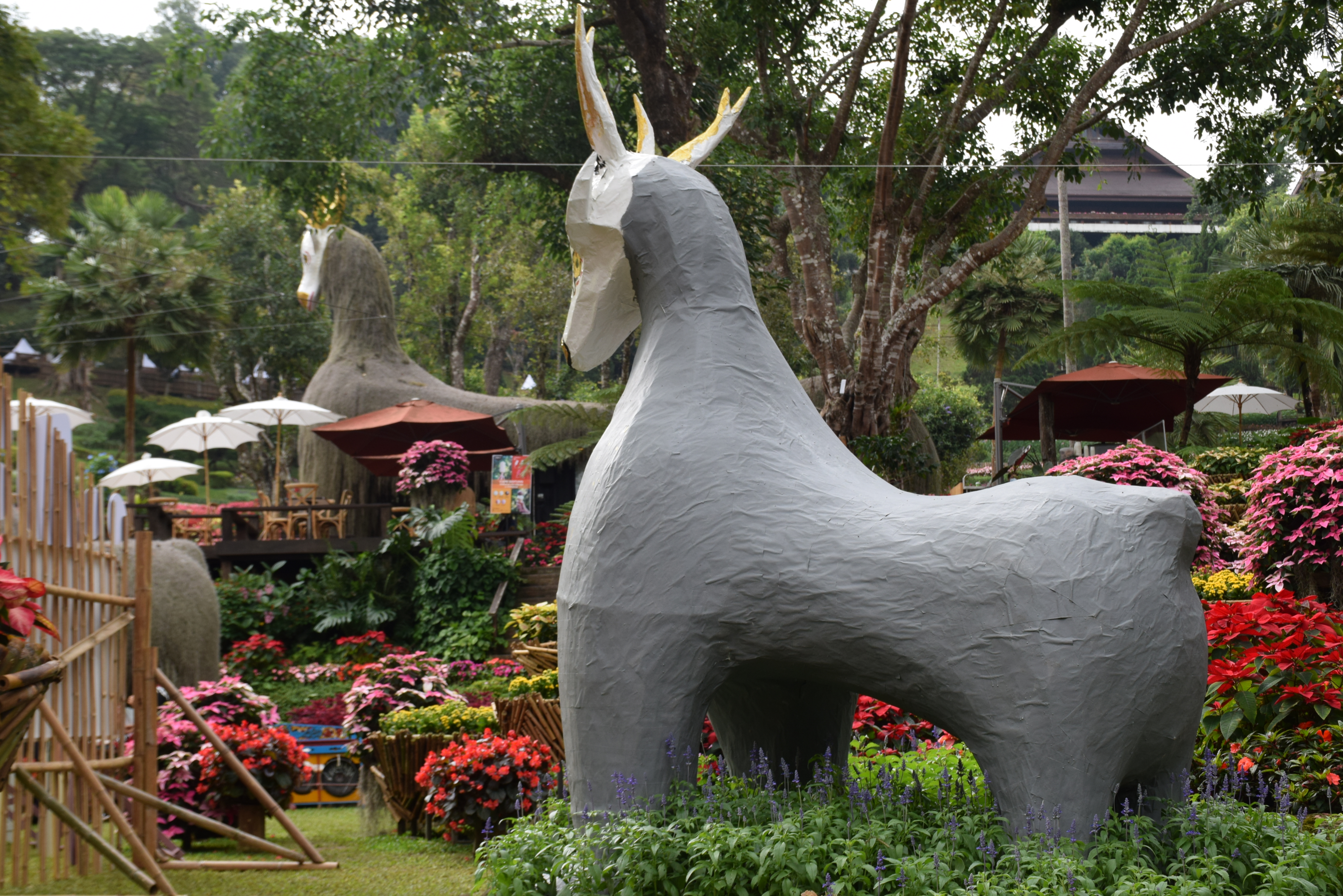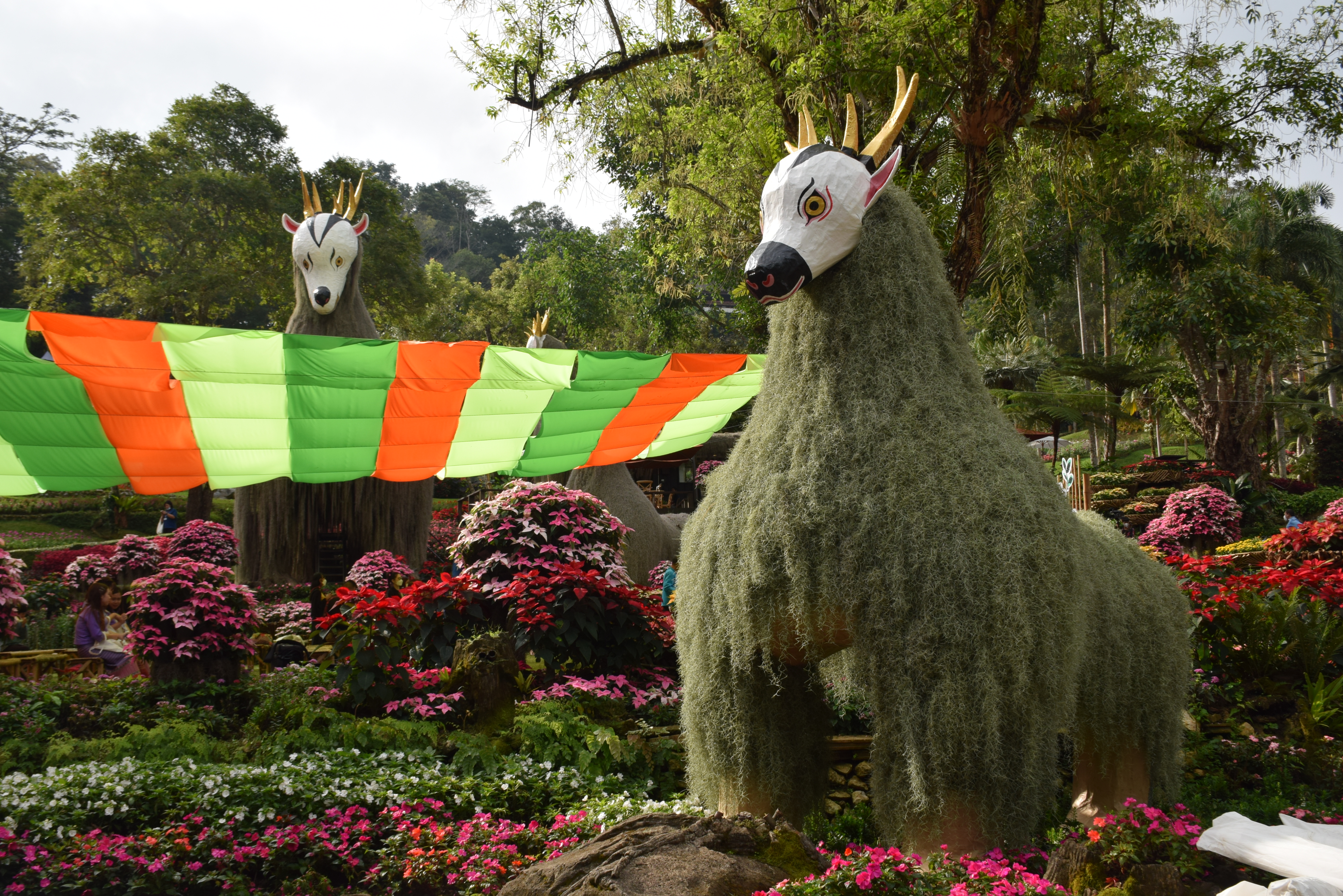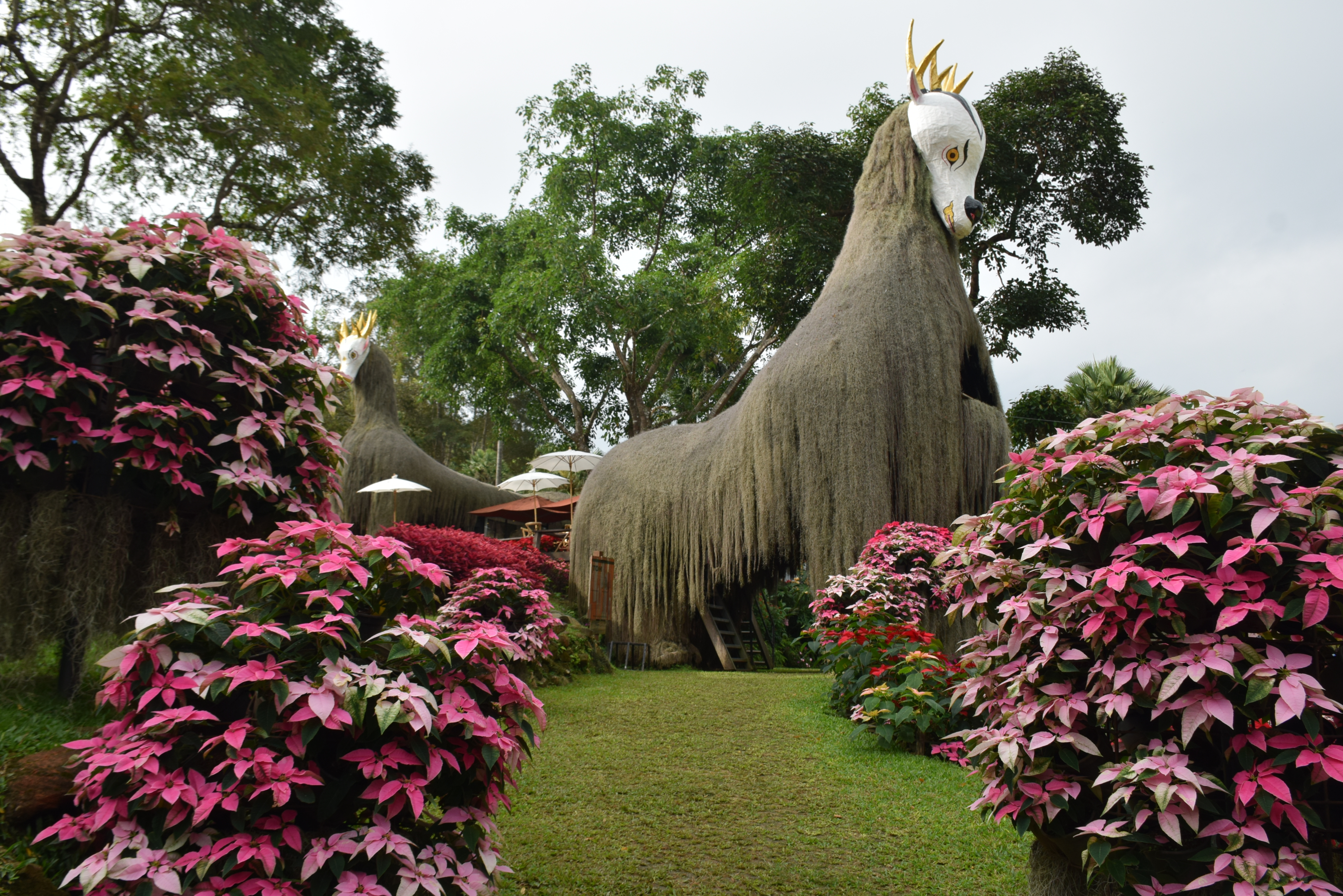 ภายในสวนแม่ฟ้าหลวง นักท่องเที่ยวจะได้ชม ถ่ายรูปร่วมประติมากรรมตัวโตยักษ์ ที่มีใบหน้าเป็นศิลปะล้านนา ซึ่งตัวโต เป็นสัตว์มงคลตามความเชื่อ ของชาวไทใหญ่ เป็นตัวแทนของสิริมงคลและความรุ่งเรืองเจริญก้าวหน้า และยังพบรูปแบบใหม่ของเรือนกระจกเงา สามารถถ่ายรูปในกระจก จะภาพสะท้อนของต้นไม้ ร่วมกับรูปของเรา