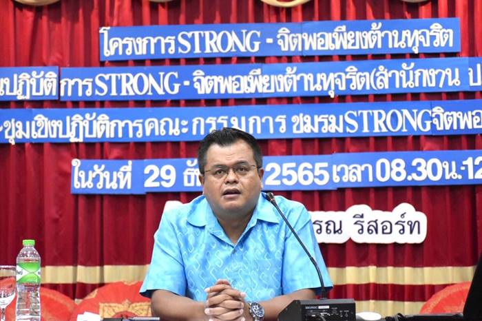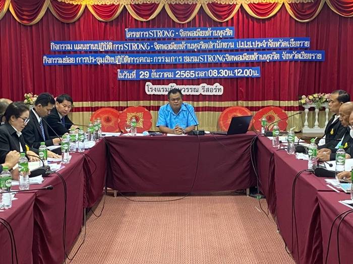 วันที่ 29 ธันวาคม 2565 เวลา 09.00 น. นายเนติพล ชุมยวง ผู้อำนวยการสำนักงาน ป.ป.ช. ประจำจังหวัดเชียงราย ให้เกียรติเข้าร่วมพบปะคณะกรรมการชมรม STRONG–จิตพอเพียงต้านทุจริต จ.เชียงราย ตามโครงการ STRONG–จิตพอเพียงต้านทุจริต ซึ่งการประชุมครั้งนี้เป็นครั้งแรกหลังจากคณะกรรมการฯ ชุดเดิมหมดวาระไปแล้ว ในการประชุมได้มีการวางแผนขับเคลื่อนการป้องกันการทุจริตในจังหวัดเชียงราย อาทิ การจัดทำข้อตกลงคุณธรรมป้องกันการทุจริตในการจัดซื้อจัดจ้าง, การแก้ไขปัญหาการบุกรุกที่สาธารณสมบัติของแผ่นดิน, การป้องกันการเรียกรับเงินเพื่อแลกกับโอกาสในการเข้าเรียนในสถานศึกษาที่มีชื่อเสียง (แป๊ะเจี๊ยะ) เป็นต้น