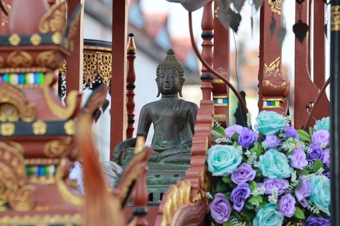 นอกจากนี้ยังมีการอัญเชิญพระพุทธรูปศักดิ์สิทธิ์ 9 องค์จาก 9 วัดในจังหวัดเชียงราย ประดิษฐานบนรถบุษบก ที่งดงามซึ่งสร้างโดยศิลปิน และนายช่างที่สะท้อนเอกลักษณ์ทางศิลปะของ 8 จังหวัดภาคเหนือตอนบน