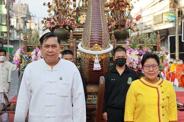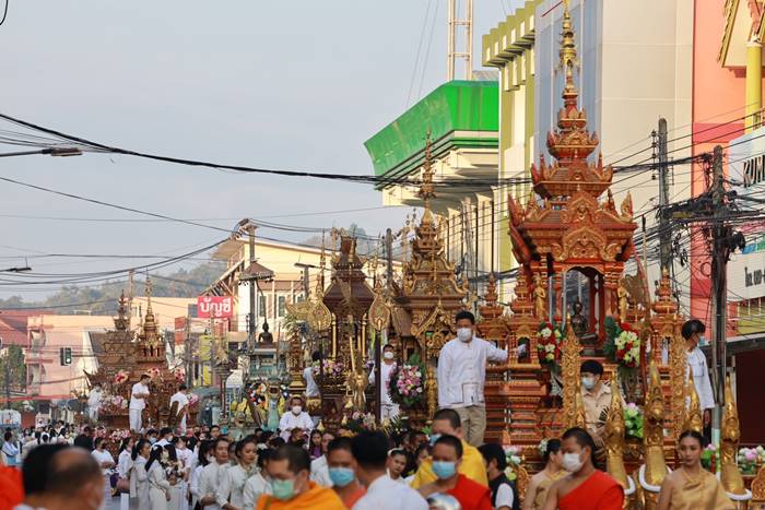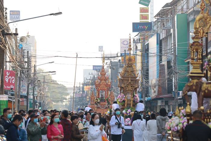 ในการนี้ทางเทศบาลนครเชียงรายได้ตกแต่งขบวนอย่างงดงาม แห่ไปตามถนนธนาลัย เพื่อให้ประชาชน และนักท่องเที่ยวได้กราบไหว้สักการะเพื่อขอพรรับวันปีใหม่ อีกทั้งยังได้ชมราชรถที่สวยงาม ที่มีที่เดียวในประเทศไทย