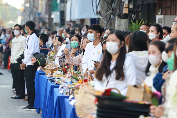 วันที่ 1 ม.ค. 66 ที่ถนนธนาลัย ต.เวียง อ.เมืองเชียงราย จ.เชียงราย นายพุฒิพงศ์ ศิริมาตย์ ผู้ว่าราชการจังหวัดเชียงราย พร้อมด้วยนางสุภาเพ็ญ ศิริมาตย์ นายกเหล่ากาชาดจังหวัดเชียงราย และประธานแม่บ้านมหาดไทยจังหวัดเชียงราย พลตรีประพัฒน์ พบสุวรรณ ผู้บัญชาการมณฑลทหารบกที่ 37 นายวันชัย จงสุทธานามณี นายกเทศมนตรีนครเชียงราย พร้อมด้วยหัวหน้าส่วนราชการในจังหวัดเชียงราย ชาวเชียงรายและนักท่องเที่ยว ร่วมกันทำบุญตักบาตรในวันขึ้นปีใหม่ 2566 โดยมีพระรัตนมุนี ที่ปรึกษาเจ้าคณะจังหวัดเชียงราย นำคณะสงฆ์สามเณร ออกรับบิณฑบาตร ตลอดถนนธนาลัย เขตเทศบาลนครเชียงราย ผู้มาร่วมทำบุญตักบาตรวันขึ้นปีใหม่ โดยทุกคนตั้งจิตอธิฐานขอให้สิ่งดี ๆ เกิดขึ้นกับชีวิต และเกิดแต่ความดีงามในประเทศไทย