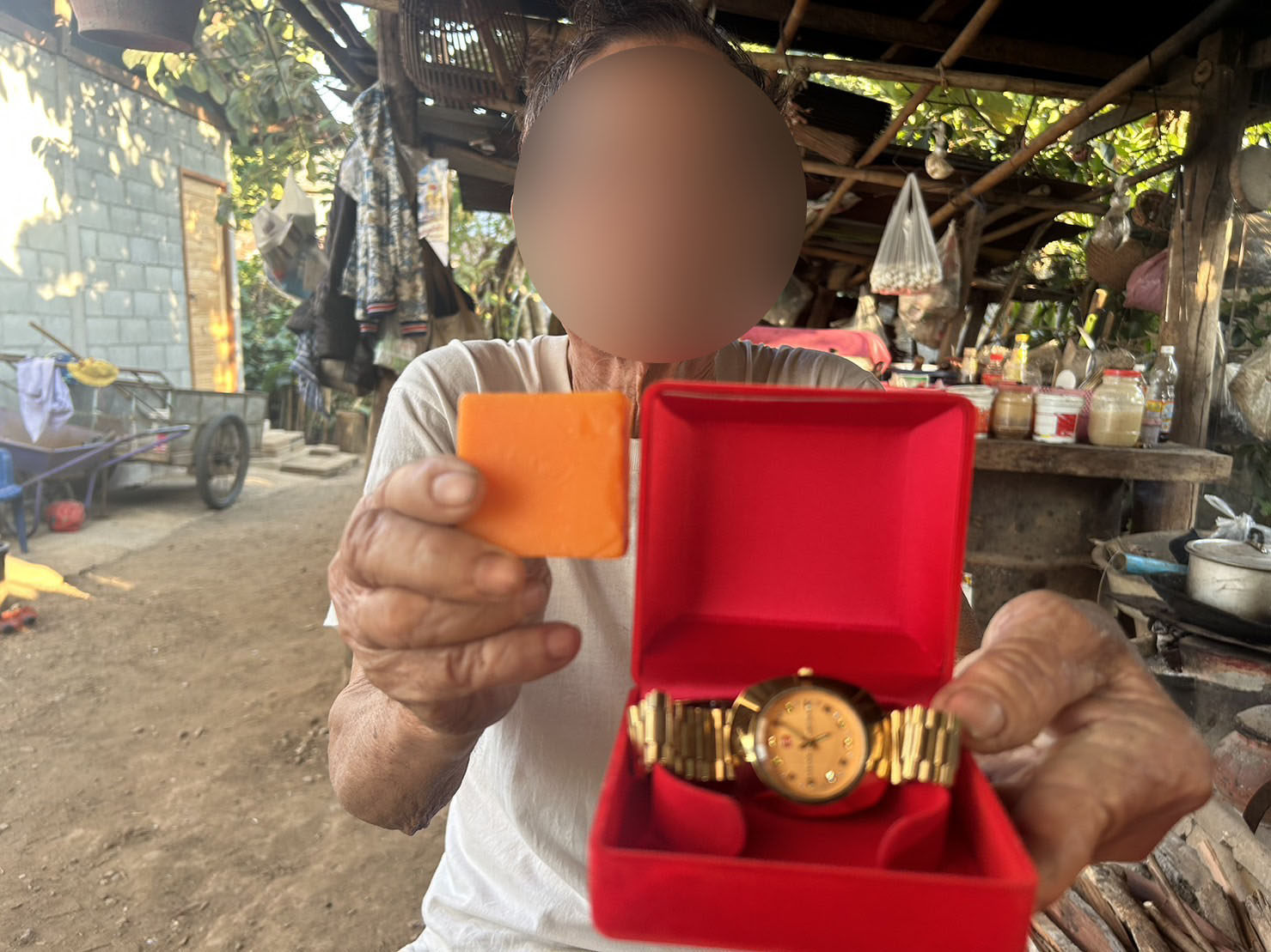 ต่อมาหลานสาวได้เข้ามาเที่ยวหาบ้าน และมาเห็นนาฬิกาเรือนดังกล่าว ก็รู้ว่ามีขายอยู่ในท้องตลาด ราคา 199 บาท จึงรู้ว่าตายายถูกหลอก จึงรีบไปแจ้งให้ทางนางเพ็ญศรี ใจยะ (ผู้ใหญ่บ้าน) ประกาศเสียงตามสาย เพื่อตามหารถคันดังกล่าว แต่ไร้วี่แวว