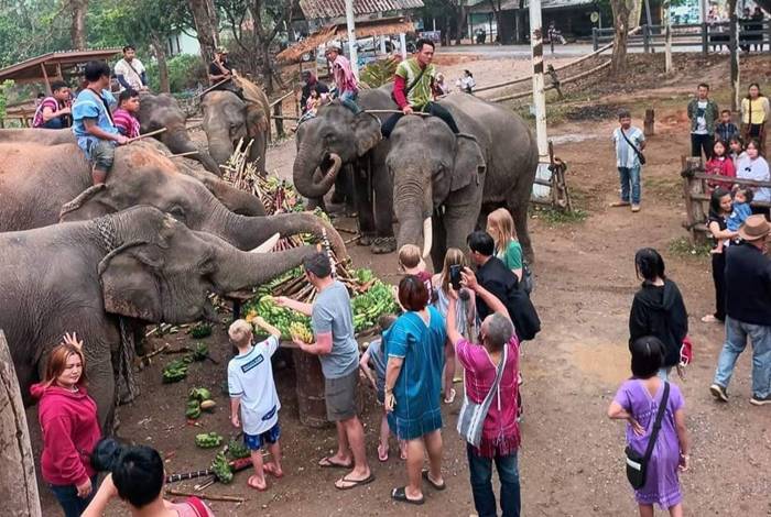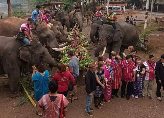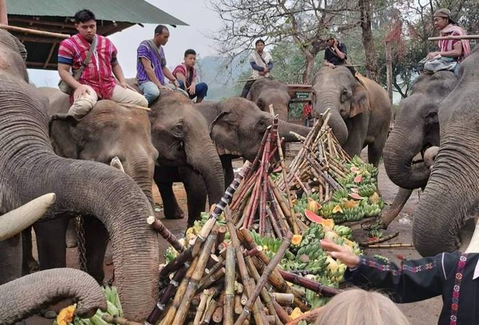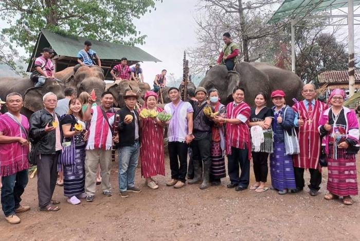 ชาวบ้านกะเหรี่ยงรวมมิตร จัดเลี้ยงขันโตกช้าง เนื่องใน “วันช้างไทย” ประจำปี 2566