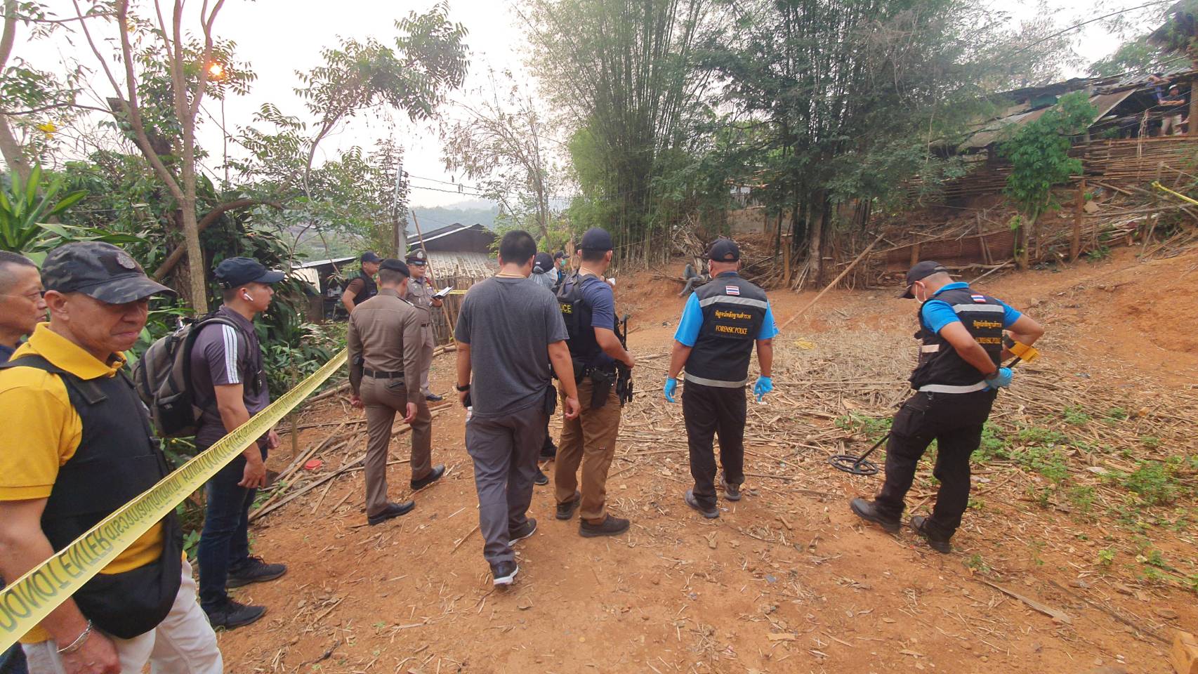 อย่างไรก็ตาม ทางเจ้าหน้าที่ได้ปิดกั้นพื้นที่เพื่อให้เจ้าหน้าที่พิสูจน์หลักฐาน และแพทย์นิติเวชฯ มาตรวจสอบที่เกิดเหตุ โดยพบอาวุธปืนพกสั้นยี่ห้ออูซี่ ขนาด 9 มม. 1 กระบอก และกระสุนในแม็กกาซีนจำนวนหนึ่ง