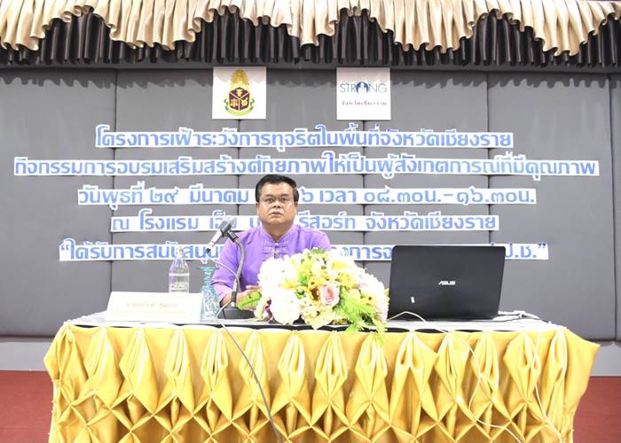 ป.ป.ช.เชียงราย ร่วมกับชมรม STRONG จัดอบรมเสริมสร้างศักยภาพให้เป็นผู้สังเกตการณ์เฝ้าระวังการทุจริต
