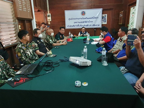 เวลา 16.00 น. วันที่ 2 เมษายน 2566 นายพุฒิพงศ์ ศิริมาตย์ ผู้ว่าราชการจังหวัดเชียงราย พร้อมด้วยนายชุติเดช กมนณชนุตม์ ผอ.สบอ.15 (เชียงราย) นายสมเกียรติ ปูกา ทสจ.เชียงราย นายอุดม ปกป้องบวรกุล นายอำเภอแม่สรวย ผู้แทนสจป.ที่ 2 (เชียงราย) กอ.รมน. ผู้แทน มทบ.37 กำนันผู้ใหญ่บ้าน ต.วาวี ต.แม่สรวย และ ต.ป่าแดด อีกทั้งผู้บริหาร สบอ.15 (เชียงราย) และเจ้าหน้าที่ที่เกี่ยวข้อง ประชุมวางแผนดับไฟป่าของศูนย์บัญชาการเหตุการณ์ส่วนหน้า จ.เชียงราย ณ war room อุทยานแห่งชาติลำน้ำกก (เตรียมการ)