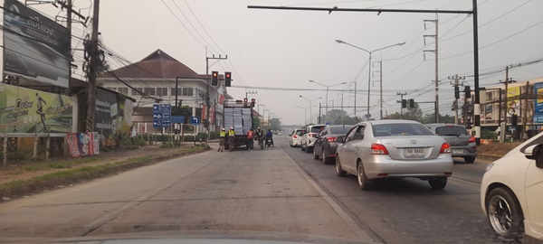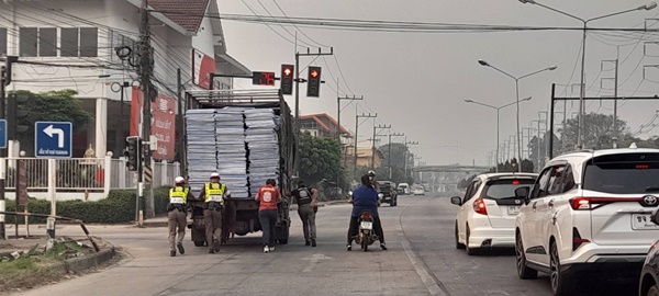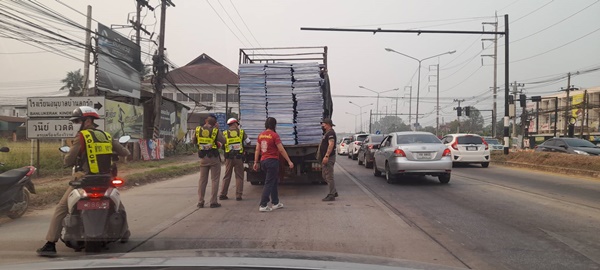 จราจร แม่จัน จ.เชียงราย ช่วยเหลือประชาชนรถบรรทุกหกล้อจอดเสียเข้าเกียร์ไม่ได้