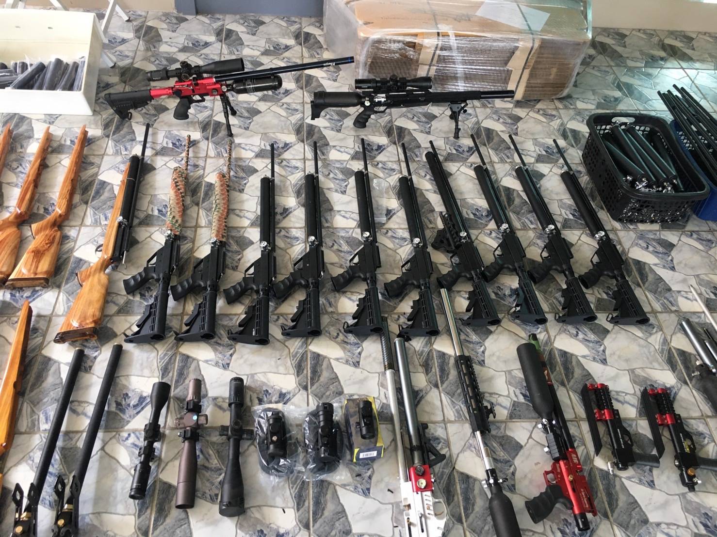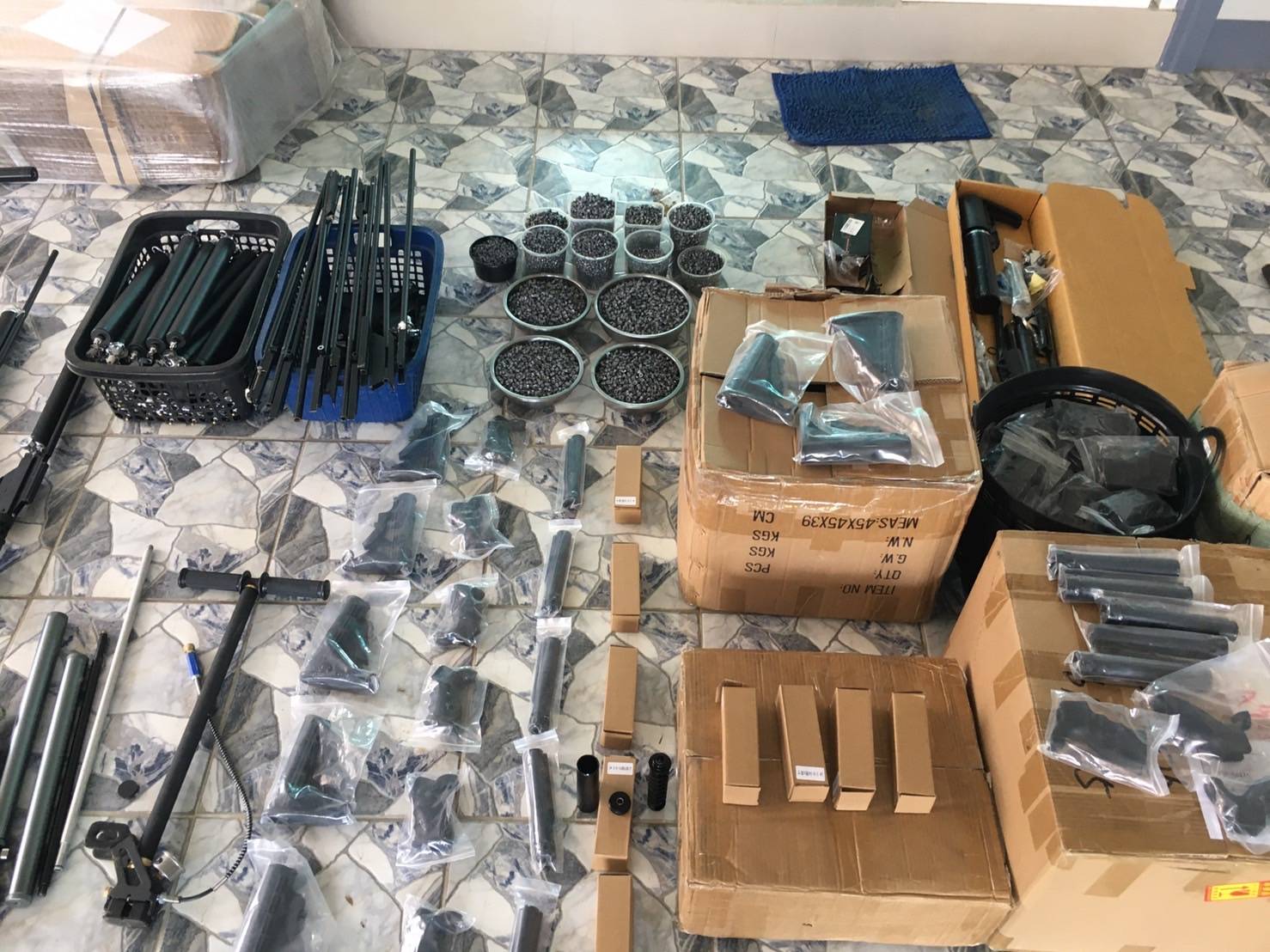 จากการตรวจสอบที่บ้านหลังหนึ่งพบมีการต่อเติมเป็นโรงงานผลิตอาวุธปืนยาวอัดลมขนาดใหญ่ ภายในพบอาวุธปืนยาวอัดลมไทยประดิษฐ์ จำนวน 13 กระบอก ปืนยาวลูกกรดขนาด .22 จำนวน 1 กระบอก อาวุธปืนยาวลูกซอง ขนาด 12 จำนวน 1 กระบอก ปืนพกสั้นขนาด 9 มม. 1 กระบอก และพบอุปกรณ์ในการผลิตอาวุธปืน เช่น พันท้ายลำกล้องอาวุธปืนกระบอกลม กระบอกเก็บเสียงจำนวนมากอยู่ในโรงงานจำนวนมากพร้อมรอการประกอบ เครื่องอัดลูกตะกั่วฝาจีบ จำนวน 4 เครื่อง เครื่องกลึงเหล็ก 1 เครื่อง เครื่องพ่นสีพาวเดอร์โพส 1 เครื่อง ตู้อบสี จำนวน 1 ตู้ พร้อมอุปกรณ์อื่นๆ