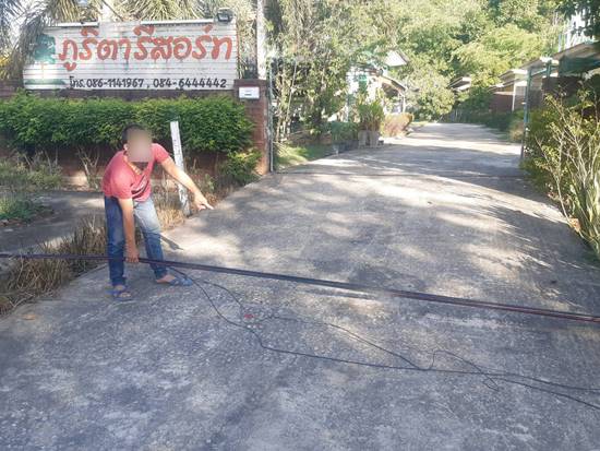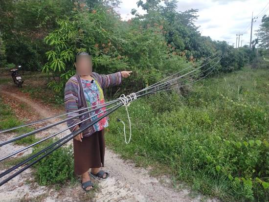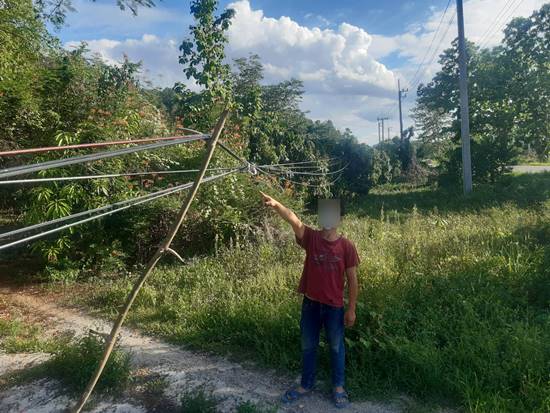 ชาวบ้านเดือดร้อน ช่างรับเหมาย้ายเสาไฟฟ้า ทิ้งสายสื่อสารขวางทางเข้าออกบ้านมานาน 2 เดือน ร้องหลายหน่วยงานแต่ไม่มีการแก้ไข