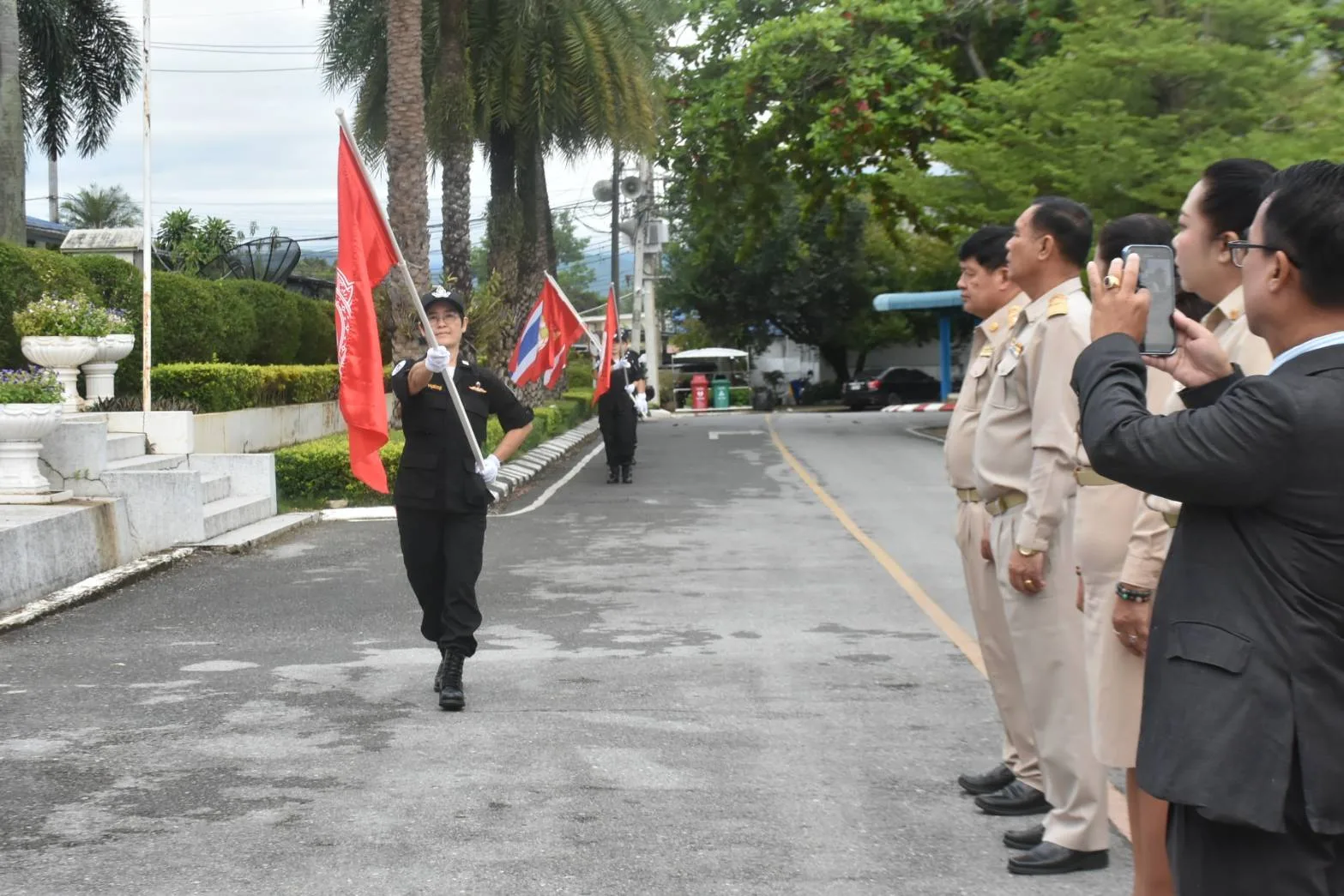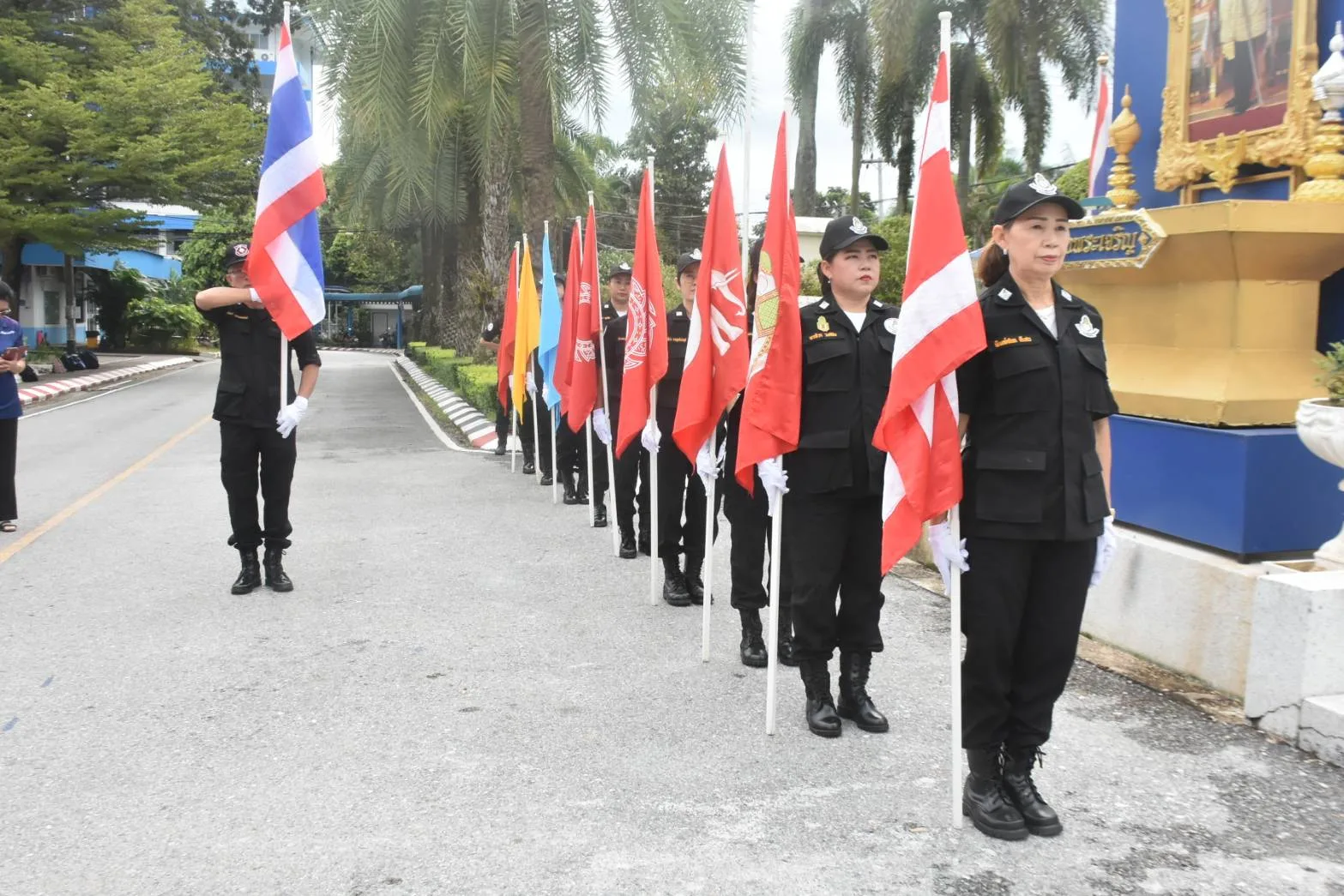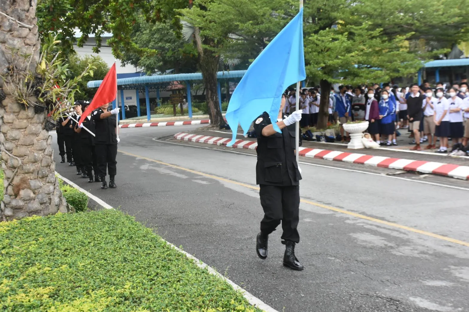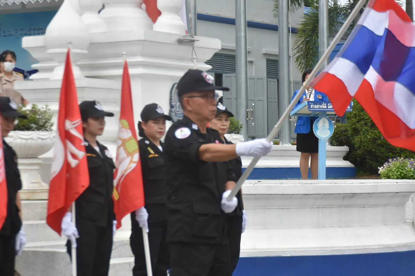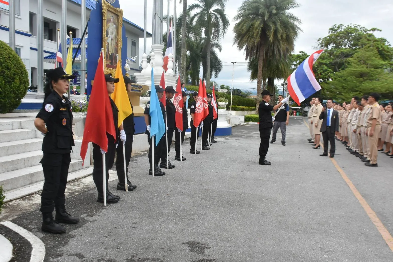 น.ส.กานต์พิชชา สุรีคุณาพงษ์ กรรมการฝ่ายประชาสัมพันธ์ โรงเรียนพลเมือง ฯ กล่าวตอนท้ายว่า ในการจัดกิจกรรมครั้งนี้ โรงเรียนพลเมือง ศูนย์พัฒนาการเมืองภาคพลเมือง สถาบันพระปกเกล้า จังหวัดเชียงราย ยังได้สาธิตการเดินธงประวัติธงชาติไทย ให้ผู้ร่วมกิจกรรมได้เห็น ธงชาติไทยตั้งแต่สมัยแรกจนถึงธงไตรรงค์ปัจจุบัน ซึ่ง “ธงไตรรงค์ หรือ ธงชาติไทย” เป็นสัญลักษณ์ของประเทศไทยหรือชาติไทยที่บ่งบอกถึงเอกลักษณ์ และศักดิ์ศรีในความเป็นไทย ซึ่งมีความหมายแสดงความเป็นเอกราชอธิปไตยของชาติ รวมทั้งสถาบันชาติ ศาสนา พระมหากษัตริย์ ธงชาติจึงมีความศักดิ์สิทธิ์ต้องได้รับความเคารพอย่างสูง และยังมีความสำคัญทางจิตใจที่แสดงถึงความรักชาติ ความรู้สึกที่มีร่วมกันของคนในชาติ นอกจากนั้นยังเป็นเสมือนสิ่งศักดิ์สิทธิ์ที่ไม่อาจลบหลู่ และสามารถเป็นเครื่องยึดเหนี่ยวจิตใจของคนในชาติ เพื่อจะได้ดำรงไว้ซึ่งความเป็นปึกแผ่นของประเทศไทยให้ยั่งยืนตลอดไปชั่วกาลนาน