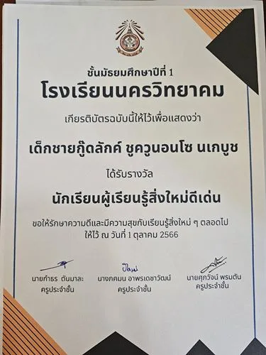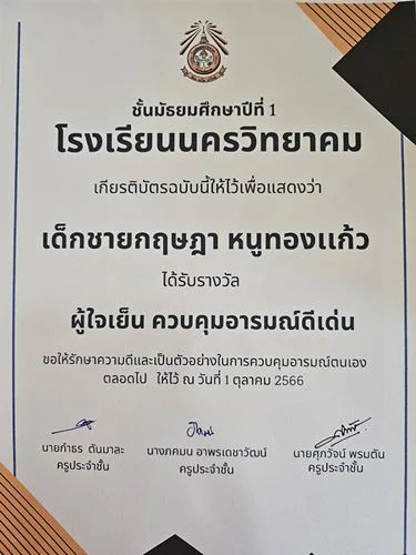 “ก่อนหน้านี้ตนก็มีแนวคิดจะมอบเกียรติบัตร ยกย่องการทำงานของครูแต่ละคนในตอนจบปีการศึกษาเช่นกัน ก็ถือว่าเป็นกำลังใจในการทำงาน” ผอ.โรงเรียนนครวิทยาคม กล่าว