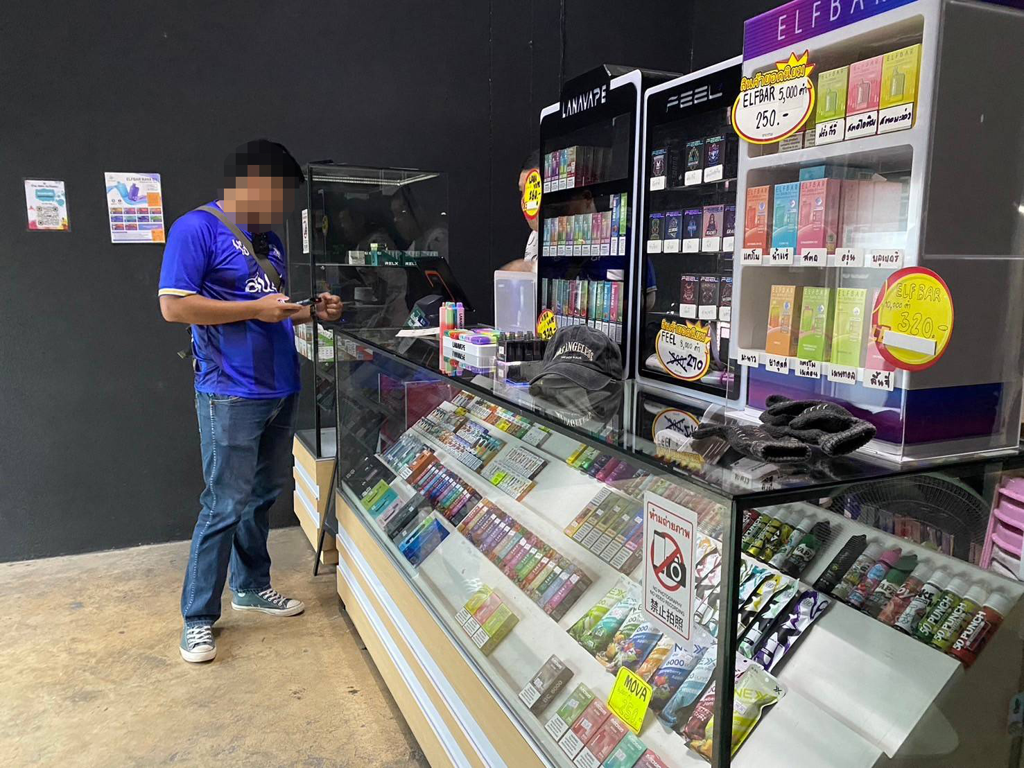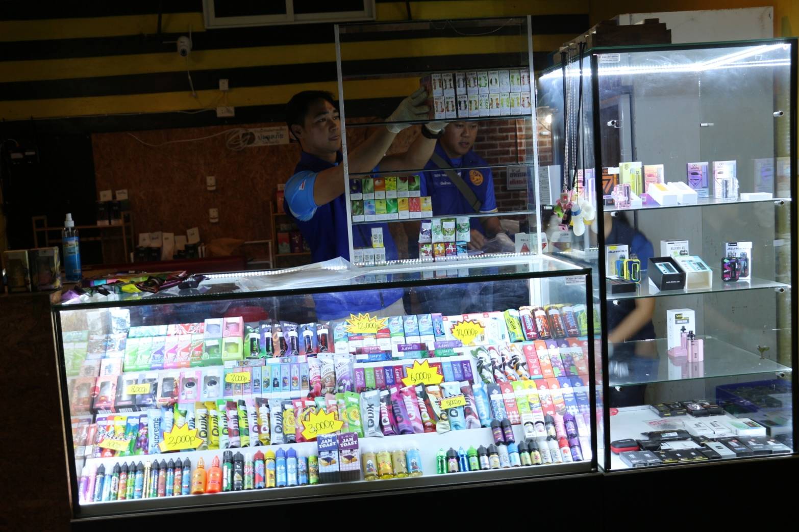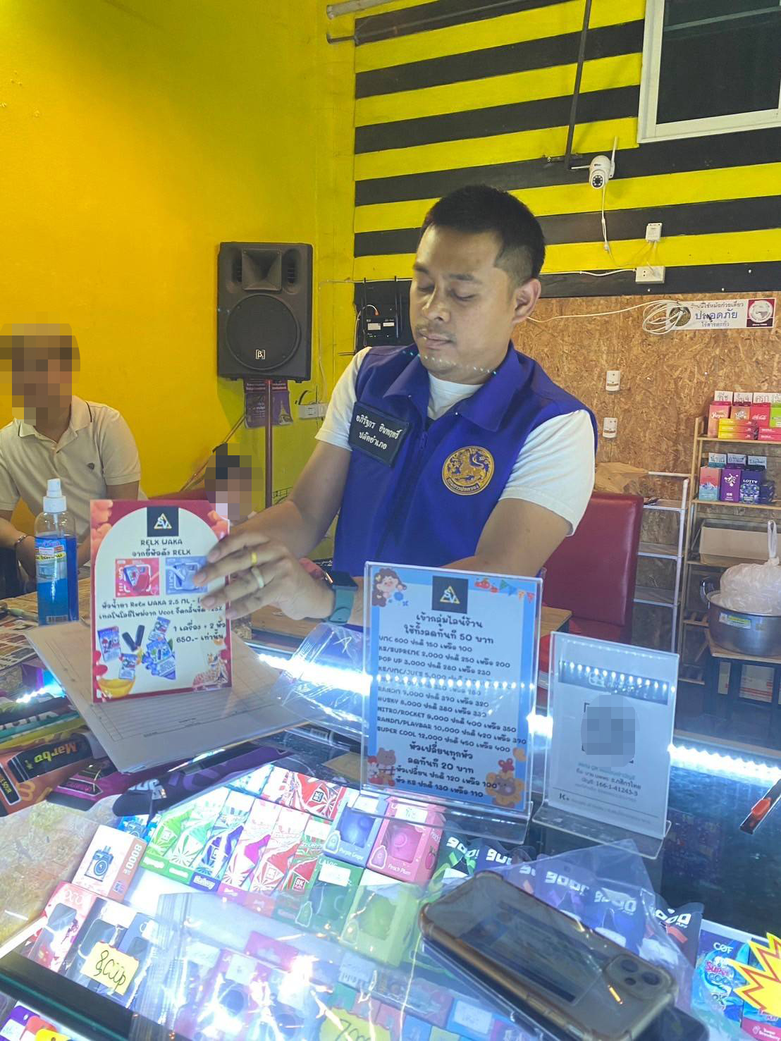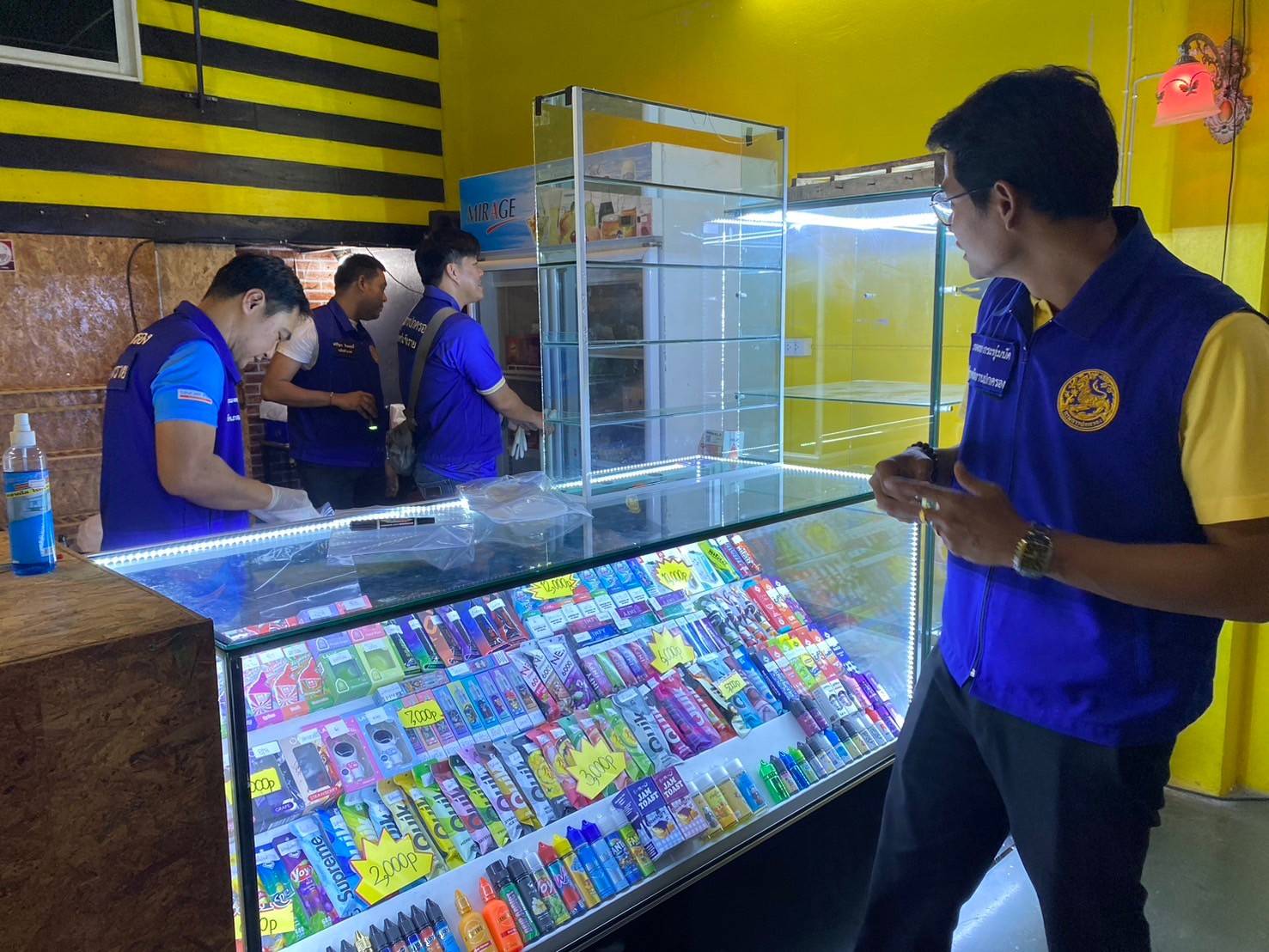 ซึ่งเจ้าหน้าที่ได้มีการสืบทราบว่ามีร้านในบริเวณโซนนิ่งสถานบริการ เปิดแอบขายบุหรี่ไฟฟ้าจำนวน 3 ร้าน ซึ่งทั้ง 3 ร้านมีการติดฟิล์มสีขาวขุ่นอำพราง ไม่ให้มีการมองจากข้างนอกเข้าไปเห็นในบริเวณด้านใน และมีกล้องวงจรปิดรอบทิศทางเพื่อดูสถานการณ์จากภายนอก แต่ผู้ซื้อจะรู้กันภายในกลุ่มไลน์ เฟสบุ๊ค หรือสื่อสังคมต่างๆ