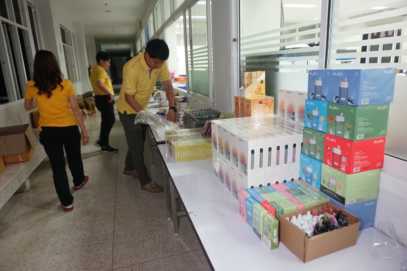 แล้วจากการตรวจสอบภายในร้านทั้ง 3 ร้าน พบบุหรี่ไฟฟ้า อุปกรณ์ น้ำยา และอุปกรณ์อื่นๆ อีกมากมาย ซึ่งสินค้าที่ตรวจยึดได้ของทั้ง 3 ร้านจำแนกเป็น