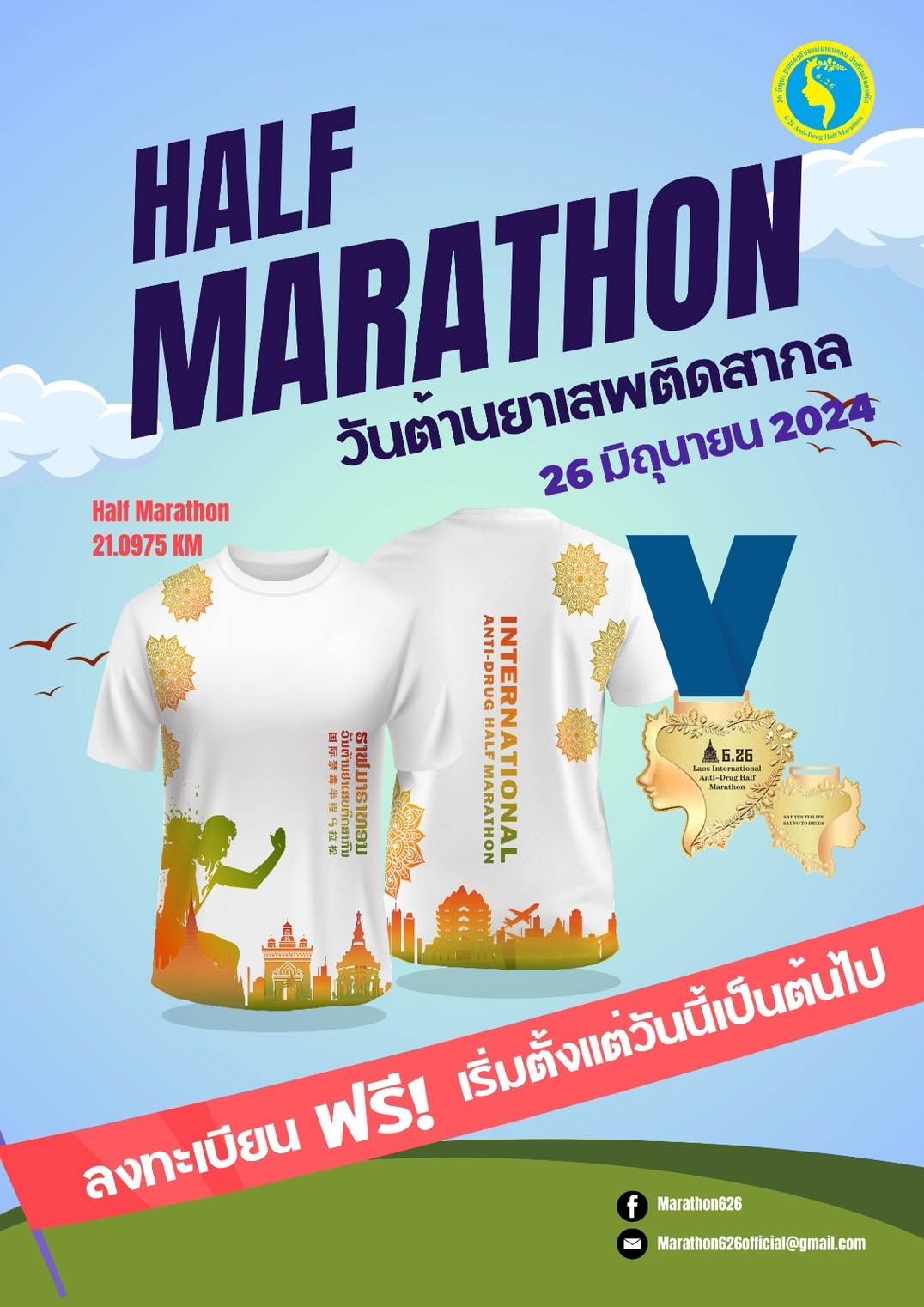ขอเชิญชวนนักวิ่งทุกท่านร่วมงานแข่งขันวิ่งมาราธอนครั้งที่ 4 เนื่องในโอกาสเฉลิมฉลองวันต้านยาเสพติดสากลครบรอบ 37 ปีที่จะจัดขึ้นในเช้าวันที่ 26/6/2024 การแข่งขัน มีสองประเภทคือ ฮาล์ฟมาราธอน(21.0975 km) และวิ่งระยะสั้น(6,26 km). สมัครฟรี รางวัลรวม 2,500,000 บาท