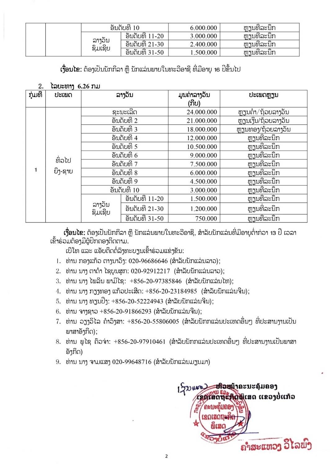 - นาย เชียงซาว: +856-20-91866293(สำหรับนักวิ่งจีน)