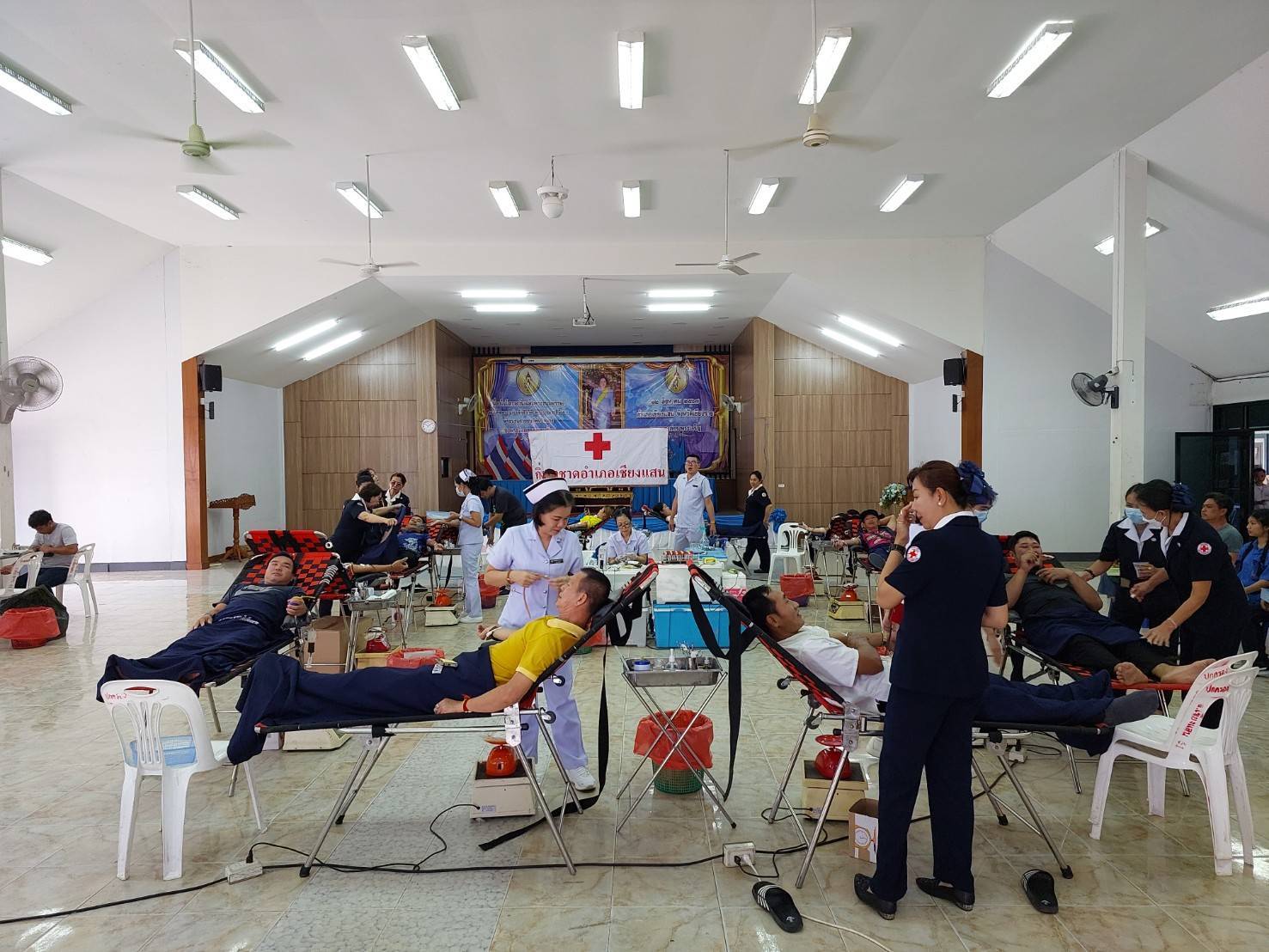วันจันทร์ที่ 19 สิงหาคม 2567 พ.ศ. 2567 เวลา 09.00 – 12.00 น. นางสุภาเพ็ญ ศิริมาตย์ นายกเหล่ากาชาดจังหวัดเชียงราย พร้อมด้วยคณะกรรมการ-สมาชิกเหล่ากาชาดจังหวัดเชียงรายกลุ่มที่ 3 ร่วมกับ สำนักงานสาธารณสุขจังหวัดเชียงราย โรงพยาบาลเชียงรายประชานุเคราะห์ ที่ทำการปกครองอำเภอเชียงแสน กิ่งกาชาดอำเภอเชียงแสน ออกหน่วยรับบริจาคโลหิต และดวงตาอวัยวะเคลื่อนที่ ณ หอประชุมที่ว่าการอำเภอเชียงแสน