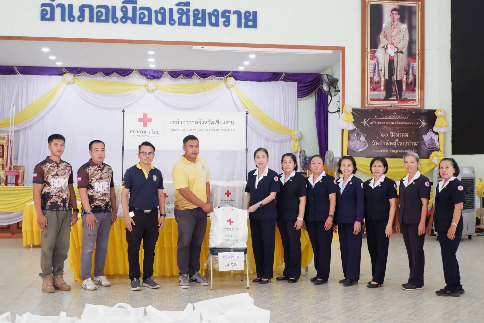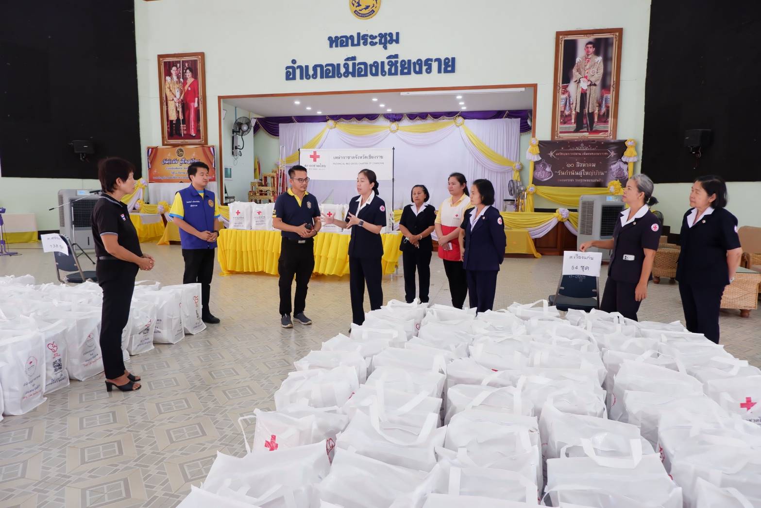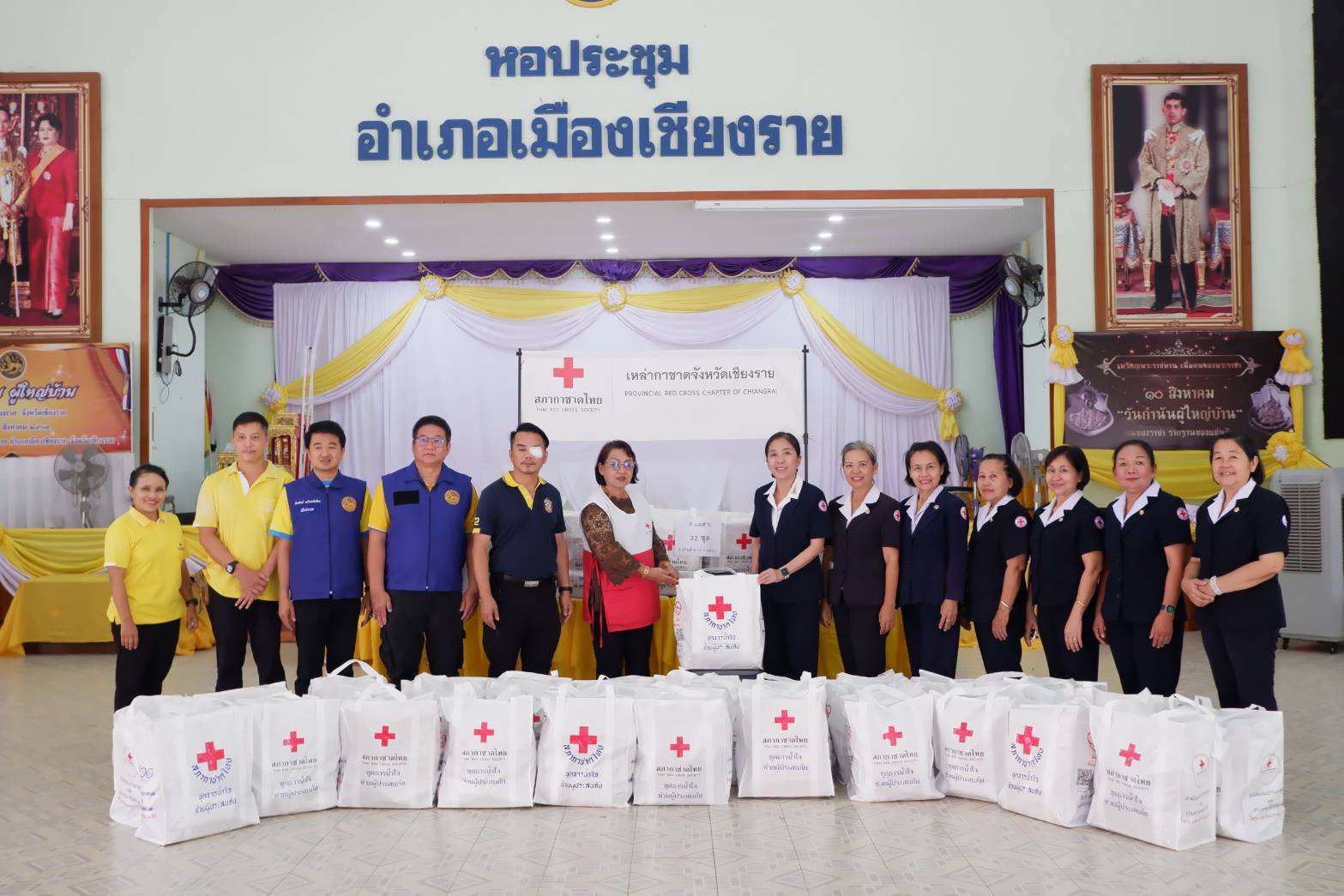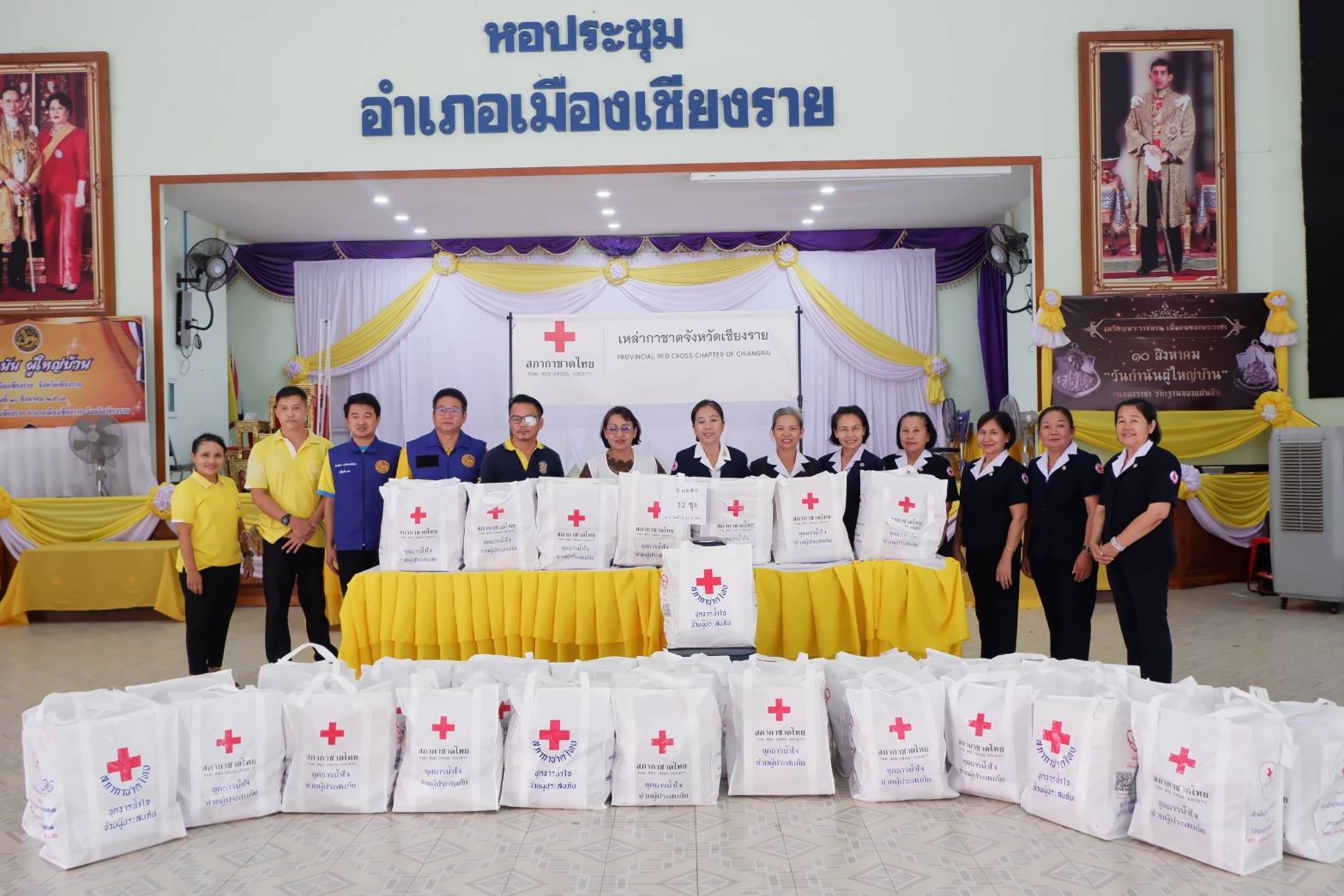วันจันทร์ที่ 19 สิงหาคม 2567 เวลา 14.00 น. ณ หอประชุมที่ว่าการอำเภอเมืองเชียงราย ตำบลริมกก อำเภอเมืองเชียงราย จังหวัดเชียงราย นางสุภาเพ็ญ ศิริมาตย์ นายกเหล่ากาชาดจังหวัดเชียงราย พร้อมด้วยคณะกรรมการ – สมาชิกเหล่ากาชาดจังหวัดเชียงราย กลุ่มที่ 4 มอบชุดธารน้ำใจ สภากาชาดไทย จำนวน 224 ให้กับผู้แทนที่ทำการปกครองเมืองเชียงราย อำเภอแม่สาย และอำเภอเวียงแก่น นำไปมอบให้แก่ผู้ประสบอุทกภัยในพื้นที่ ประกอบด้วย