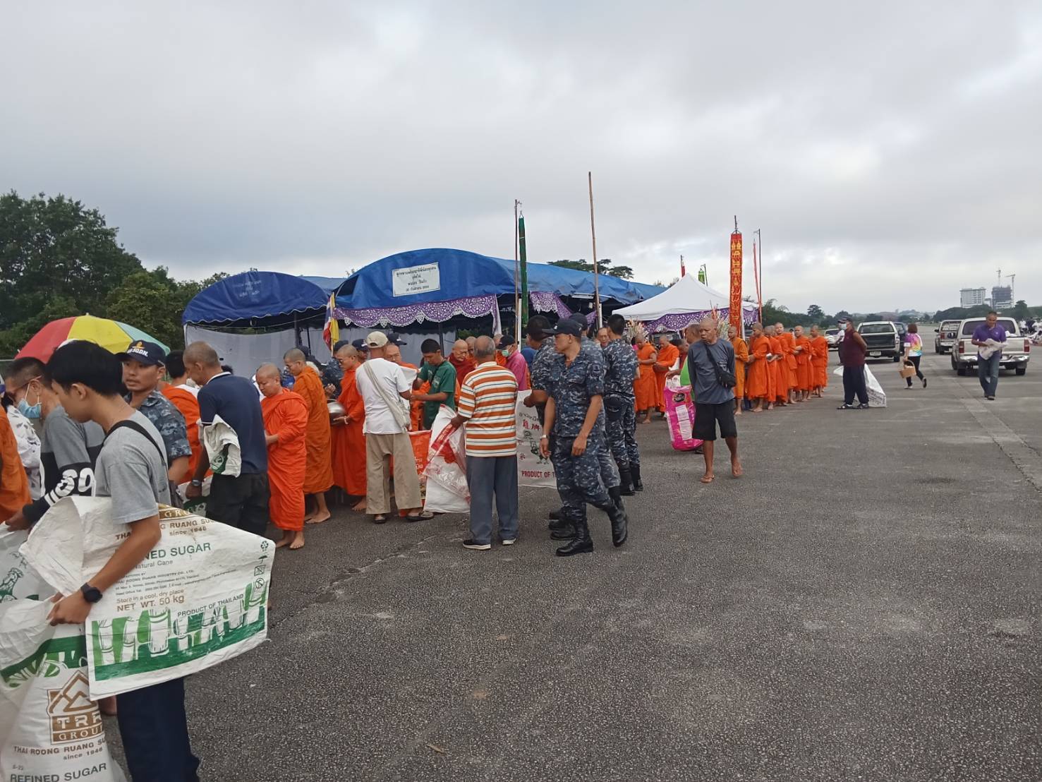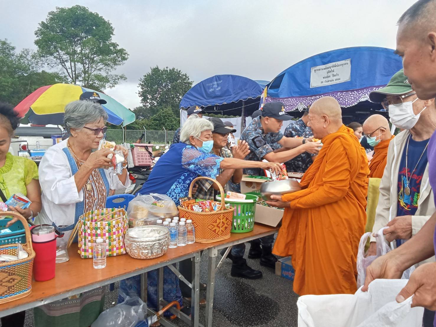 โอกาสนี้ท่านพระครู สาทร วรธรรม เจ้าอาวาสวัดดอยพระบาท ในฐานะประธานฝ่ายสงฆ์ ได้นิมนต์พระภิษุสงฆ์ สามเณร จำนวน 4 วัด ประกอบด้วยวัดดอยพระบาท วัดสันป่าก่อไทยใหญ่ วัดดอยเขาควาย และวัดวรกิจตาราม(สวนโมกข์) รวมทั้งสิ้นจำนวน 50 รูป มารับบิณฑบาตร โดยมีคณะศรัทธาสาธุชน พี่น้องประชาชนจำนวนมากเดินทางมาร่วมในพิธีดังกล่าว จนดูเหมือนว่ารันเวย์สนามบินเก่าคับแคบไปเลย