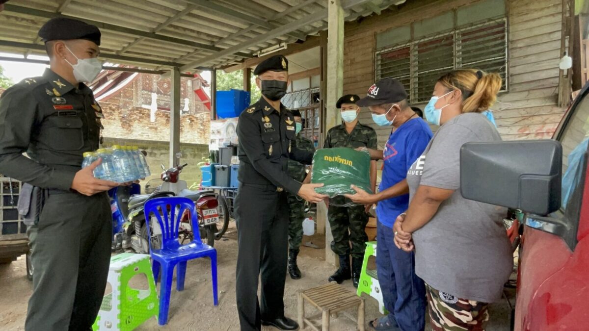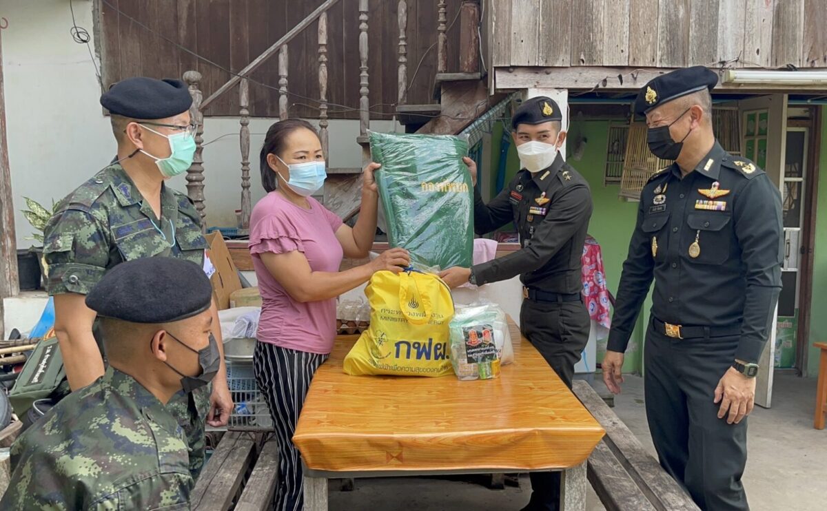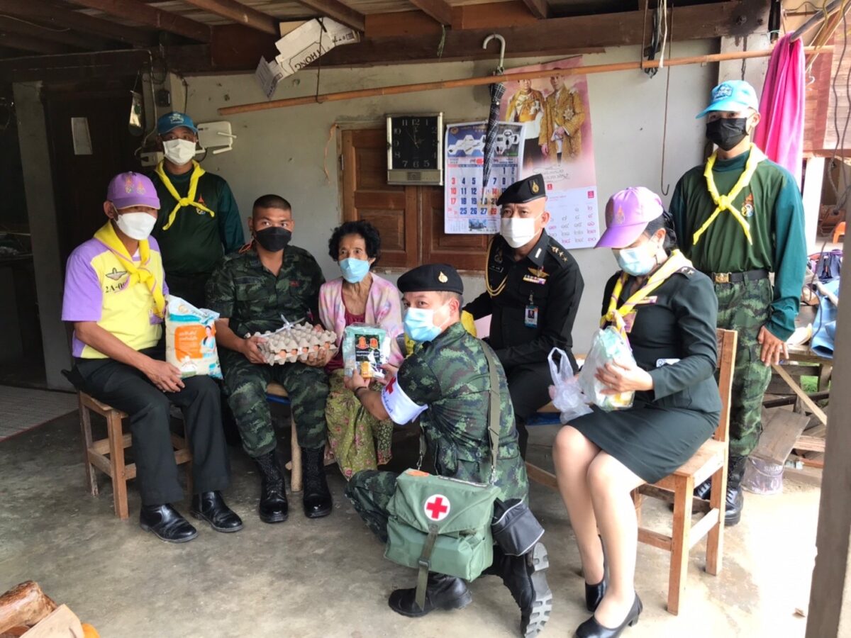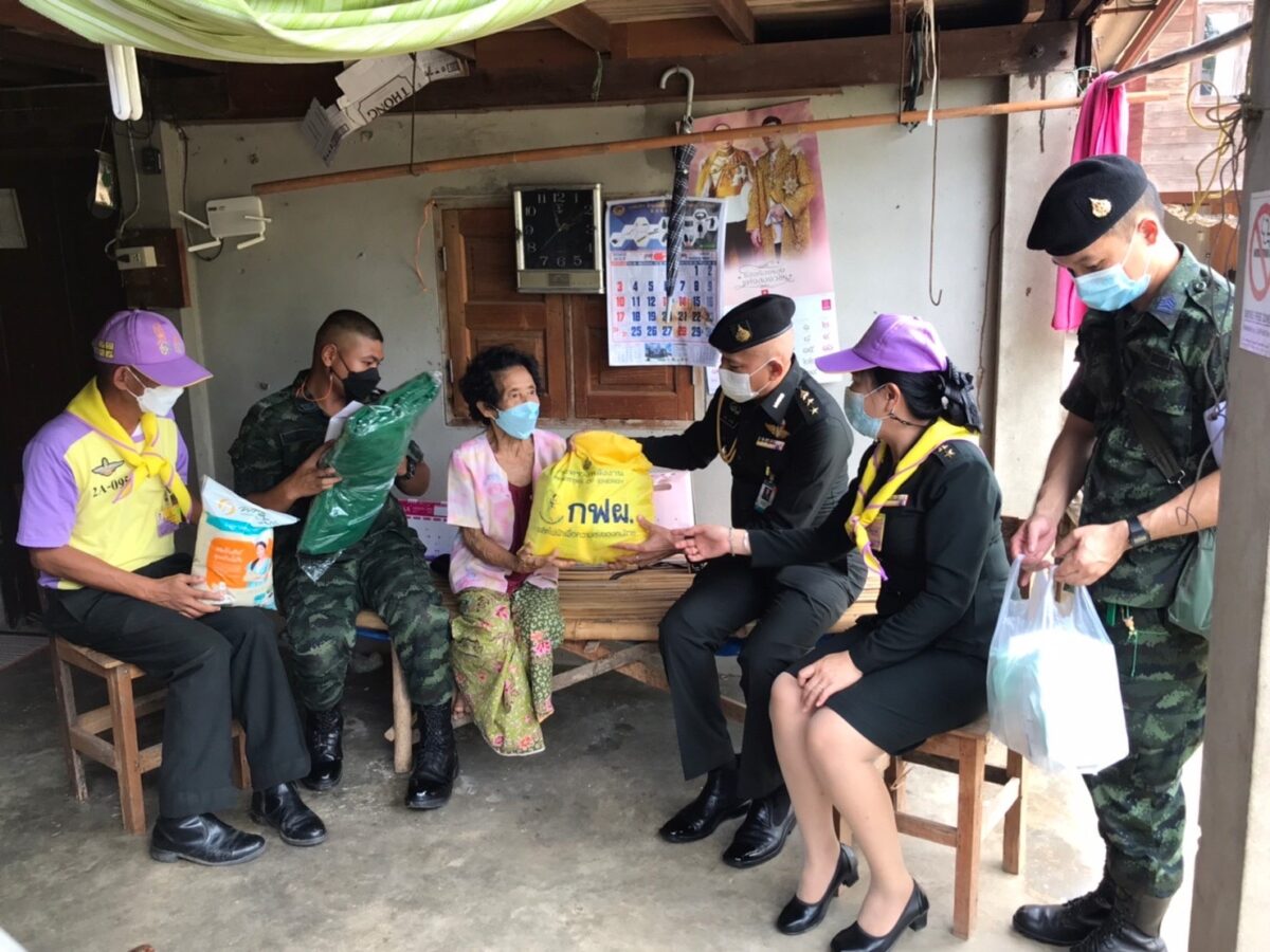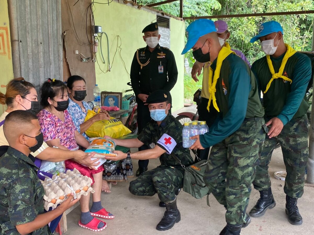 พล.ต.อโณทัย ชัยมงคล ผู้บัญชาการมณฑลทหารบกที่ 32/ผู้อำนวยการศูนย์อำนวยการจิตอาสาพระราชทานมณฑลทหารบกที 32 พร้อมด้วย พ.อ.กวิน ยาวิชัย รองเสนาธิการฯ และคณะผู้บังคับบัญชา ,จิตอาสา 904 หลักสูตรหลักประจำ รุ่นที่ 2/61,หลักสูตรพื้นฐาน ภาค 3 รุ่นที่ 1/65 และจิตอาสาพระราชทานมณฑลทหารบกที่ 32 ,ชุดหมอเดินเท้า รพ.ค่ายสุรศักดิ์มนตรี นำน้ำดื่มน้ำใจ และถุงยังชีพ กฟผ.แม่เมาะ ,รวมทั้ง ไข่ไก่ ชุดยาสามัญประจำบ้าน และ ชุด Together Box ซึ่งเป็นสิ่งของจำเป็นต่อการดำเนินชีวิต ช่วยลดภาระค่าใช้จ่ายในห้วงที่ยังมีการแพร่ระบาดของโควิด-19 ทำให้ขาดรายได้และได้รับผลกระทบ ของครอบครัวทหารใหม่รุ่นปี 65 ผลัดที่ 1 สังกัดกองร้อยมณฑลทหารบกที่ 32 จำนวน 5 ครอบครัว ในพื้นที่อำเภอเมืองลำปาง ,อำเภอเกาะคา และอำเภอห้างฉัตร จังหวัดลำปาง
