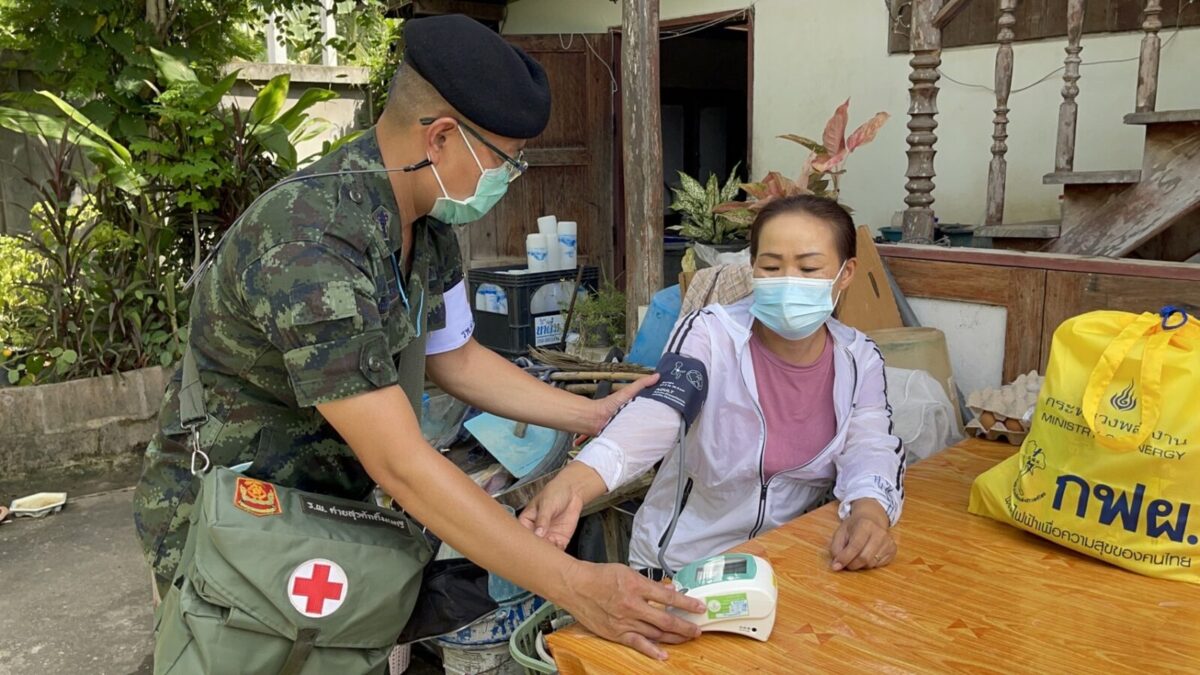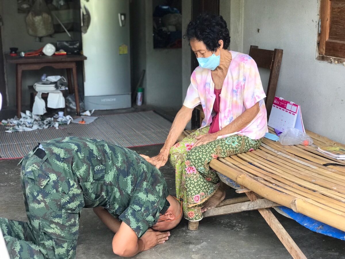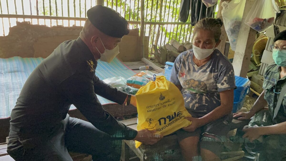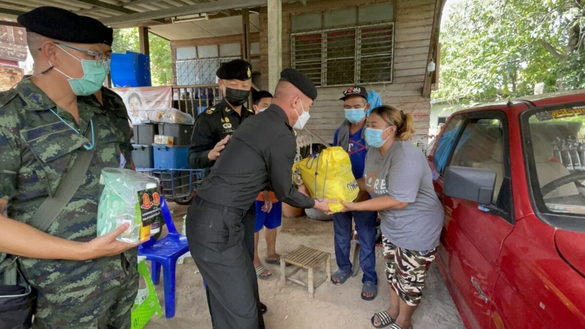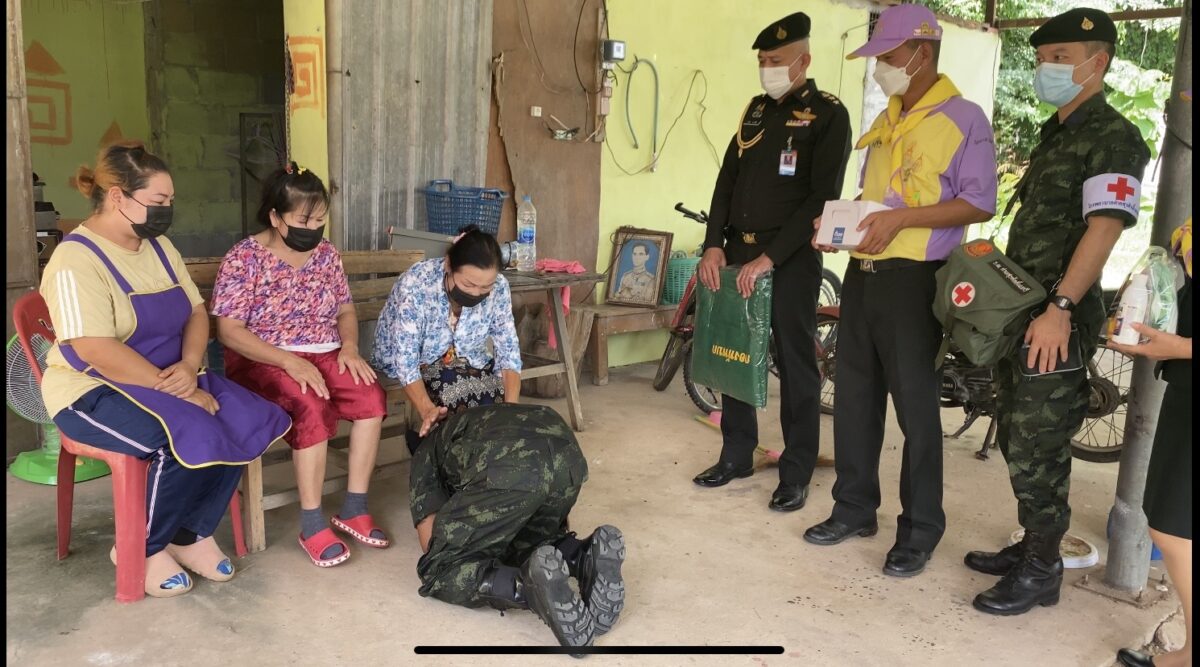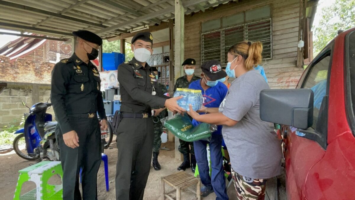 พล.ต.อโณทัย ชัยมงคล ผู้บัญชาการมณฑลทหารบกที่ 32/ผู้อำนวยการศูนย์อำนวยการจิตอาสาพระราชทานมณฑลทหารบกที 32 พร้อมด้วย พ.อ.กวิน ยาวิชัย รองเสนาธิการฯ และคณะผู้บังคับบัญชา ,จิตอาสา 904 หลักสูตรหลักประจำ รุ่นที่ 2/61,หลักสูตรพื้นฐาน ภาค 3 รุ่นที่ 1/65 และจิตอาสาพระราชทานมณฑลทหารบกที่ 32 ,ชุดหมอเดินเท้า รพ.ค่ายสุรศักดิ์มนตรี นำน้ำดื่มน้ำใจ และถุงยังชีพ กฟผ.แม่เมาะ ,รวมทั้ง ไข่ไก่ ชุดยาสามัญประจำบ้าน และ ชุด Together Box ซึ่งเป็นสิ่งของจำเป็นต่อการดำเนินชีวิต ช่วยลดภาระค่าใช้จ่ายในห้วงที่ยังมีการแพร่ระบาดของโควิด-19 ทำให้ขาดรายได้และได้รับผลกระทบ ของครอบครัวทหารใหม่รุ่นปี 65 ผลัดที่ 1 สังกัดกองร้อยมณฑลทหารบกที่ 32 จำนวน 5 ครอบครัว ในพื้นที่อำเภอเมืองลำปาง ,อำเภอเกาะคา และอำเภอห้างฉัตร จังหวัดลำปาง
