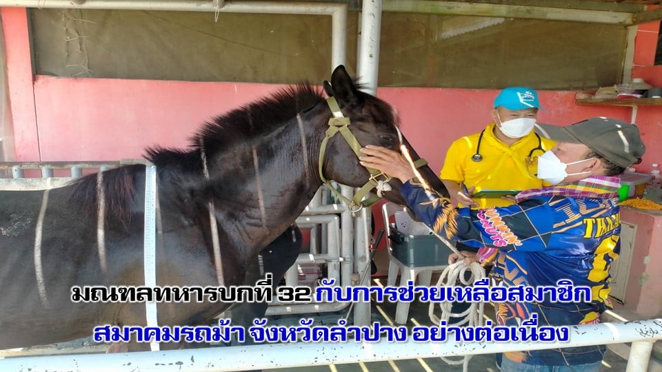 โดยในห้วงที่ผ่านมา มณฑลทหารบกที่ 32 ได้มีการติดตาม และให้ความช่วยเหลือสมาชิกสมาคมรถม้าจังหวัดลำปางอย่างต่อเนื่อง ทั้งในการจัดชุดสัตวแพทย์ ตรวจสุขภาพม้า และดูแลโภชนาการด้านอาหารม้า เพื่อช่วยเหลือบรรเทาความเดือดร้อน สำหรับการตรวจสุขภาพม้า ได้ดำเนินการเป็นประจำตามห้วงเวลา เพื่อให้ความแข็งแรงสมบูรณ์ มีรูปร่างสมส่วน และจะสามารถใช้ประโยชน์ได้อย่างต่อเนื่องและยั่งยืน ล่าสุด เมื่อวันที่ 27 กรกฎาคม 2565 มณฑลทหารบกที่ 32 ร่วมกับโรงพยาบาลสัตว์ กองการสัตว์และเกษตรกรรมที่ 3 กรมการสัตว์ทหารบก ได้ลงพื้นที่ติดตามความช่วยเหลือสมาคมรถม้าจังหวัดลำปาง เพื่อทำการตรวจสุขภาพม้า ทั้ง 12 ตัว ประจำเดือน