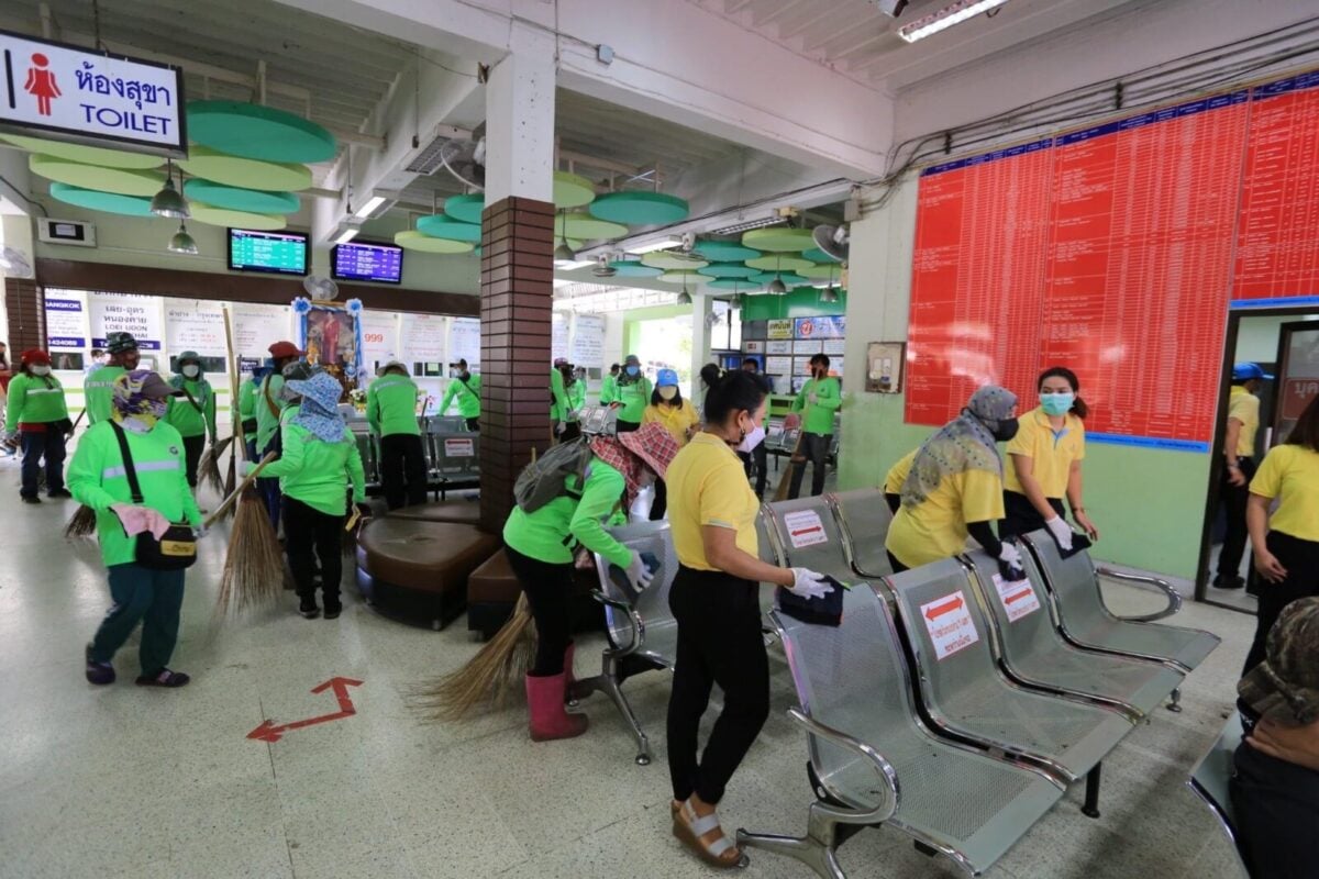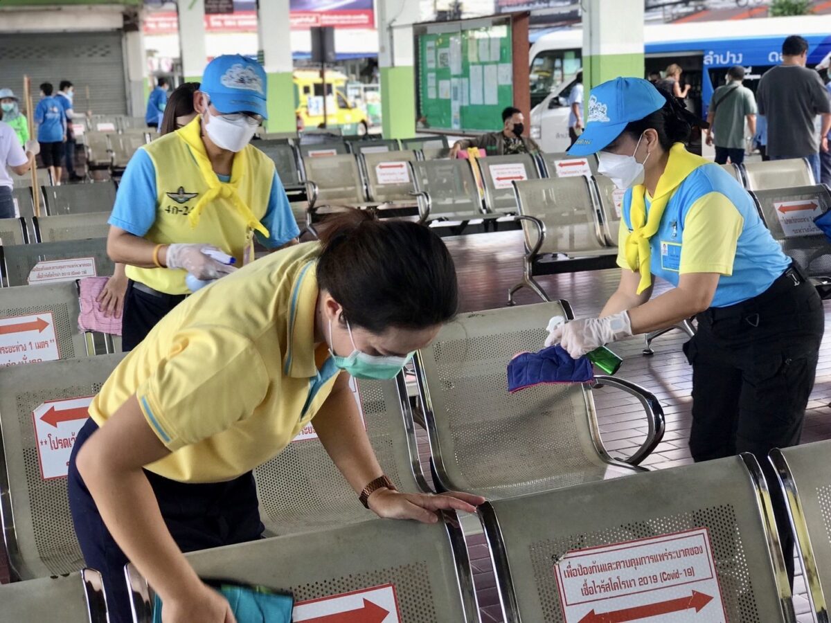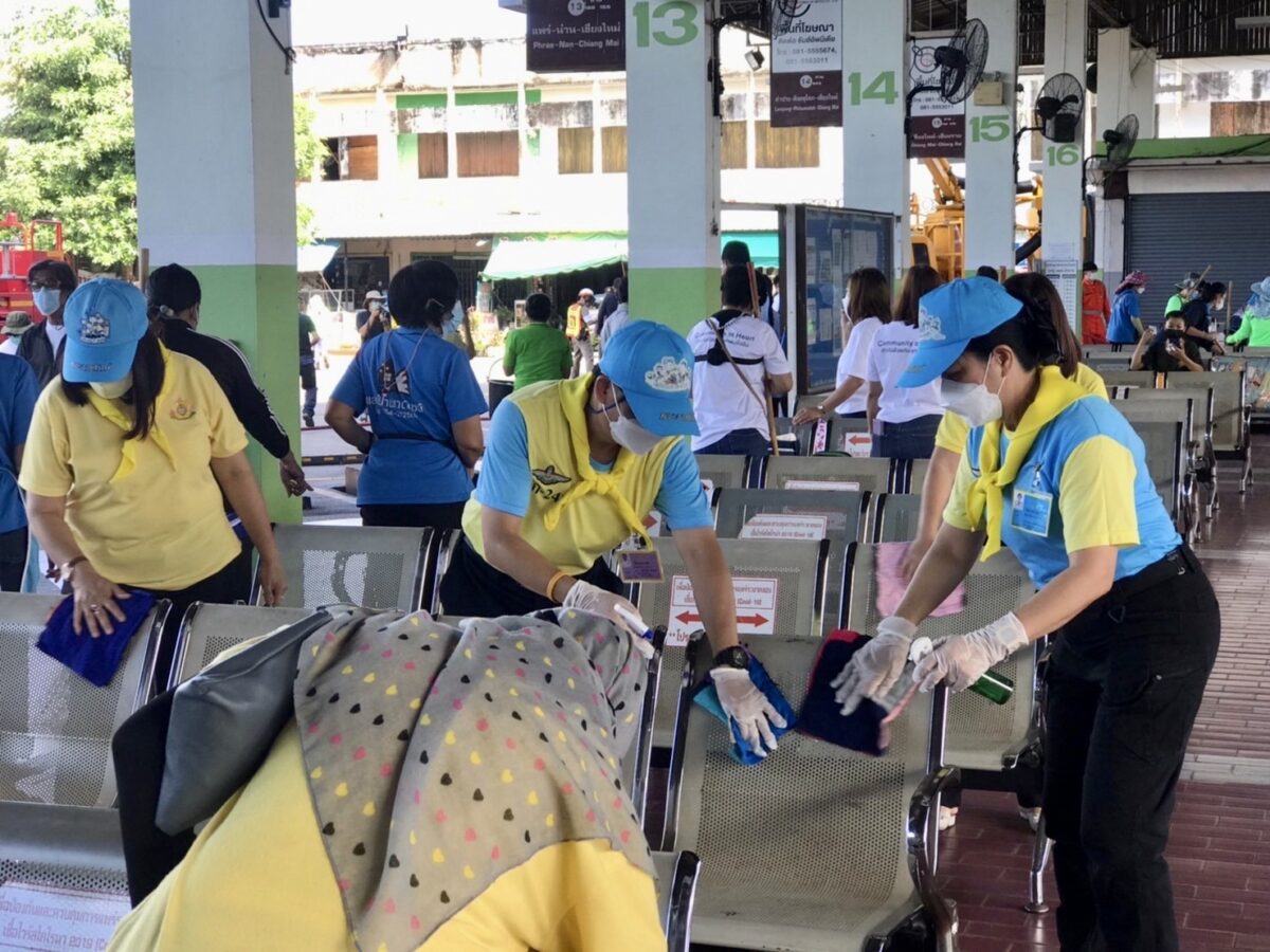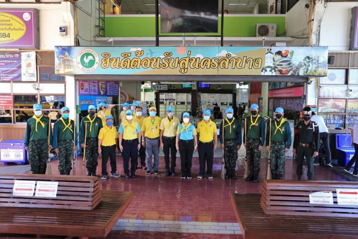 จิตอาสาพัฒนาสิ่งแวดล้อม สถานีขนส่งผู้โดยสารจังหวัดลำปาง เพื่อลดความกังวลและสร้างความเชื่อมั่น ให้แก่ผู้ใช้บริการรถโดยสารสาธารณะ ในการป้องกัน โควิด-19