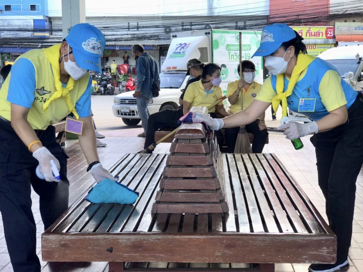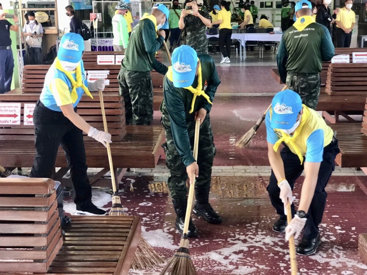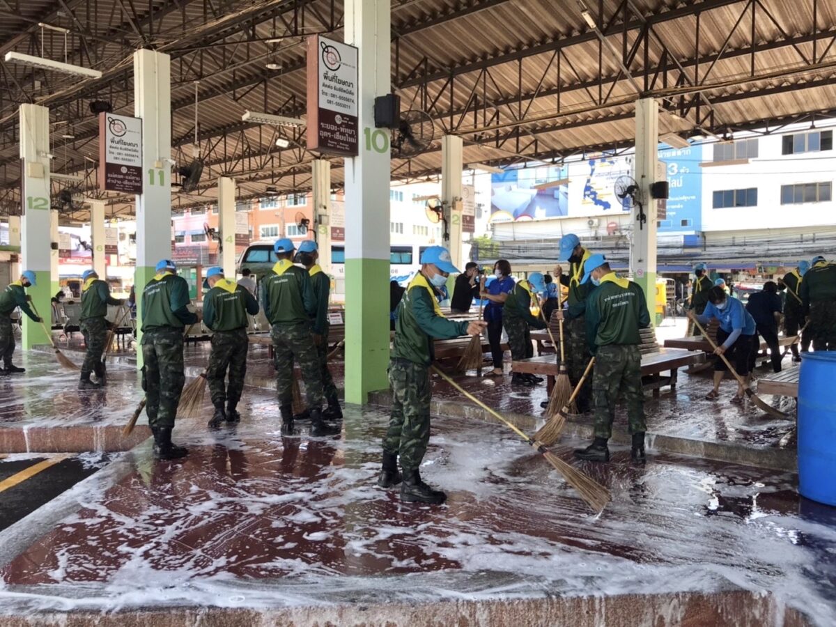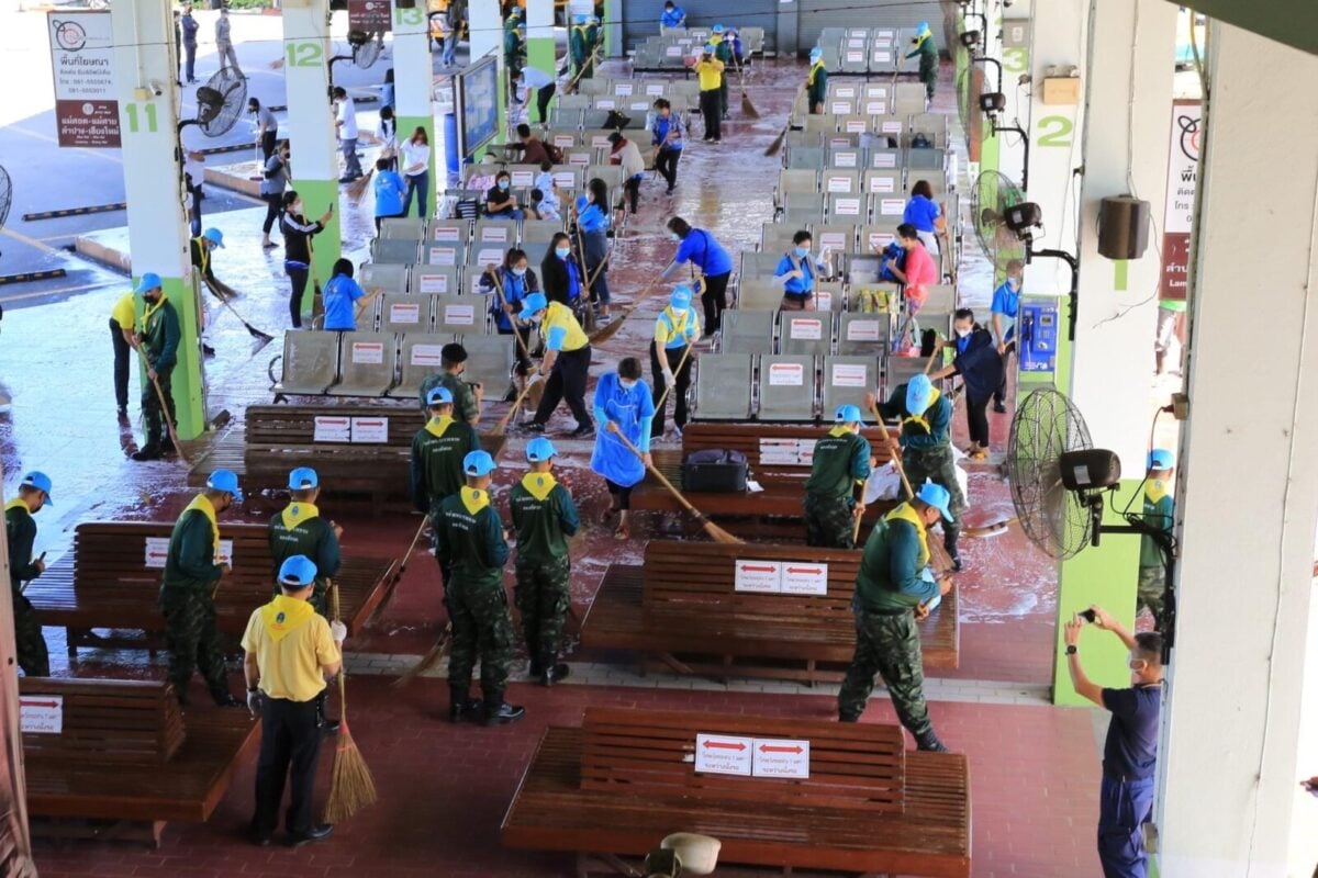 จิตอาสาพัฒนาสิ่งแวดล้อม สถานีขนส่งผู้โดยสารจังหวัดลำปาง เพื่อลดความกังวลและสร้างความเชื่อมั่น ให้แก่ผู้ใช้บริการรถโดยสารสาธารณะ ในการป้องกัน โควิด-19