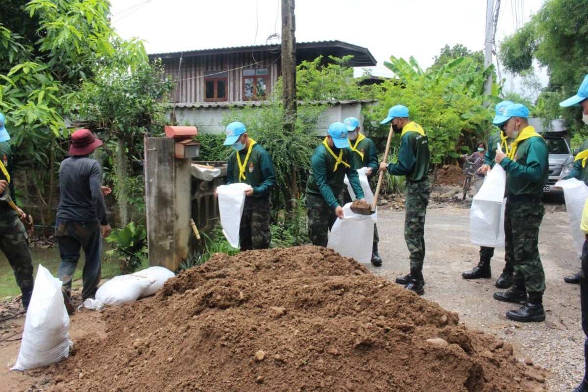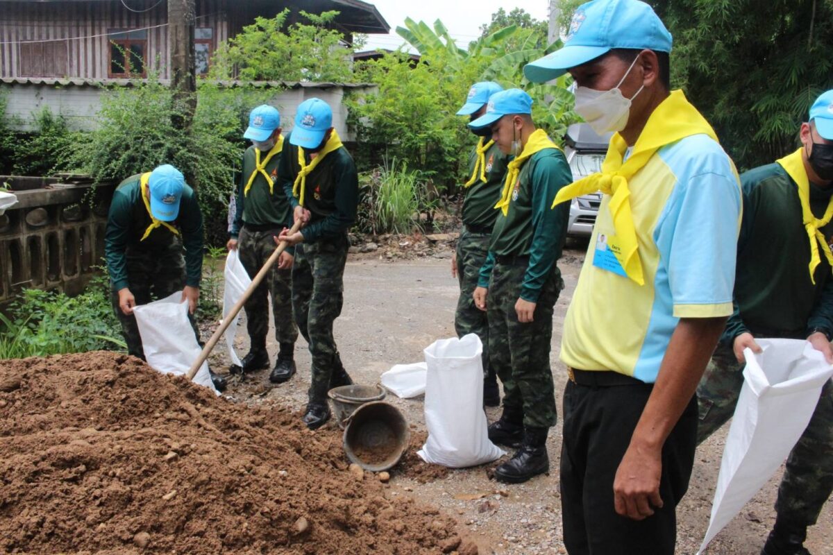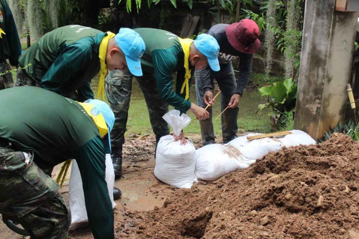 จิตอาสา มทบ.32 ช่วยเหลือประชาชน ทำความสะอาดบ้านเรือนประชาชน และก่อกระสอบทราย พื้นที่ บ.สาด และบ.วังพร้าว ต.วังพร้าว อ.เกาะคา จ.ลำปาง