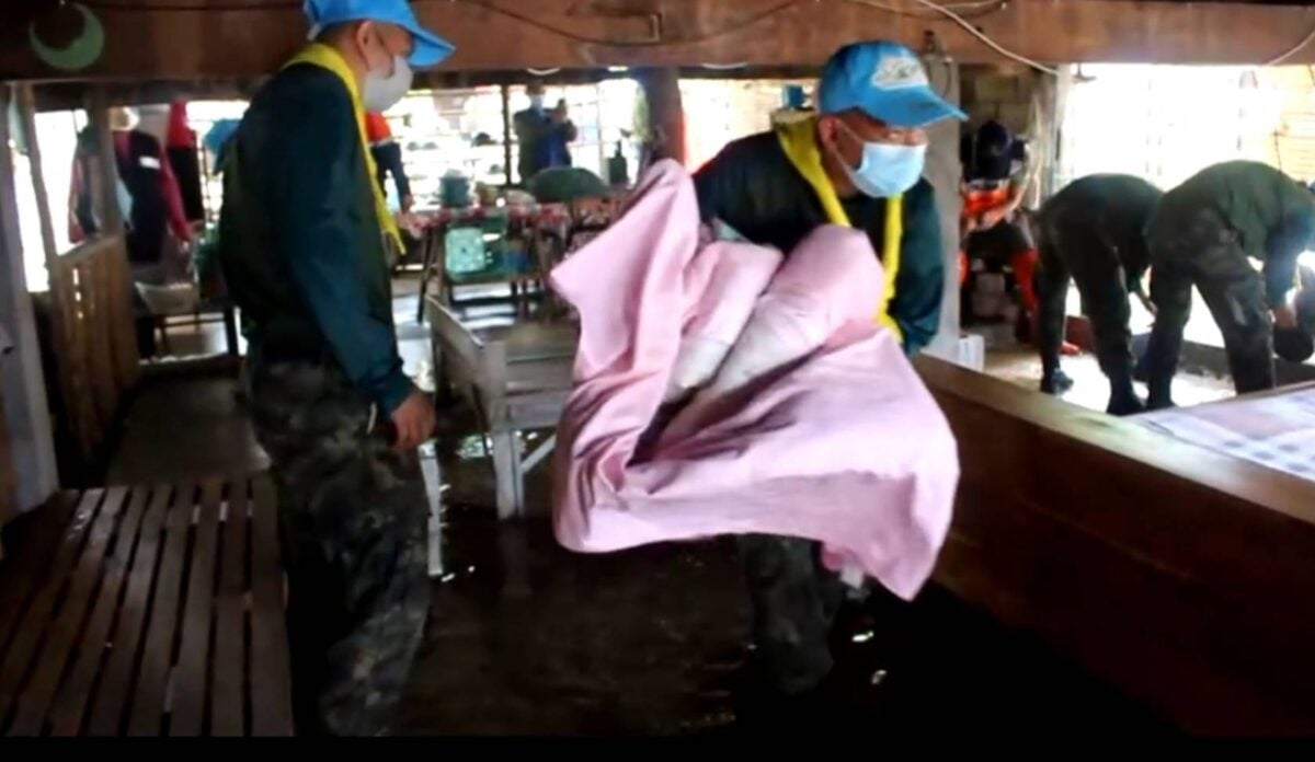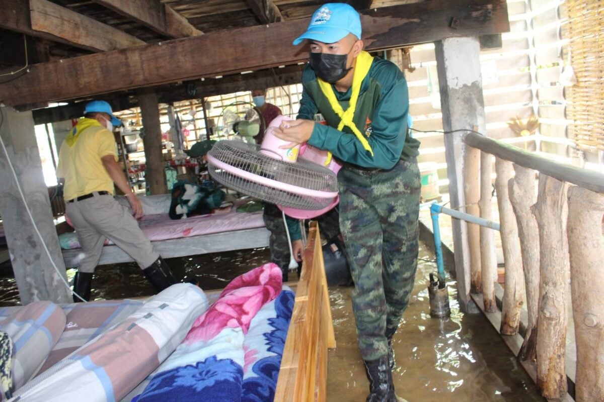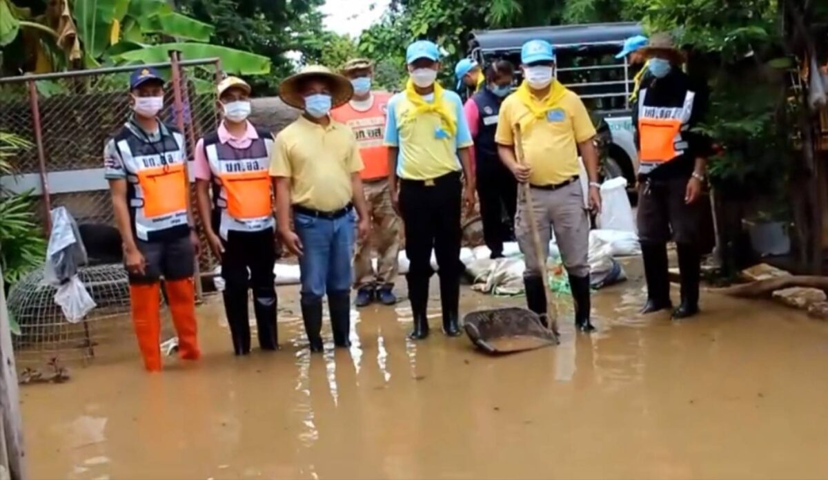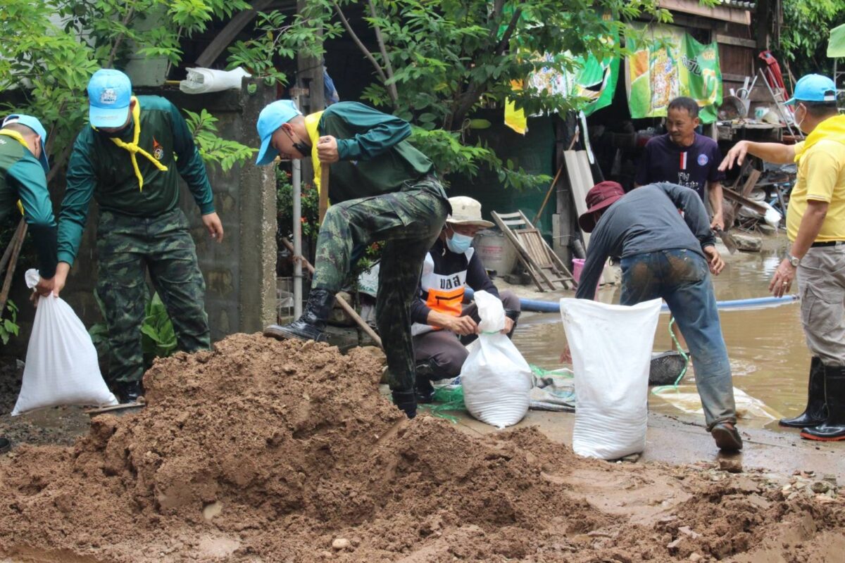 จิตอาสา มทบ.32 ช่วยเหลือประชาชน ทำความสะอาดบ้านเรือนประชาชน และก่อกระสอบทราย พื้นที่ บ.สาด และบ.วังพร้าว ต.วังพร้าว อ.เกาะคา จ.ลำปาง