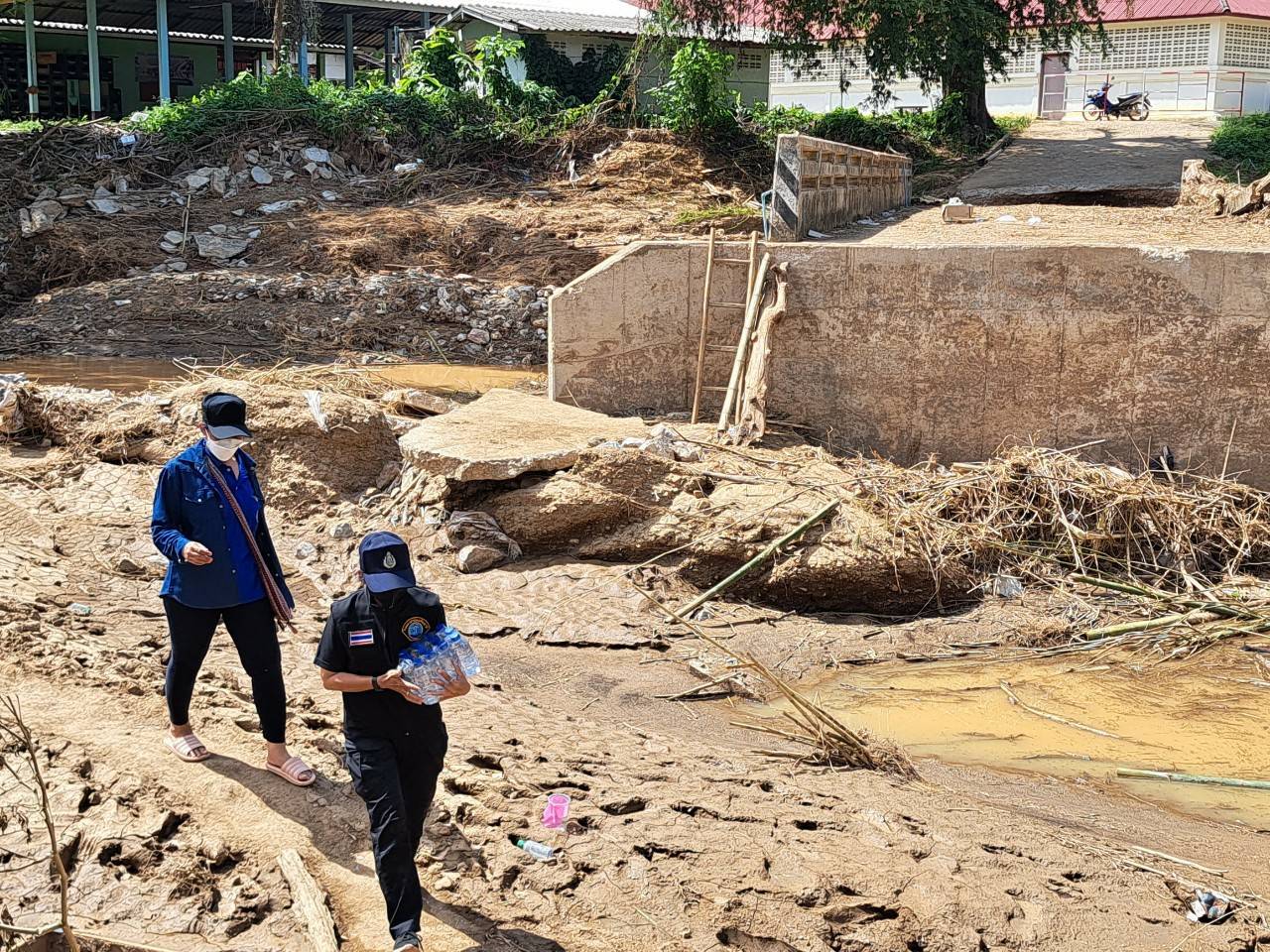สมาคมไทยอาสาพัฒนาชาติ ร่วมหลายหน่วยงาน มอบสิ่งของฟื้นฟูผู้ประสบภัยหลังโดน “หมาอ๊อน” ถล่มหนัก