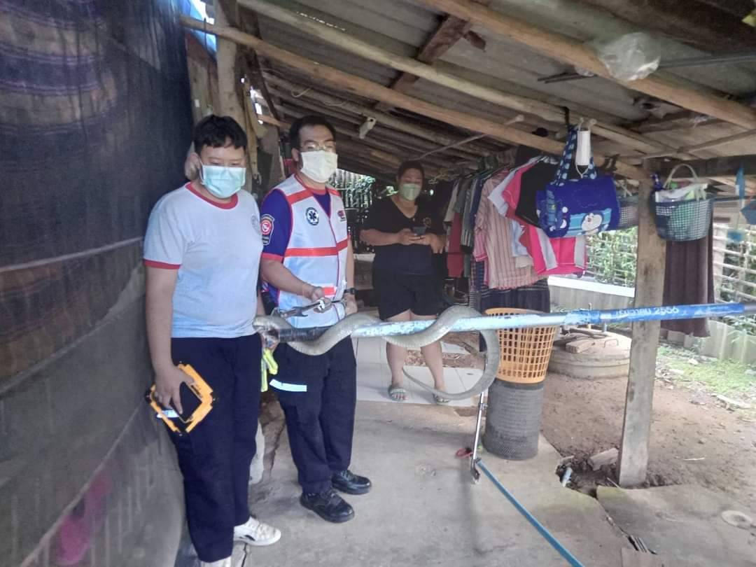วันที่ 24 ก.ย. 2565 เวลาประมาณ 14:10 น. เจ้าหน้าที่สมาคมกู้ภัยวังเหนือ รับแจ้งจากเจ้าของบ้าน บ้านแม่โป่ง ตำบลวังใต้ อำเภอวังเหนือ จังหวัดลำปาง รับแจ้งพบงูเห่าตัวใหญ่นอนตัวอยู่ในลิ้นชักเก็บของในบ้าน จึงรีบแจ้งเจ้าหน้าที่กู้ภัยวังเหนือ รีบดำเนินการ จับงูเห่ายาวประมาณ 1.7-1.8 เมตร เพื่อนำปล่อยสู่ธรรมชาติต่อไป