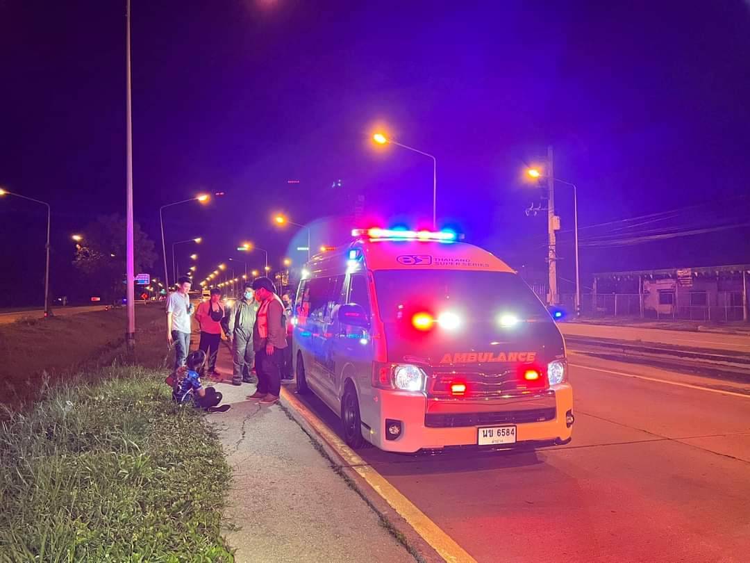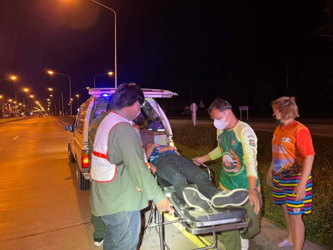 ชุดปฏิบัติการ การแพทย์ฉุกเฉิน สมาคมกู้ภัยอัมรินทร์ จ.ลำปาง ช่วยเหลือปฐมพยาบาลผู้บาดเจ็บก่อน นำตัวส่งโรงพยาบาลเกาะคา จ.ลำปาง