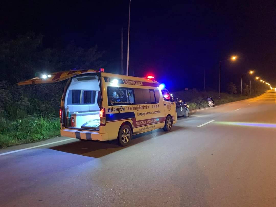 จากการตรวจสอบรถจักรยานยนต์ ยี่ห้อฮอนด้าเวฟ สีแดง หมายเลขทะเบียน xกข xxxx ลำปาง สภาพพังเสียหายทั้งคัน ล้มอยู่ในพงหญ้าใกล้กับเสาไฟกิ่ง และพบชายผู้ขับขี่ อายุ 26 ปี นอนหมดสติอยู่ข้างๆ รถ เจ้าหน้าที่พบว่าไม่รู้สึกตัว ไม่มีชีพจร จึงได้ทำการ CPR ช่วยเหลือ แต่ปรากฏว่าชายคนดังกล่าวได้เสียชีวิตลง จึงได้ประสานร้อยเวรสอบสวน สภ. เมืองลำปางแพทย์นิติเวช รพ.ลำปาง ร่วมชันสูตรพลิกศพ ก่อนจะนำส่งให้ญาติดำเนินการตามประเพณีต่อไป