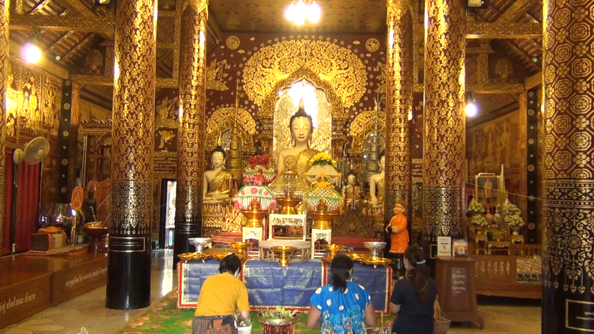 ทั้งมาตรการป้องกันการแพร่ระบาดไวรัสโควิด-19 ที่ผ่อนคลายลงไป รวมไปถึงในช่วงนี้มีหลายโรงเรียนปิดเทอมทำให้เด็กๆ ได้หยุดเรียนอยู่บ้าน จึงเป็นโอกาสที่ดีที่จะได้มีการรวมตัวกันจูงมือกันเข้าวัดเพื่อทำบุญทำให้บรรยากาศตามวัดในชุมชนต่างๆคึกคักเป็นอย่างมาก และในภาพที่วัดบ้านแม่กืย หมู่ 9 ตำบลปงแสนทอง อำเภอเมือง จังหวัดลำปาง ซึ่งเป็นวัดที่สวยงามแห่งหนึ่งในตำบลแห่งนี้ ชาวบ้านในพื้นที่และใกล้เคียงต่างเดินทางเข้าวัดมากราบไหว้องค์พระประธานภายในพระวิหารที่สวยงาม ก่อนที่จะไปใส่บาตรดอกไม้ ใส่บาตรข้าวเหนียว บาตรขนมและถวายอาหารคาวหวานแด่พระภิกษุสงฆ์ เพื่ออุทิศส่วนกุศลแด่ผู้ล่วงลับและเพื่อความเป็นสิริมงคลต่อตนเองและครอบครัว ไม่แตกต่างกันที่วัดบ้านลำปางกลางตะวันตก หมู่ 3 ตำบลปงแสนทองอำเภอเมืองลำปาง ภายในวัดต่างคึกคักผู้ปกครองต่างพาบุตรหลานเข้าวัดทำบุญแต่ที่วัดแห่งนี้