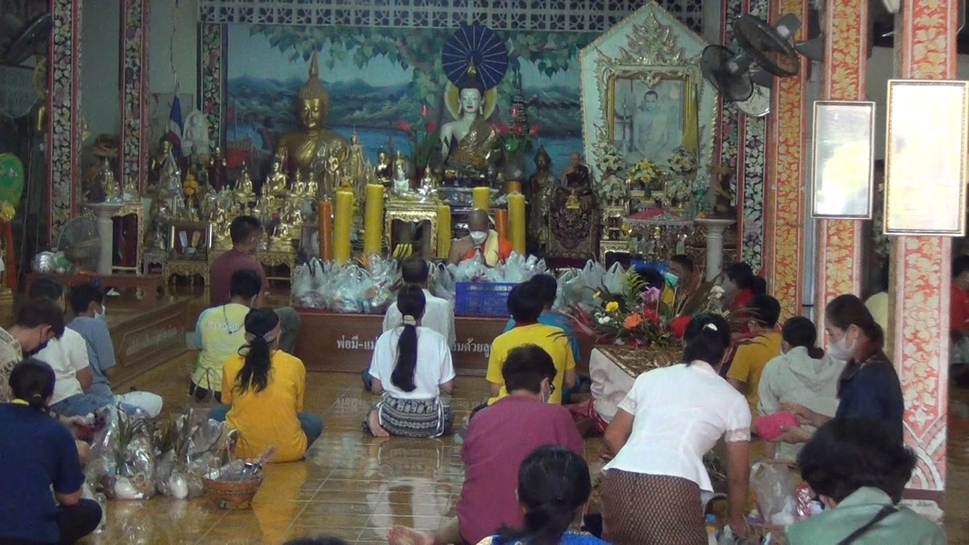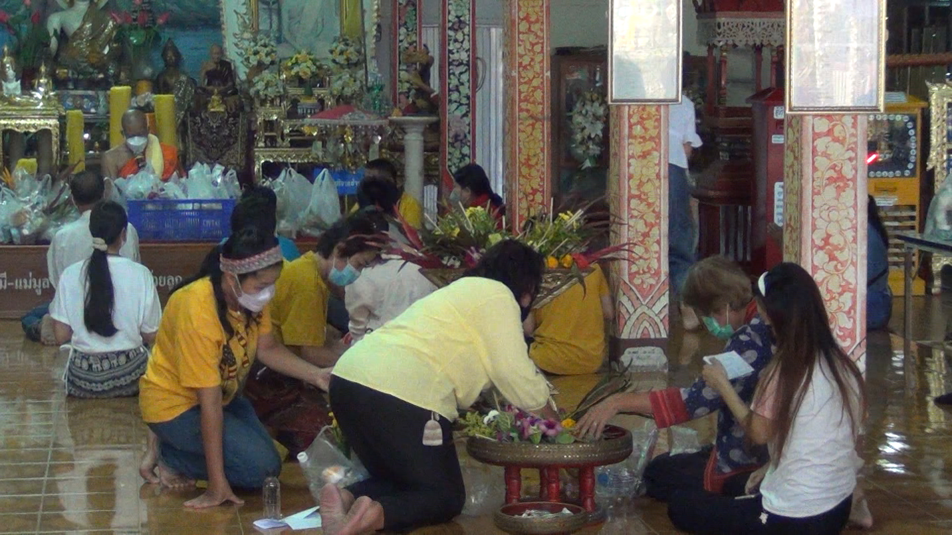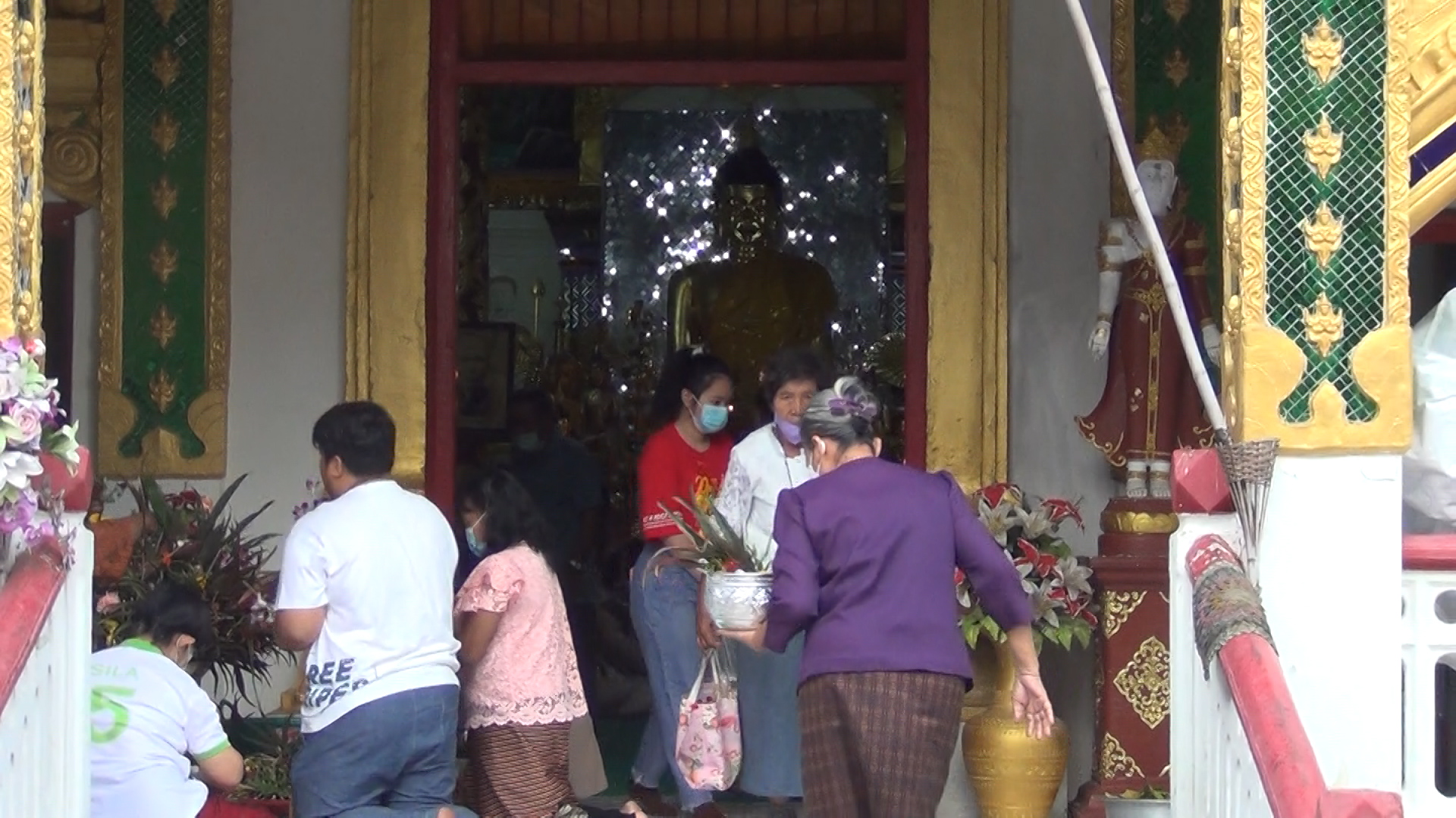 ชาวลำปาง เข้าวัดทำบุญเนื่องในวันออกพรรษาคึกคักหลังมาตรการผ่อนคลายโควิด-19 ลดลง แต่การป้องกันตนเองยังเข้มข้นยังสวมหน้ากากอนามัย 100% บางวัดมีการตั้งจุดคัดกรองด้วย