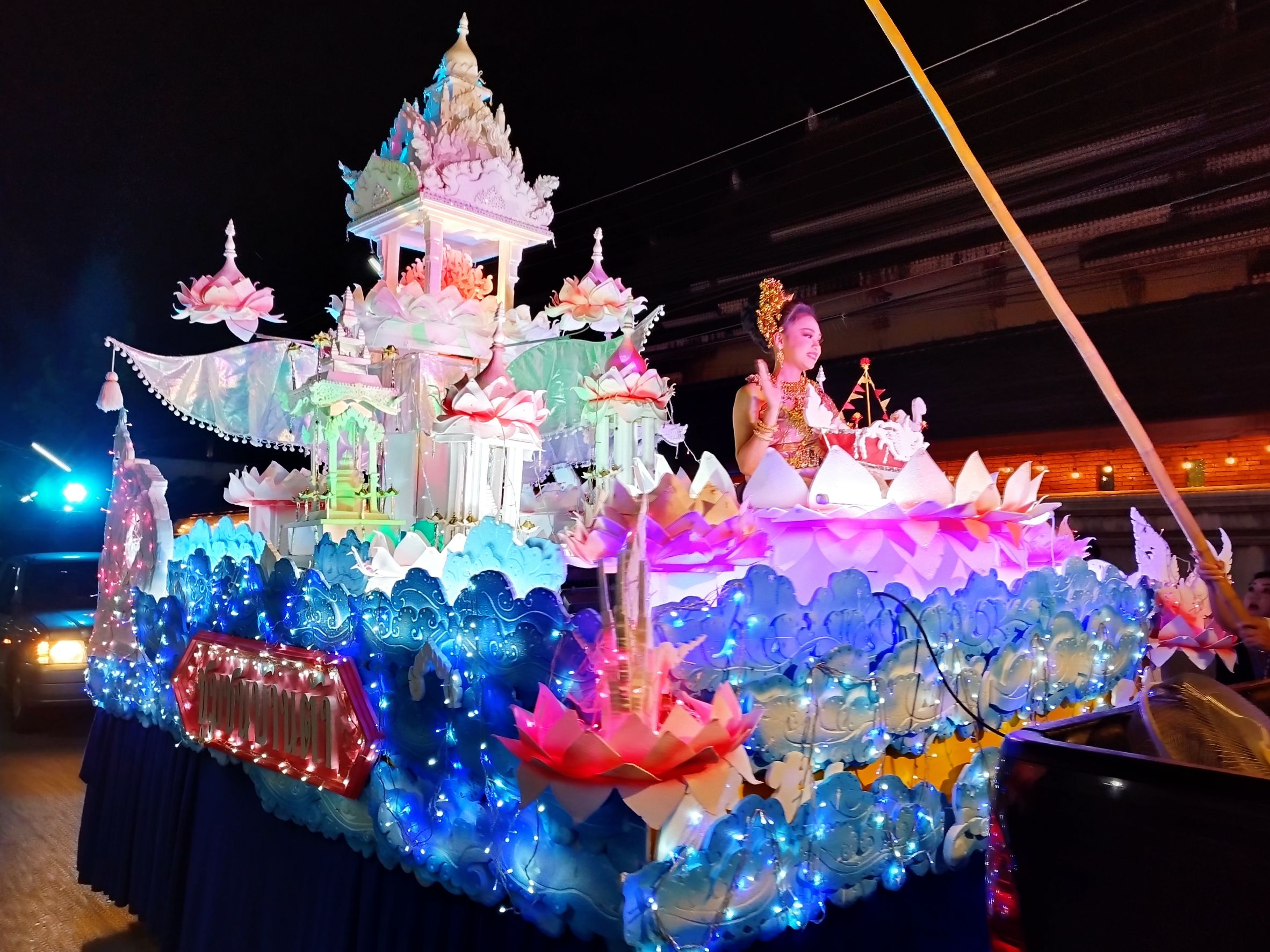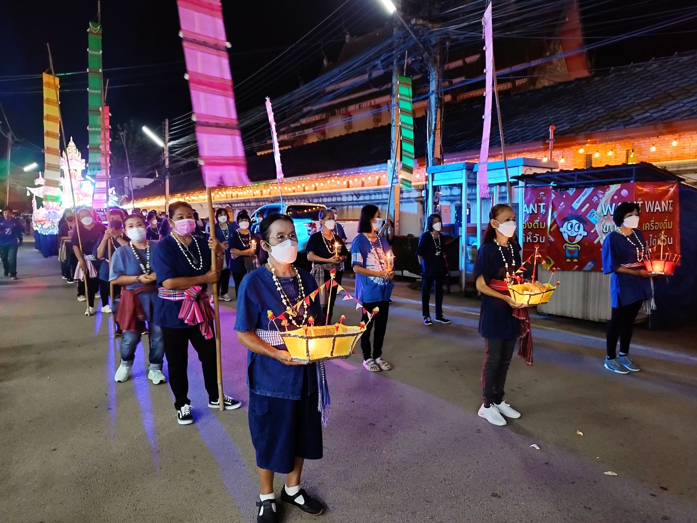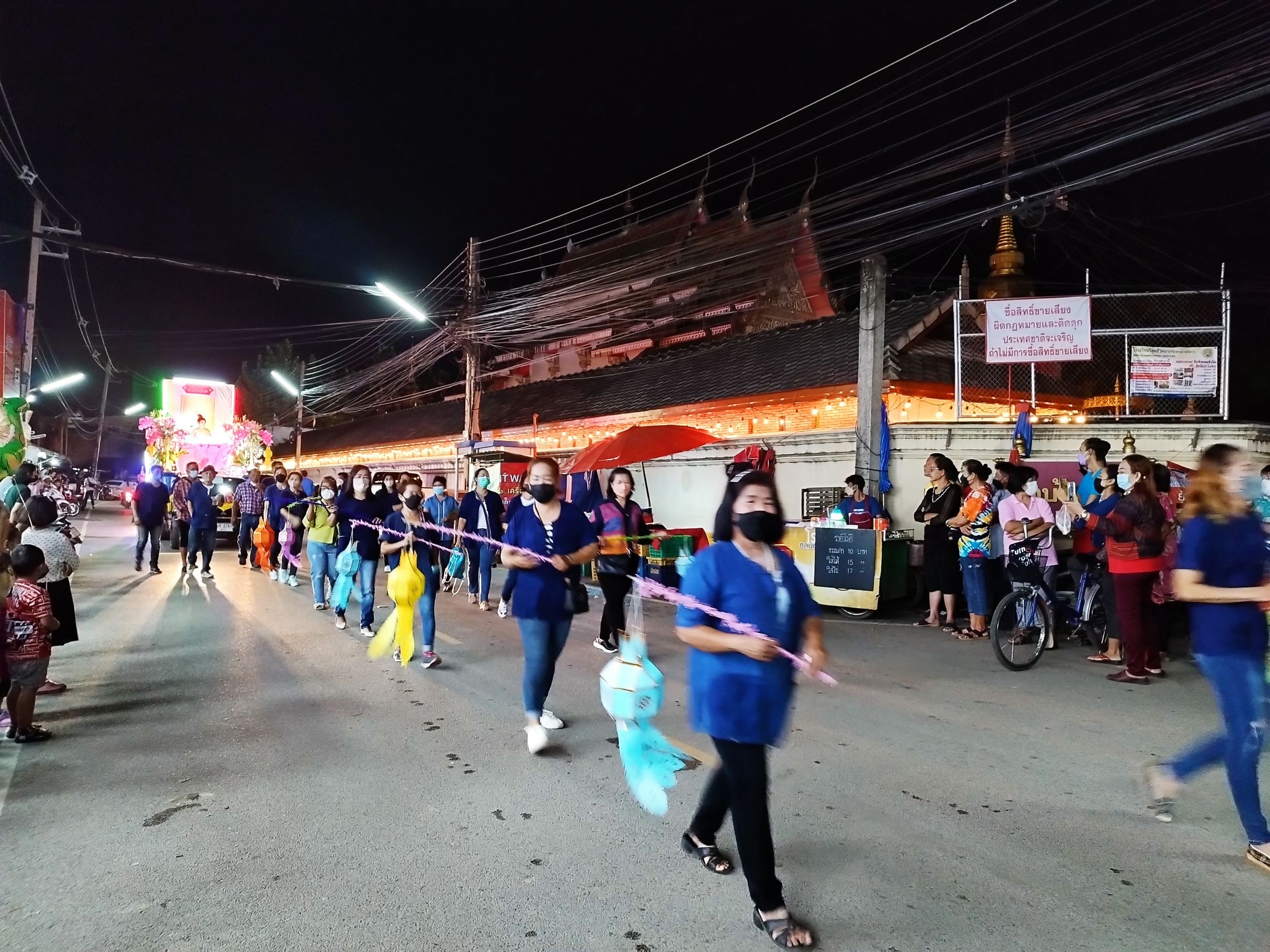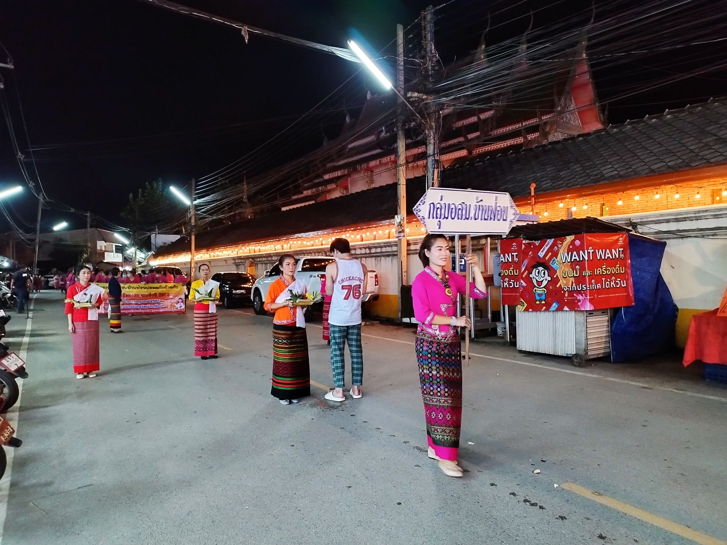 ภายในงานมีพิธีเวรตาน (ล่องสะเปา) ในรูปแบบวิถีประเพณีของชาวชุมชนบ้านฟ่อน บริเวณหน้าวัดบ้านฟ่อน ก่อนจะเริ่มขบวนแห่สะเปา (กระทง) ประจำปี 2565 ตั้งขบวนบริเวณข้างโรงเรียนบ้านฟ่อน เคลื่อนไปยังบริเวณสนามกีฬาเฉลิมพระเกียรติ 72 พรรษา (ริมฝั่งแม่น้ำวัง) ระยะทางประมาณ 1 กิโลเมตร โดยมีชุมชนต่างๆ ได้ตกแต่งและประดิษฐ์สะเปารถใหญ่อย่างสวยงาม พร้อมทั้งมีนางนพมาศสาวสวยและเด็กๆ มานั่งอยู่บนรถคอยโบกมือทักทายคนที่มาร่วมชมงาน ร่วมกว่า 10 ขบวนด้วยกัน ซึ่งในปีนี้บรรยากาศคึกคักเป็นพิเศษ เพราะการแพร่ระบาดโควิดได้เบาบางลง ชาวบ้านจึงพากันออกมาเที่ยวชมขบวนแห่สะเปาจำนวนมาก