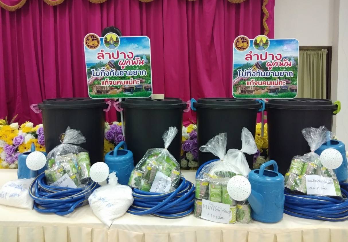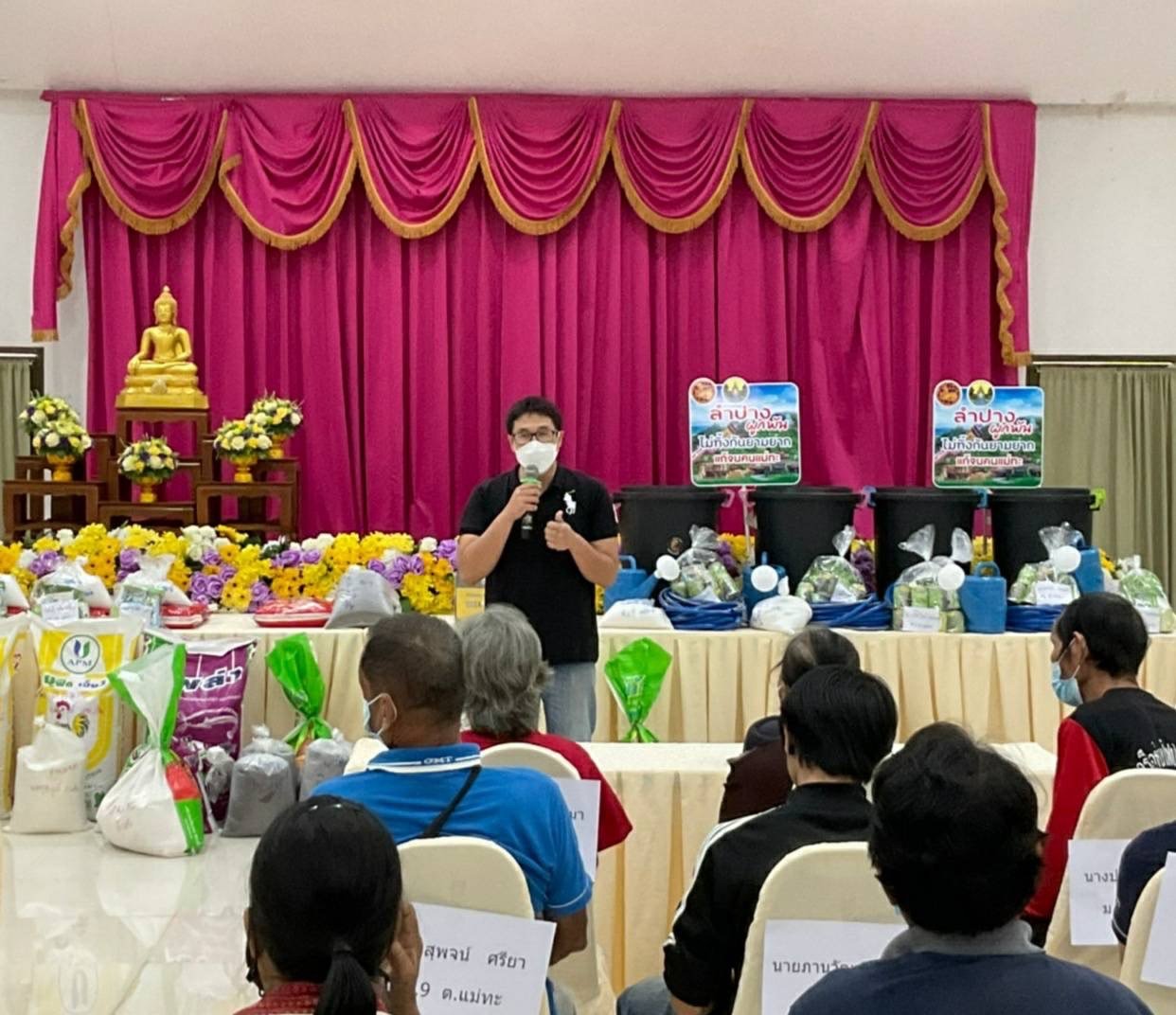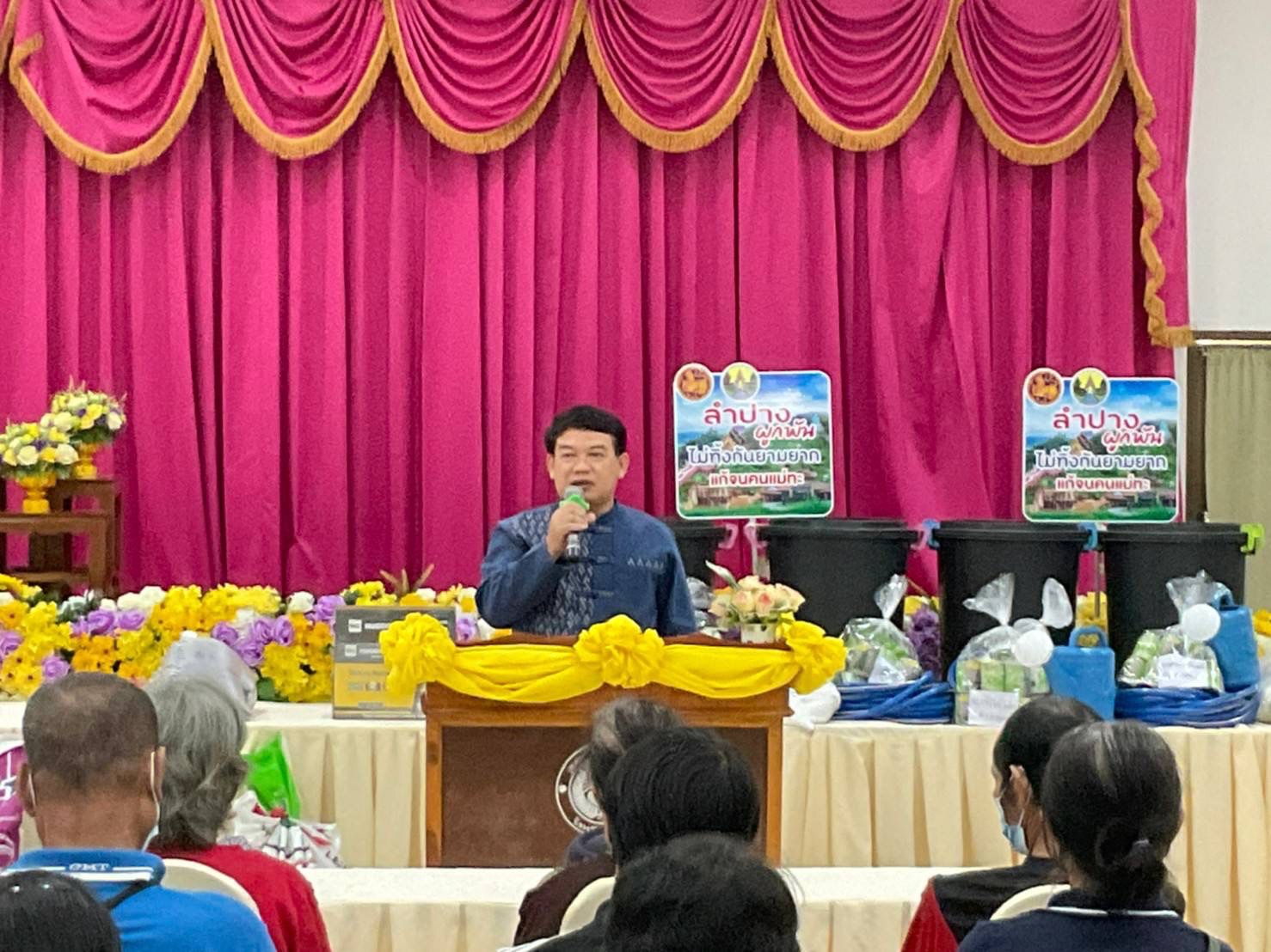 อำเภอแม่ทะ จังหวัดลำปาง มอบวัสดุอุปกรณ์ตามโครงการขจัดความยากจนและพัฒนาคนทุกช่วงวัยอย่างยั่งยืนตาม หลักของปรัชญาของเศรษฐกิจพอเพียงอำเภอแม่ทะ ซึ่งได้รับการสนับสนุนงบประมาณ จากโรงโม่หิน จำนวน 2 แห่ง จำนวน 100,000 บาท