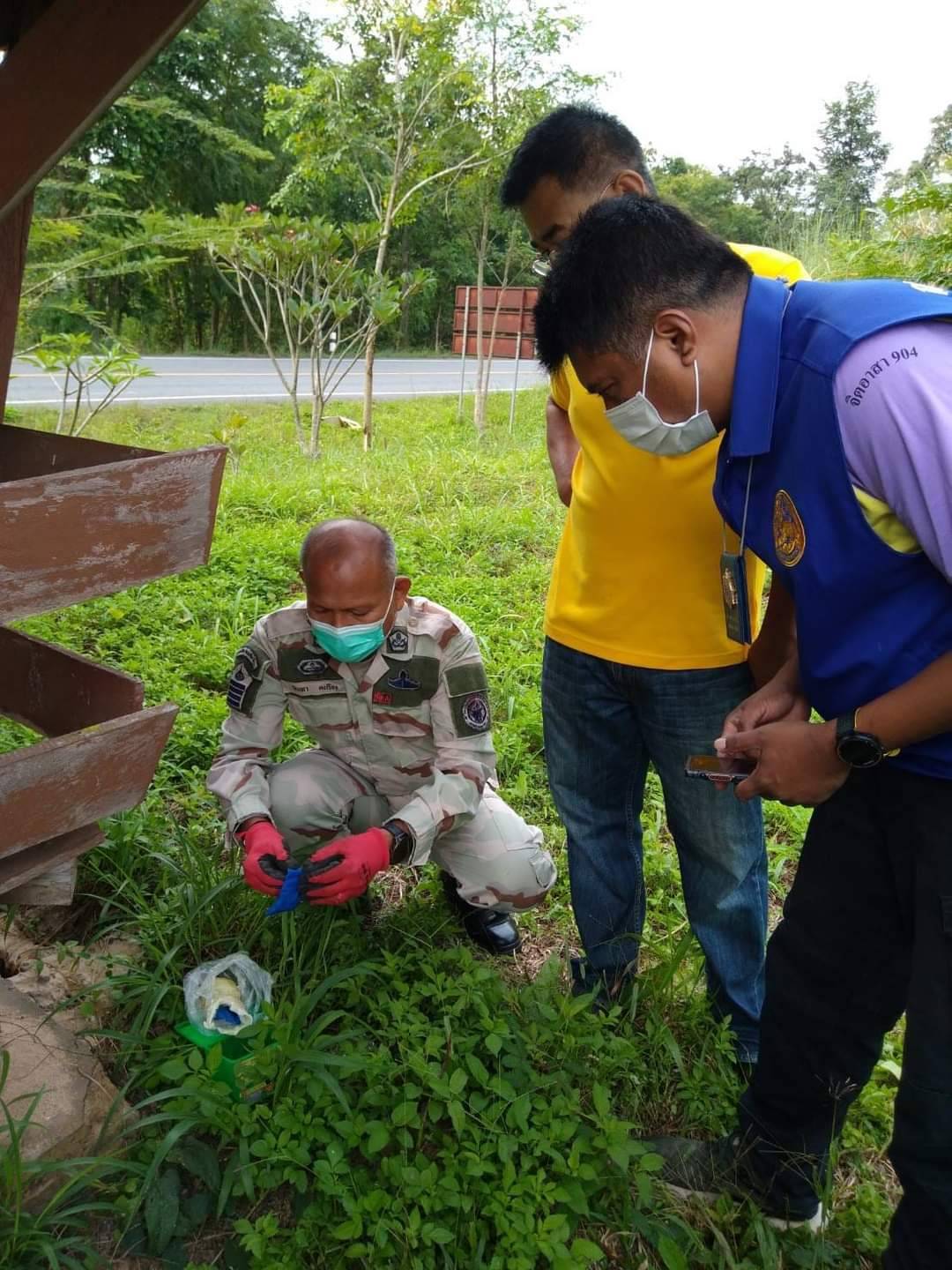 วันที่ 21 ตุลาคม 2565 นายสมศักดิ์ วัชรธาดาพงศ์ นายอำเภอเถิน มอบหมายให้นายธวัชชัย จริตงาม ปลัดอำเภอหัวหน้าฝ่ายความมั่นคง ลงพื้นที่ตรวจสอบวัตถุต้องสงสัยซึ่งวางไว้บริเวณข้างศาลาที่พักริมทางบ้านแม่ปะแพะ หมู่ที่ 2 ตำบลแม่ปะ ถนนสายเถิน-ทุ่งเสลี่ยม พร้อมทั้งนำกำลังสมาชิกกองร้อย อส.อ.เถิน ที่ 10 ร่วมกับ กำนัน ผู้ใหญ่บ้าน ผู้ช่วยผู้ใหญ่บ้าน หมู่ที่ 2 ตำบลแม่ปะ เข้าตรวจสอบ พบกล่องใส่ไฟฉายชนิดคาดศรีษะ(สีเขียว) วางไว้บริเวณศาลาที่พักริมทาง ฯ และตรวจสอบเบื้องต้นพบยาเสพติด(ยาบ้า) บรรจุภายในกล่อง จำนวน 7 ถุง (ยาบ้า ประมาณ 1,400 เม็ด) จึงได้ประสานเจ้าหน้าที่ตำรวจสภานีตำรวจภูธรเถิน ทำการตรวจยึด เพื่อดำเนินการสืบสวนขยายผลหาตัวผู้กระทำความผิดต่อไป