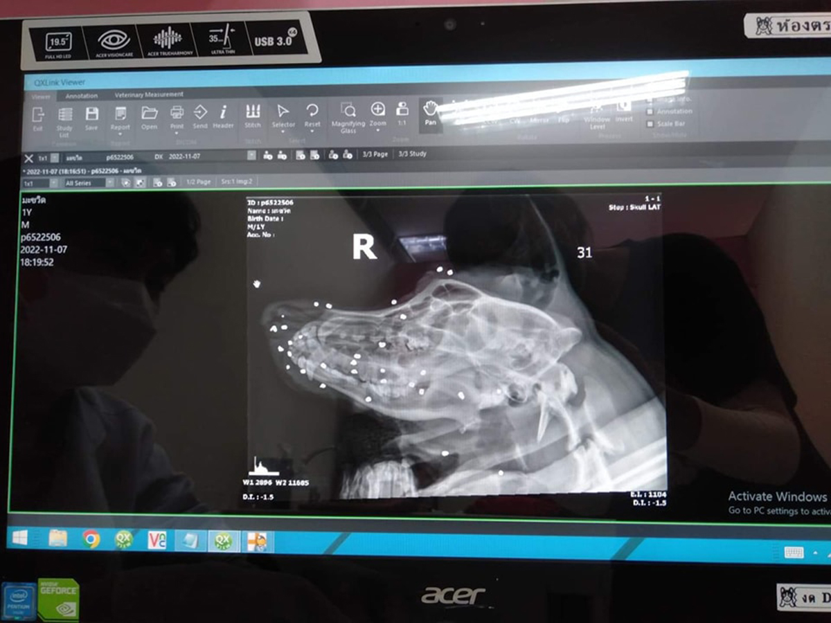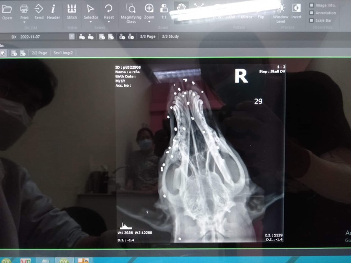 พบสุนัขถูกกระสุนลูกปลายยิงใส่ใบหน้าได้รับบาดเจ็บ เอ็กซเรย์ดูตะลึงพบ 31 เม็ด จิตอาสาหมาแมวเร่งระดมทุนช่วยเหลือค่าผ่าตัด เบื้องต้น 8,000 บาท